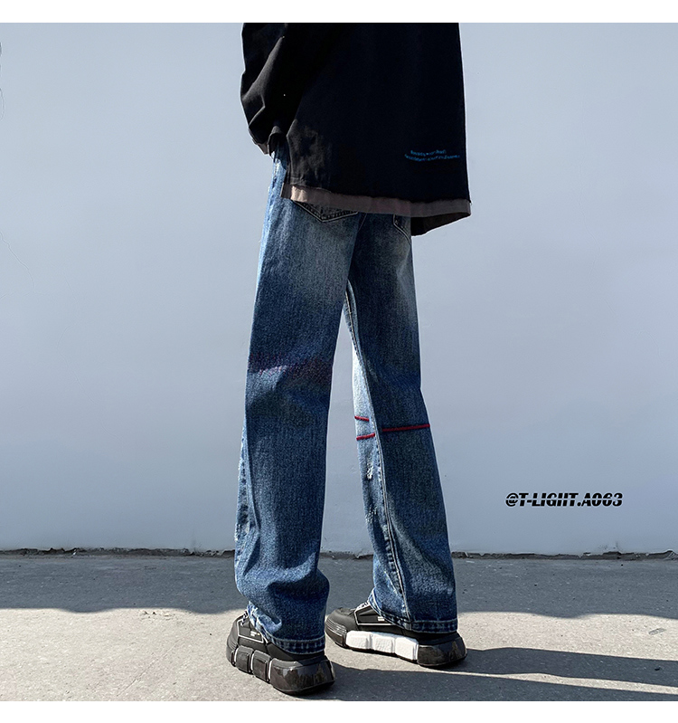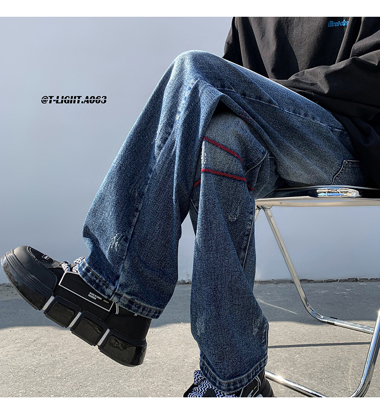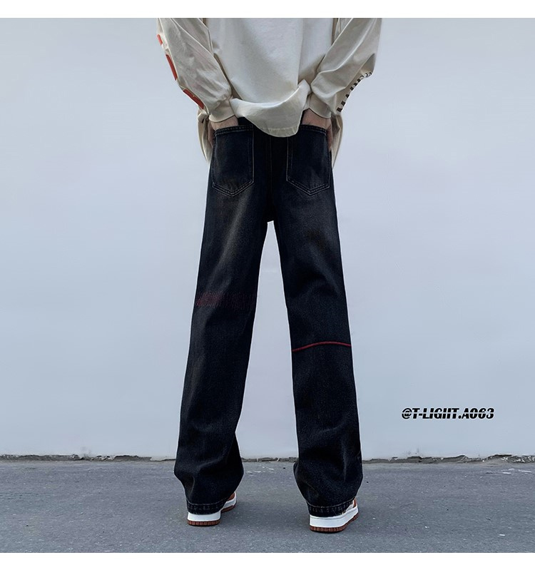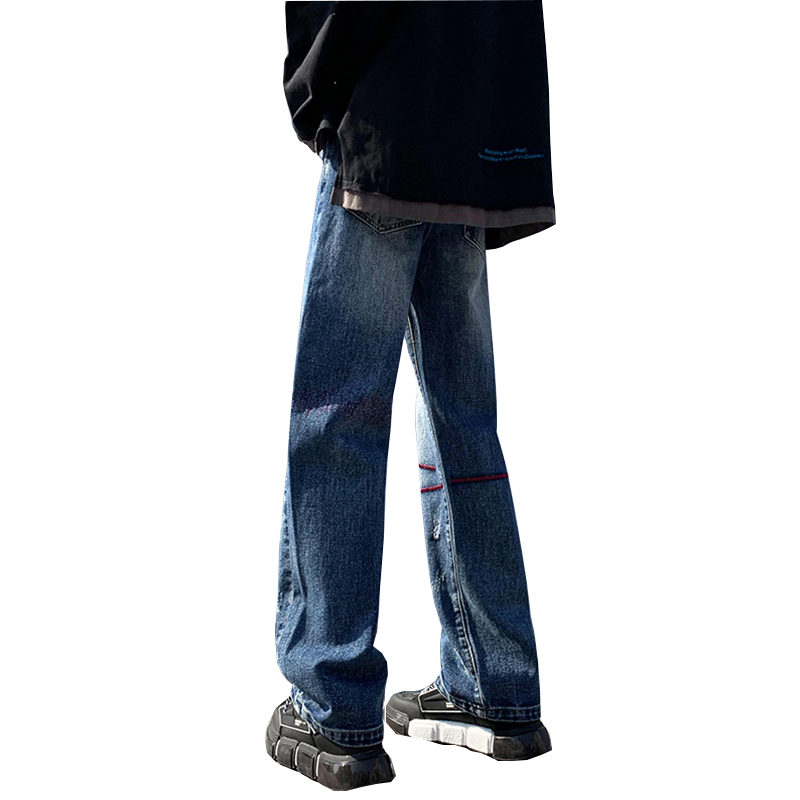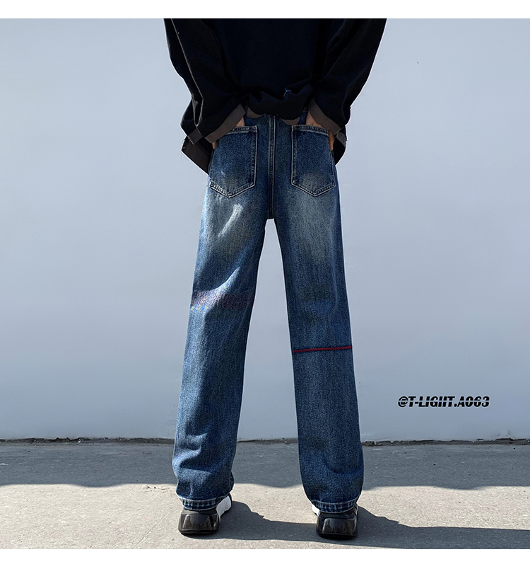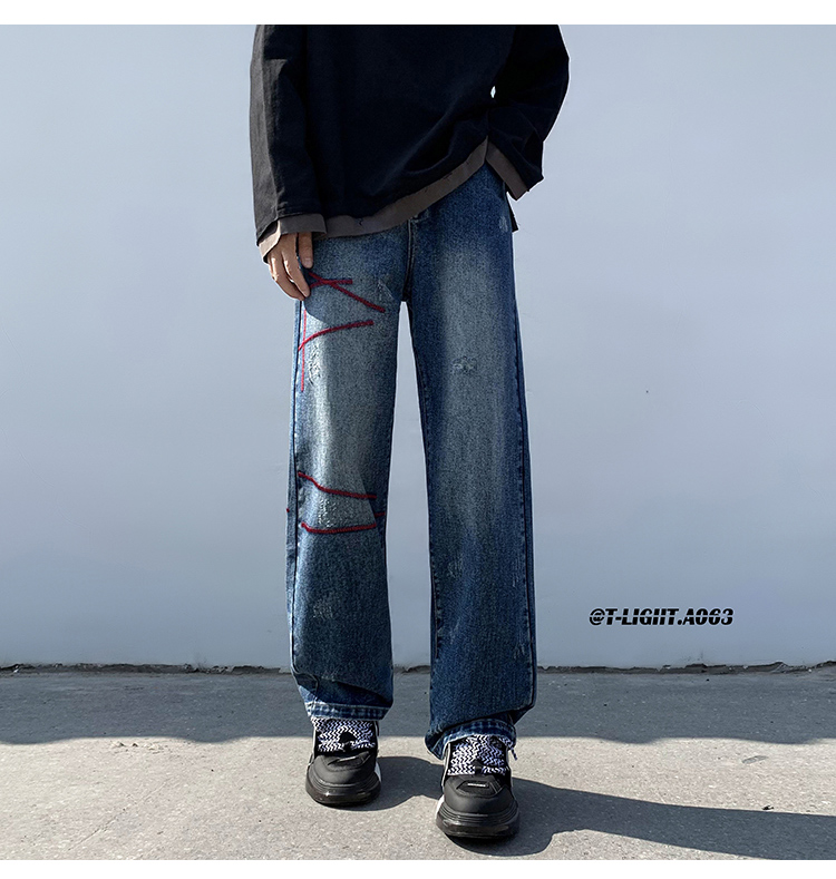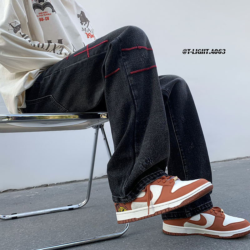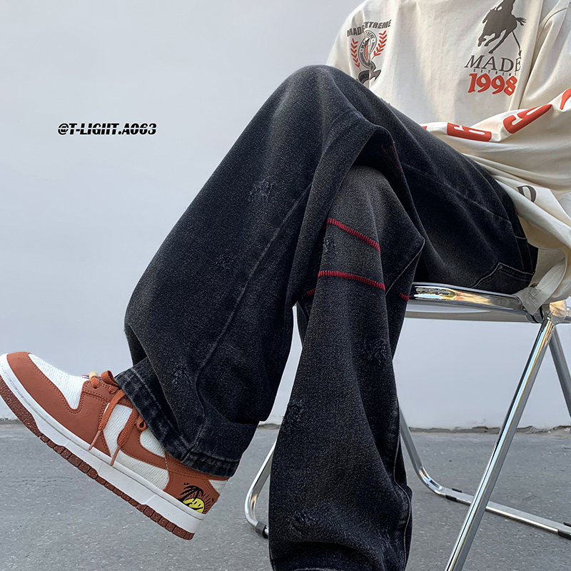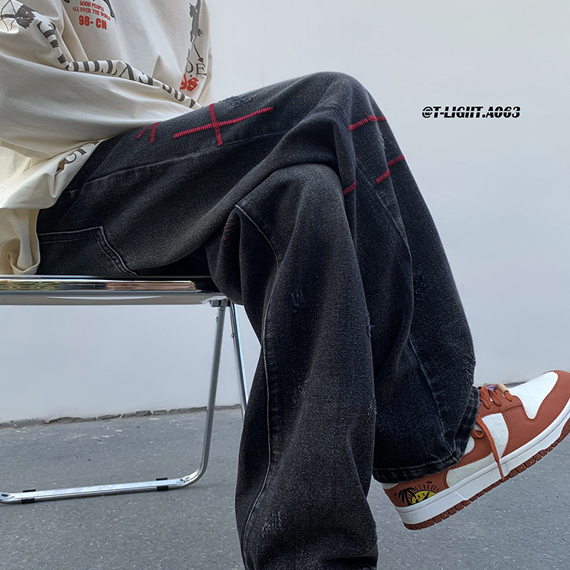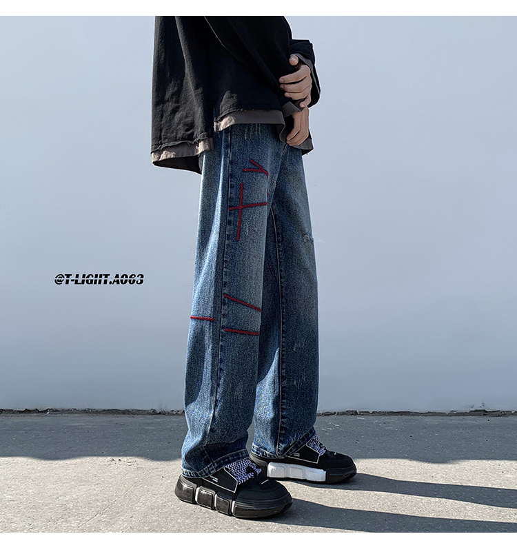 歐美hiphop炸街褲子高街潮ins重工刺繡水洗牛仔褲寬鬆直筒休閒褲