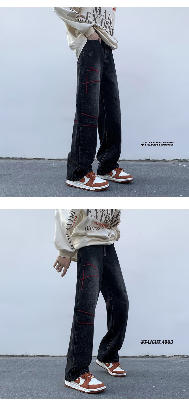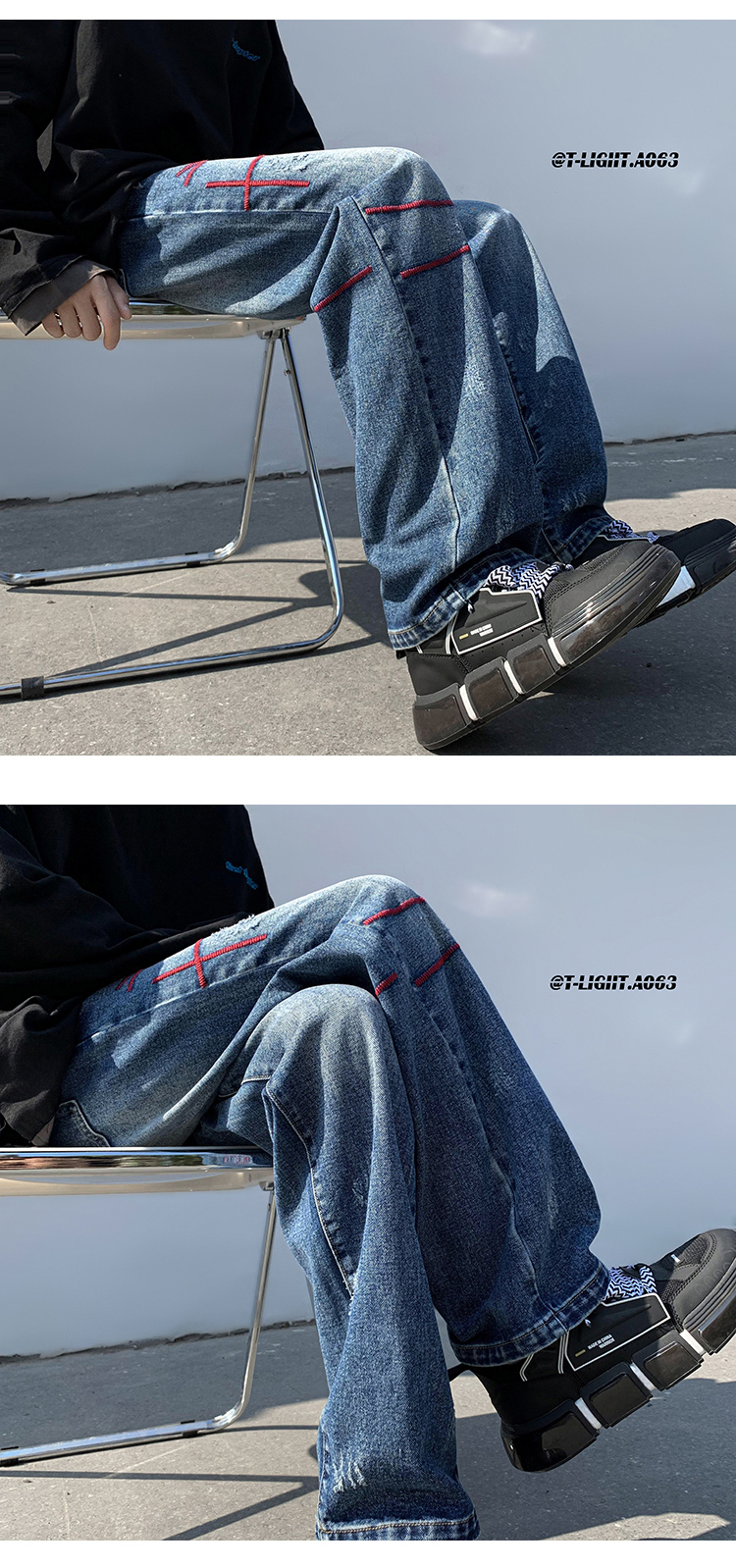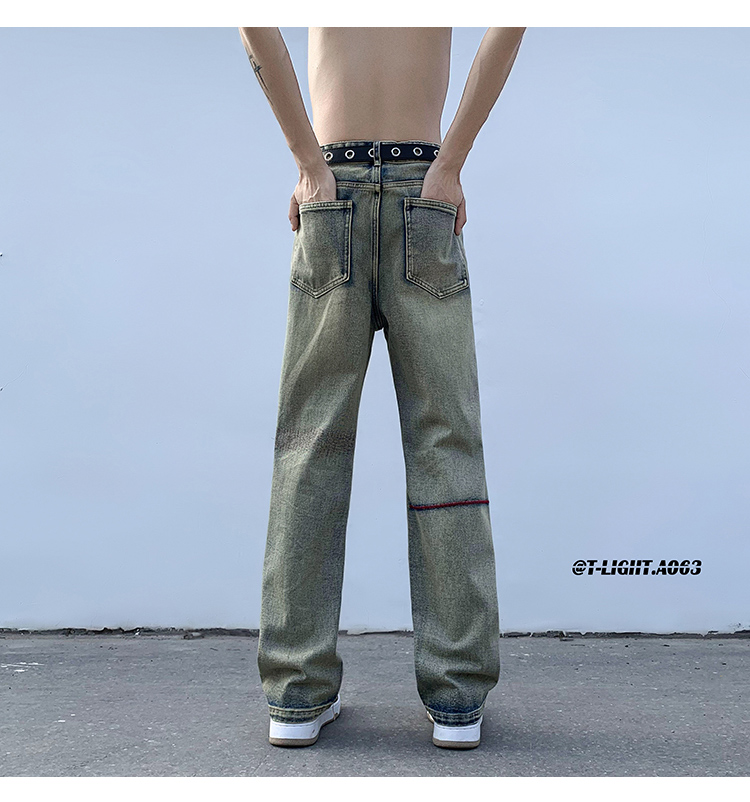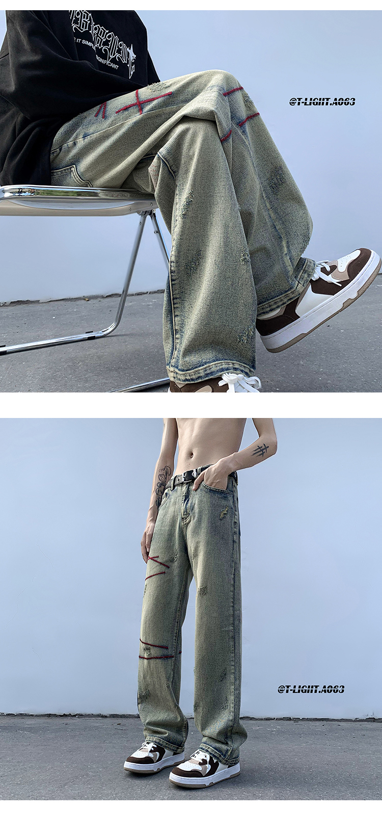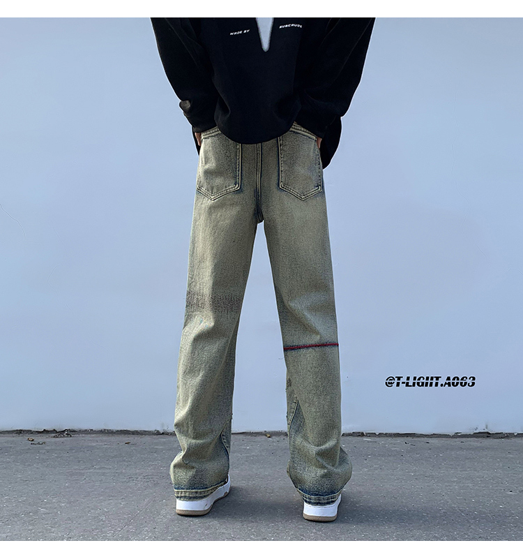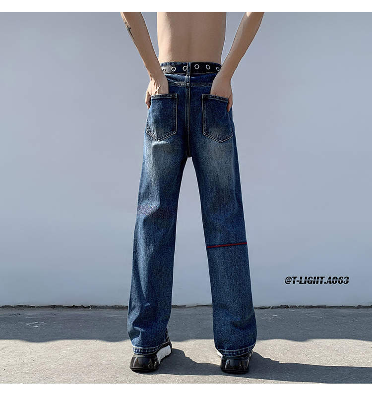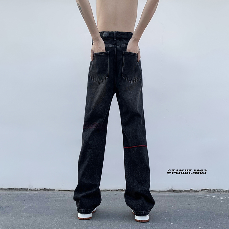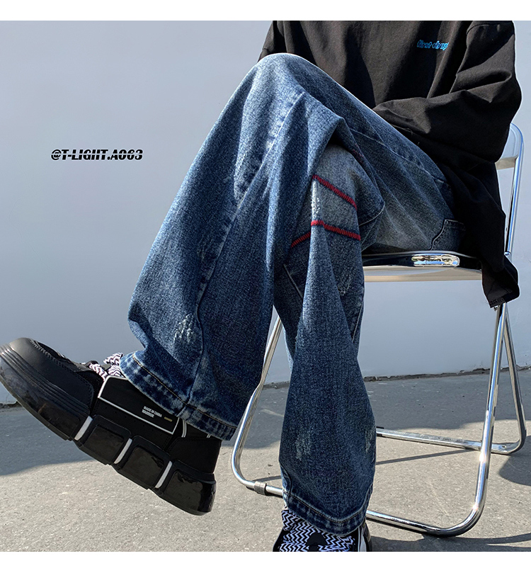 歐美hiphop炸街褲子高街潮ins重工刺繡水洗牛仔褲寬鬆直筒休閒褲
