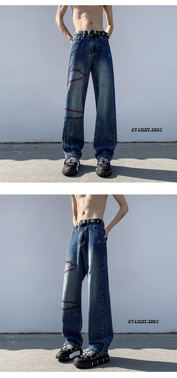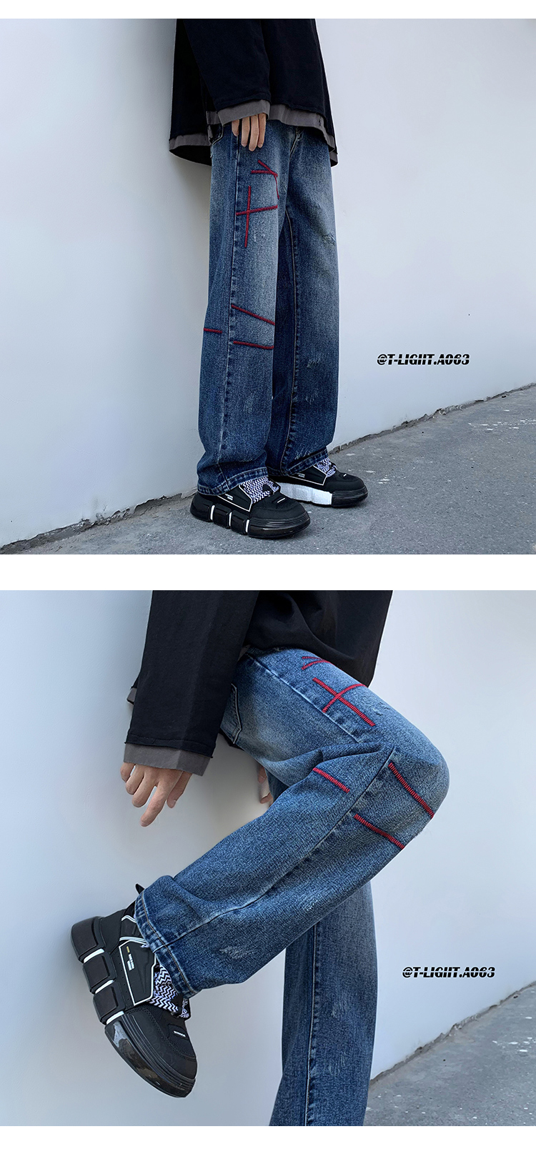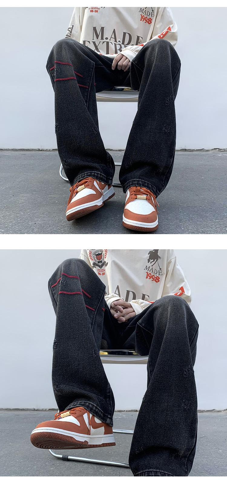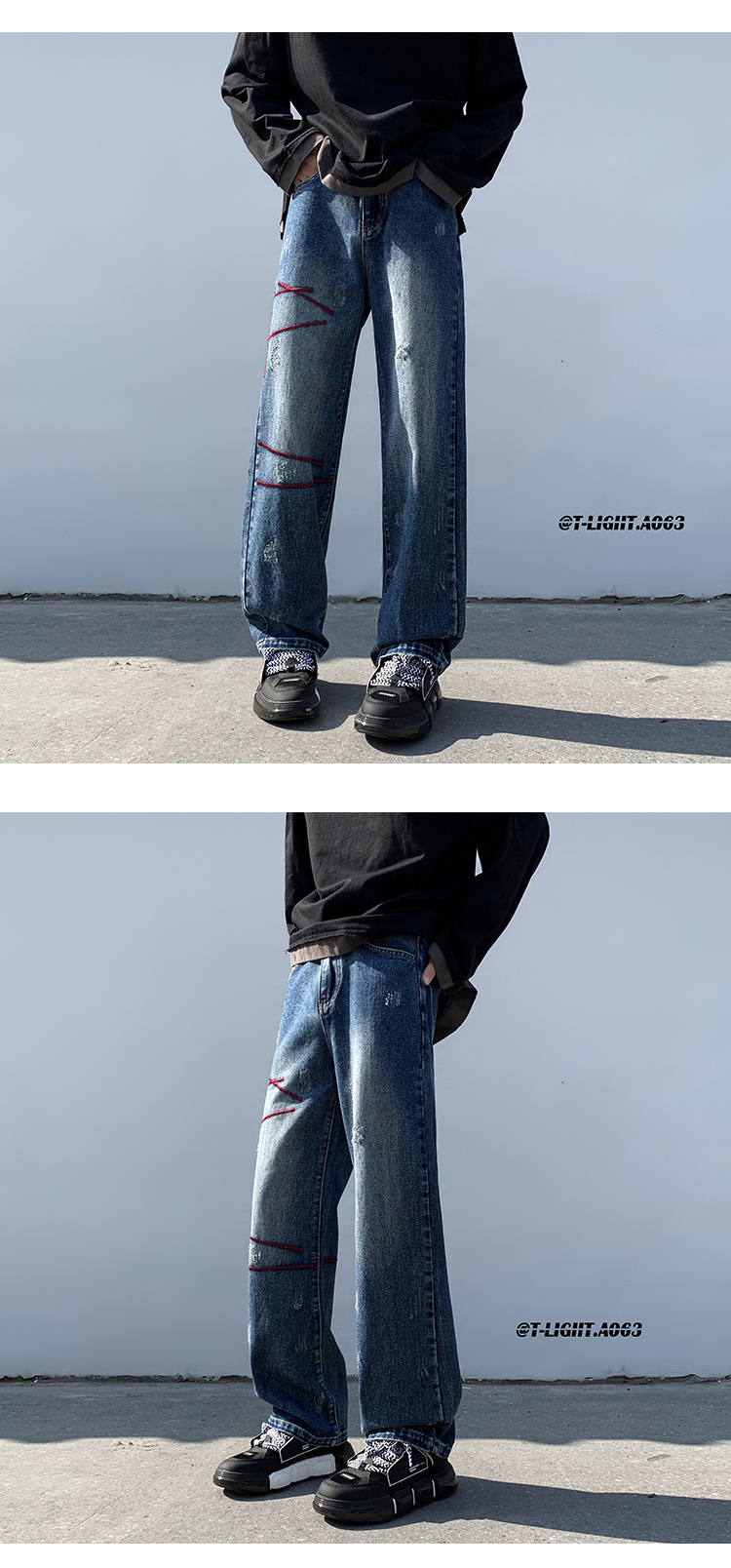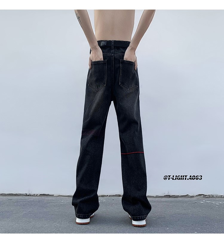 歐美hiphop炸街褲子高街潮ins重工刺繡水洗牛仔褲寬鬆直筒休閒褲