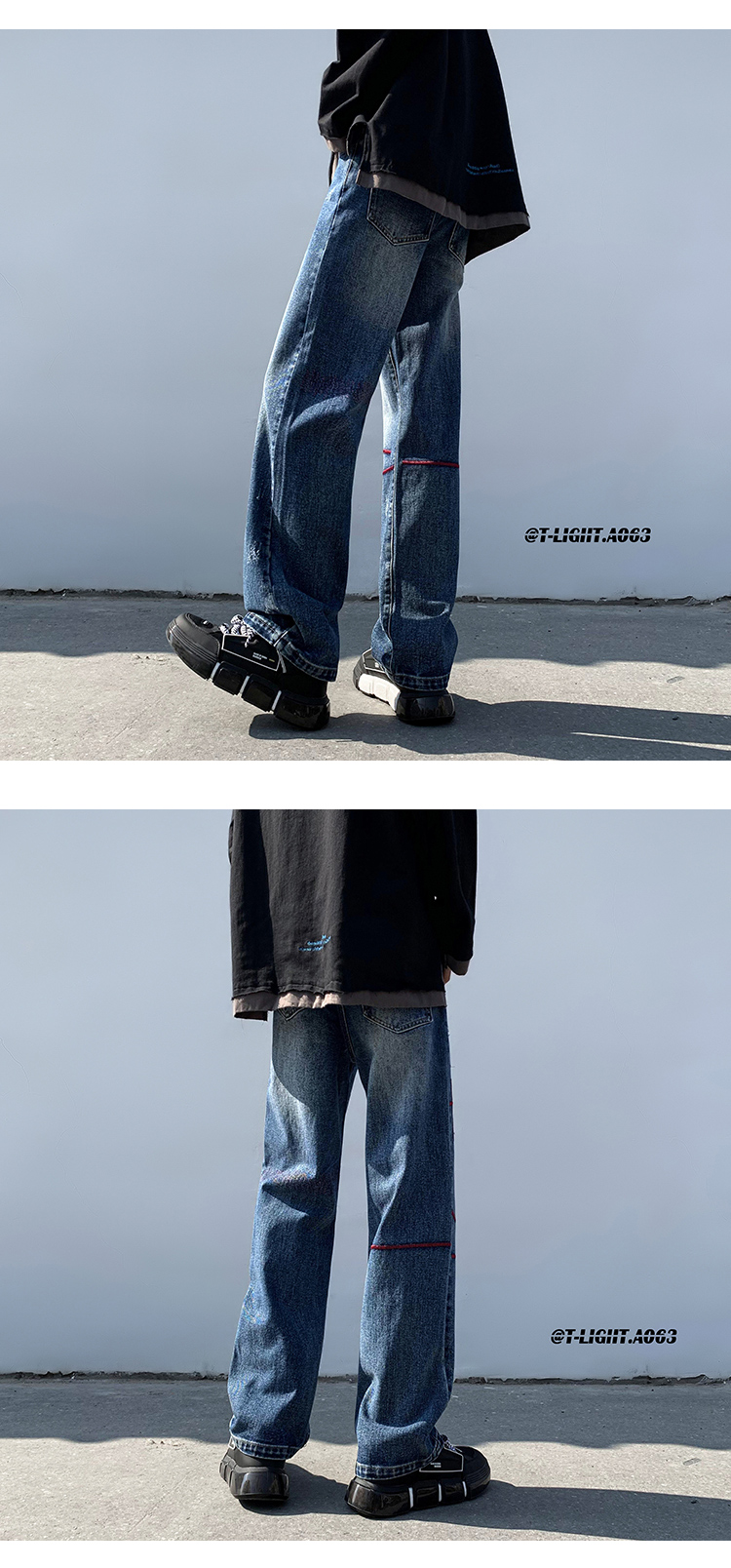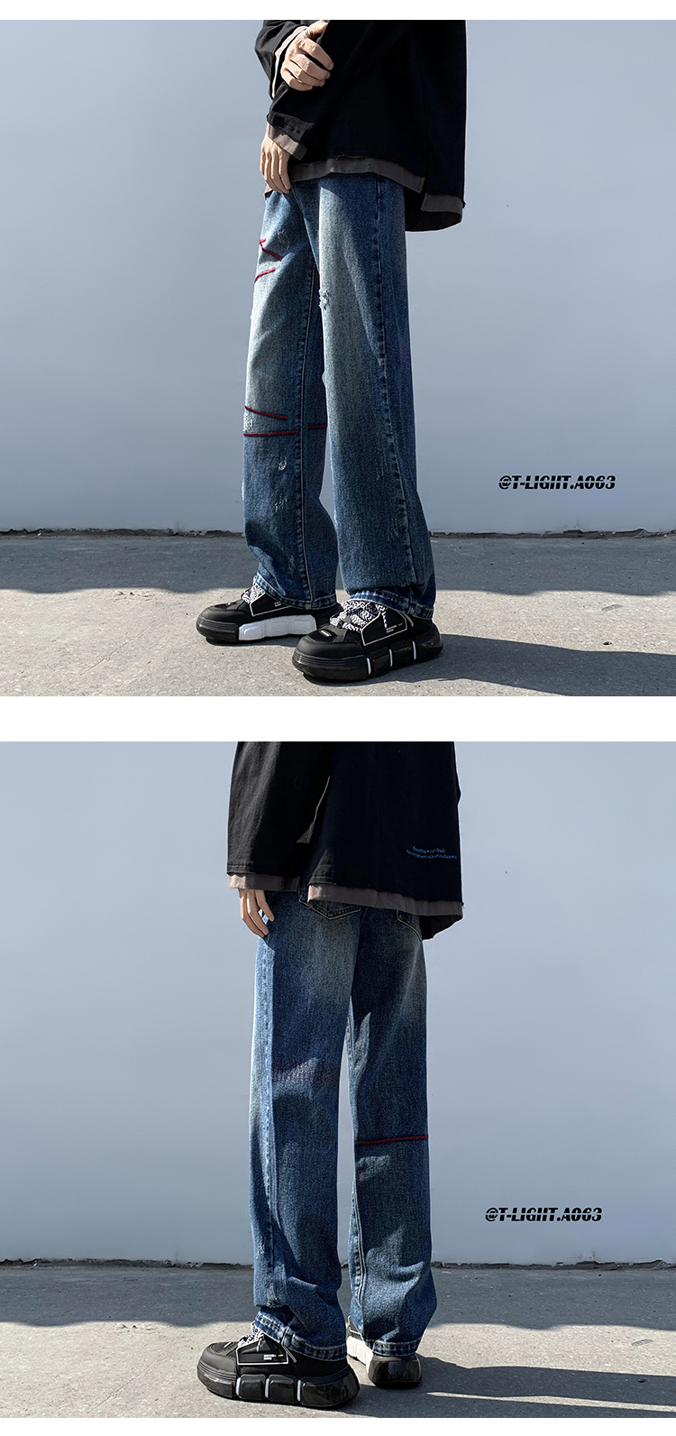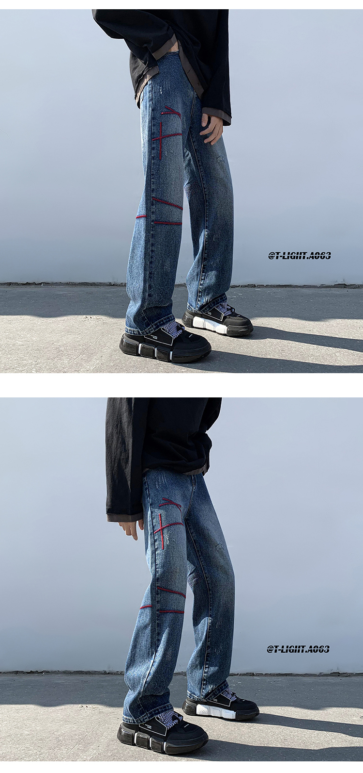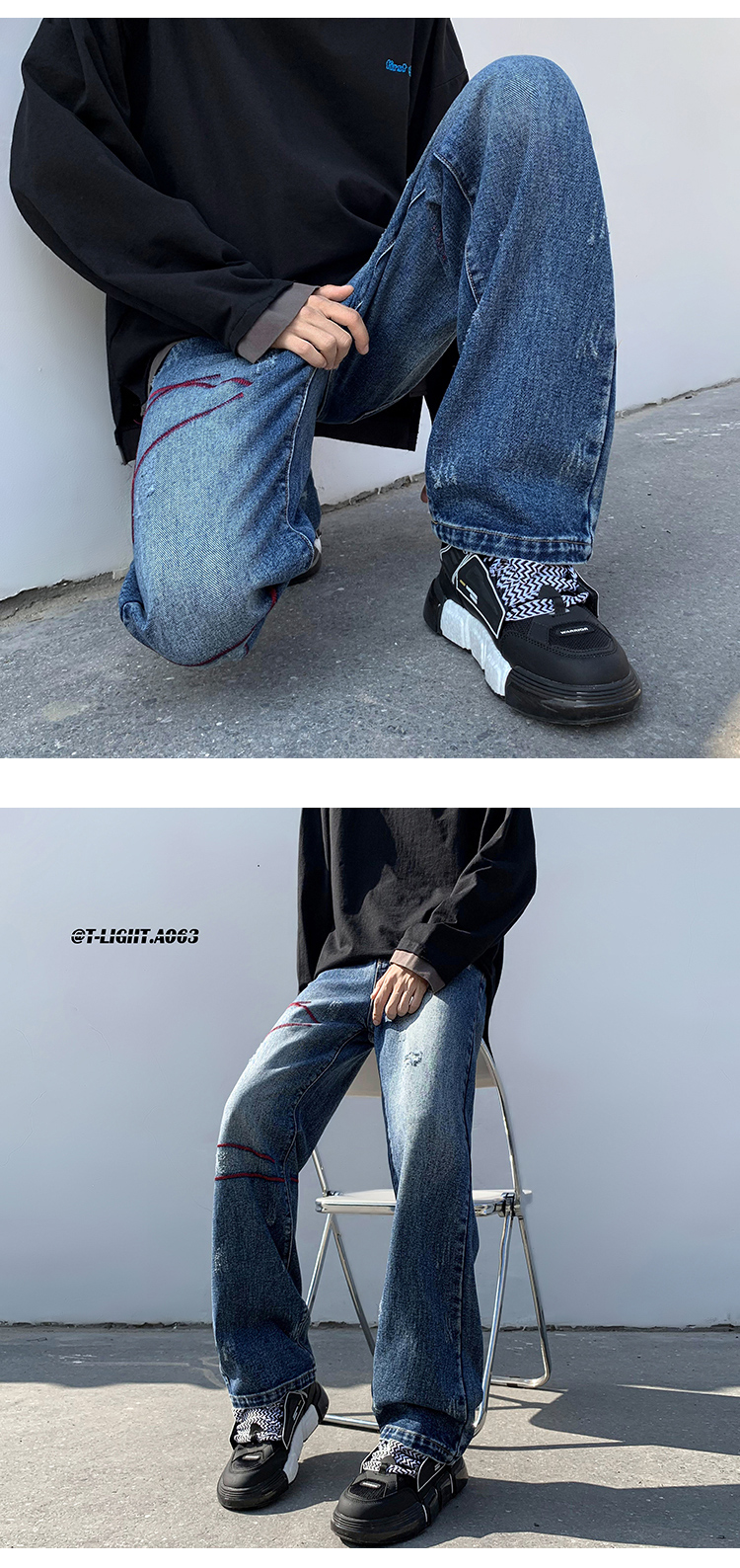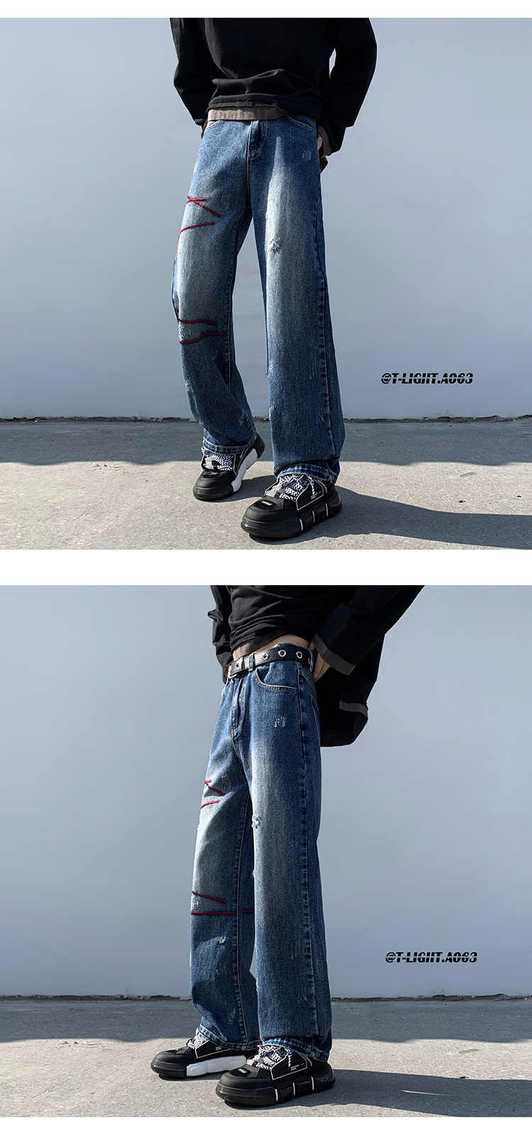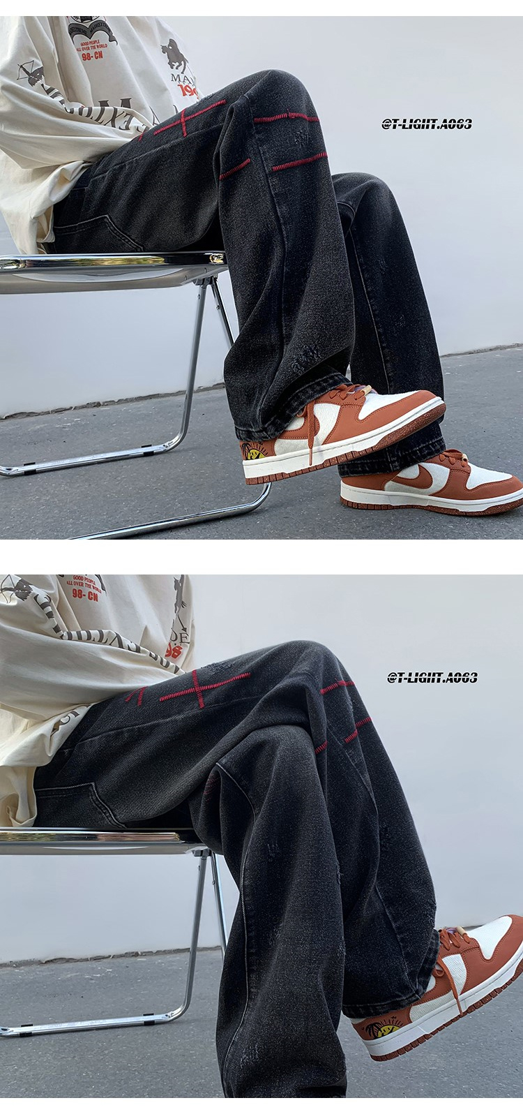 歐美hiphop炸街褲子高街潮ins重工刺繡水洗牛仔褲寬鬆直筒休閒褲