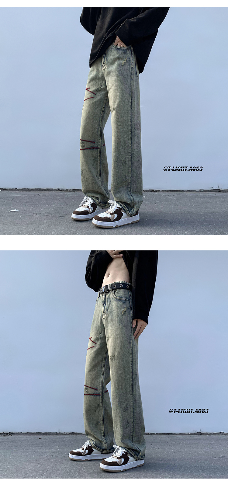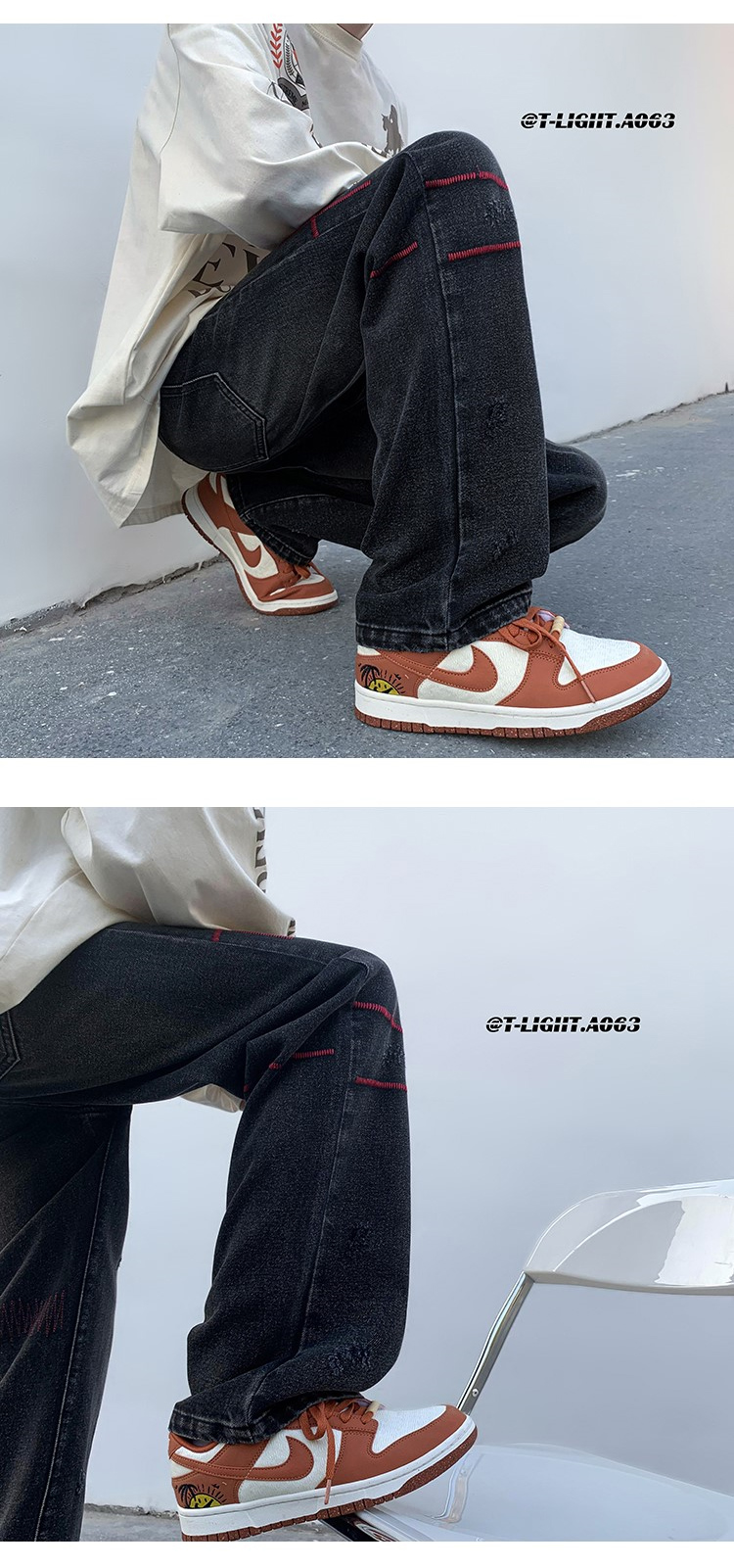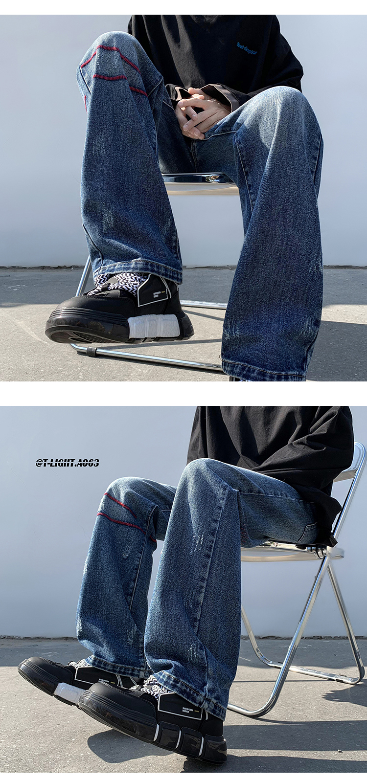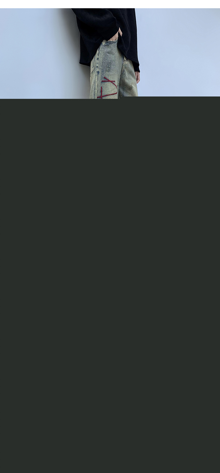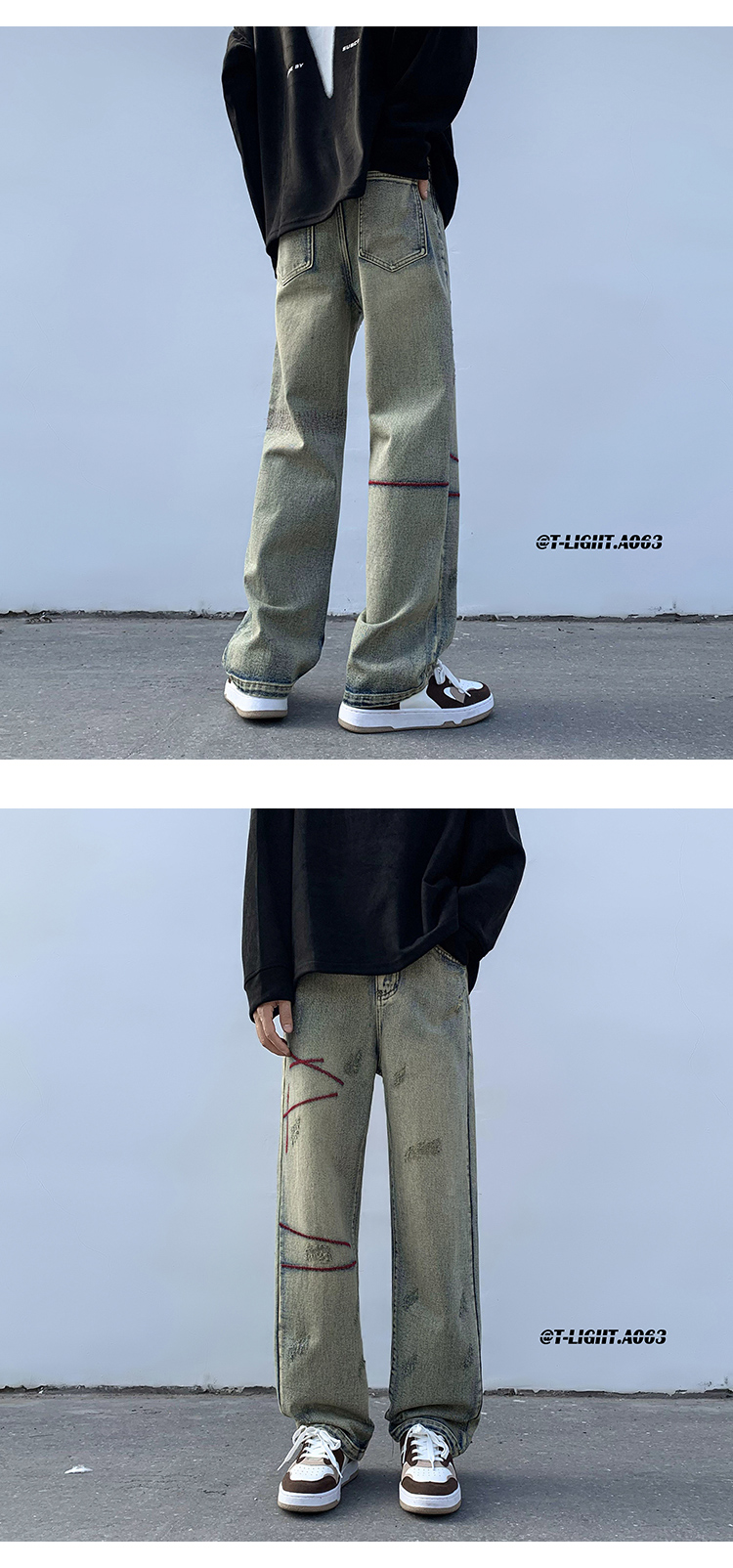 歐美hiphop炸街褲子高街潮ins重工刺繡水洗牛仔褲寬鬆直筒休閒褲