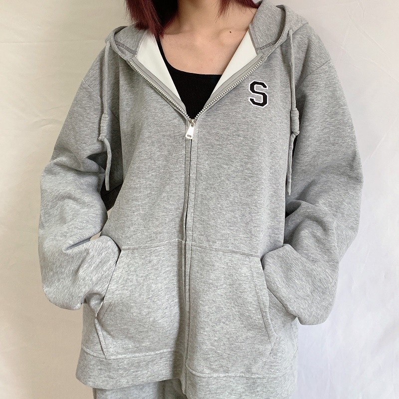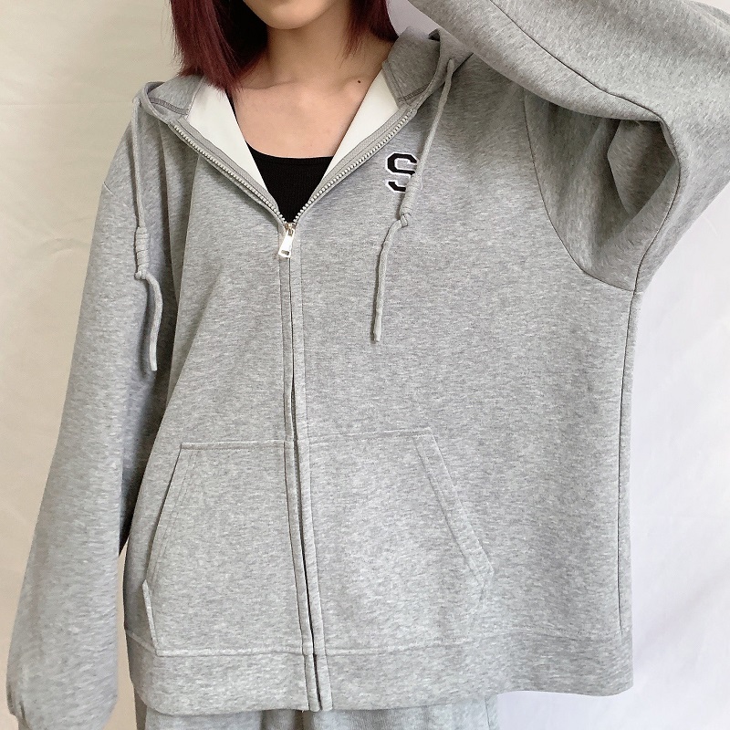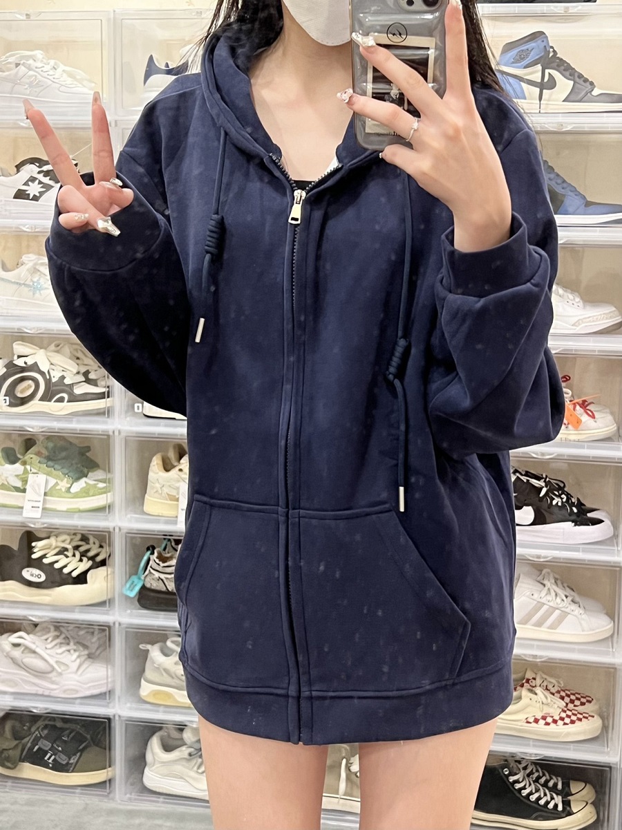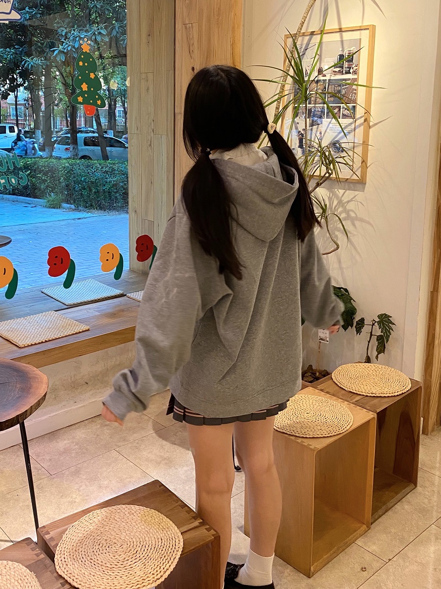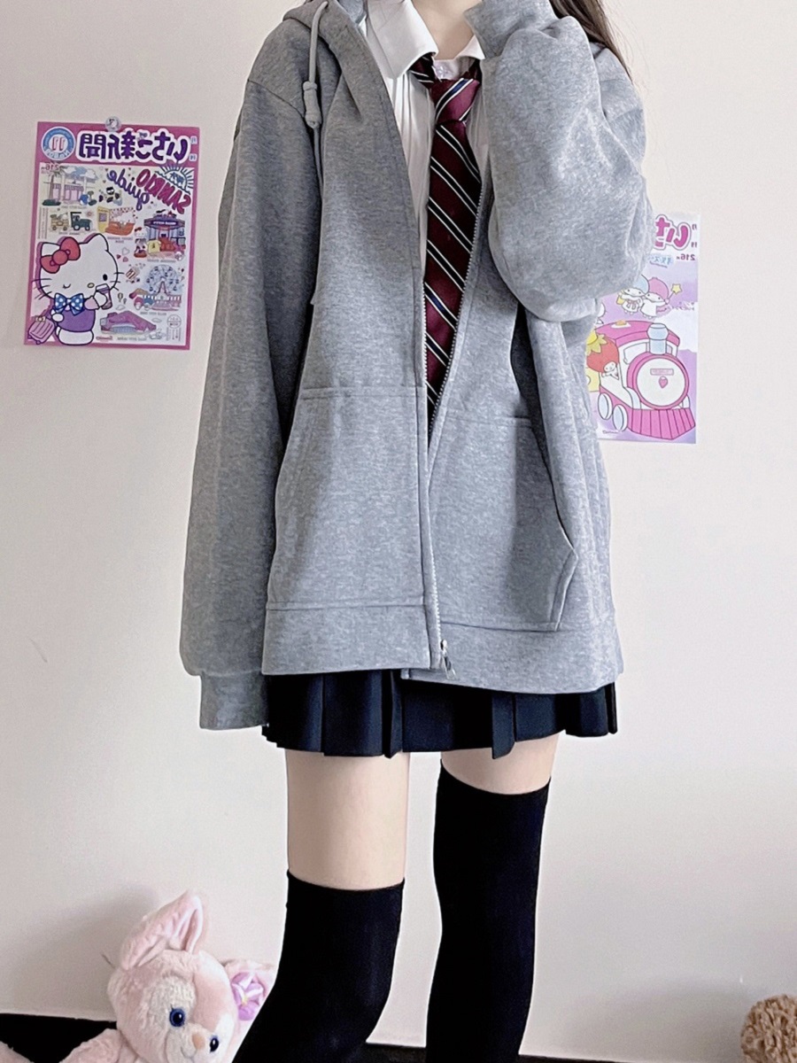 藏青寬鬆連帽運動衫女學生秋冬顯瘦百搭酒紅加絨拉鍊開衫jk外套上衣