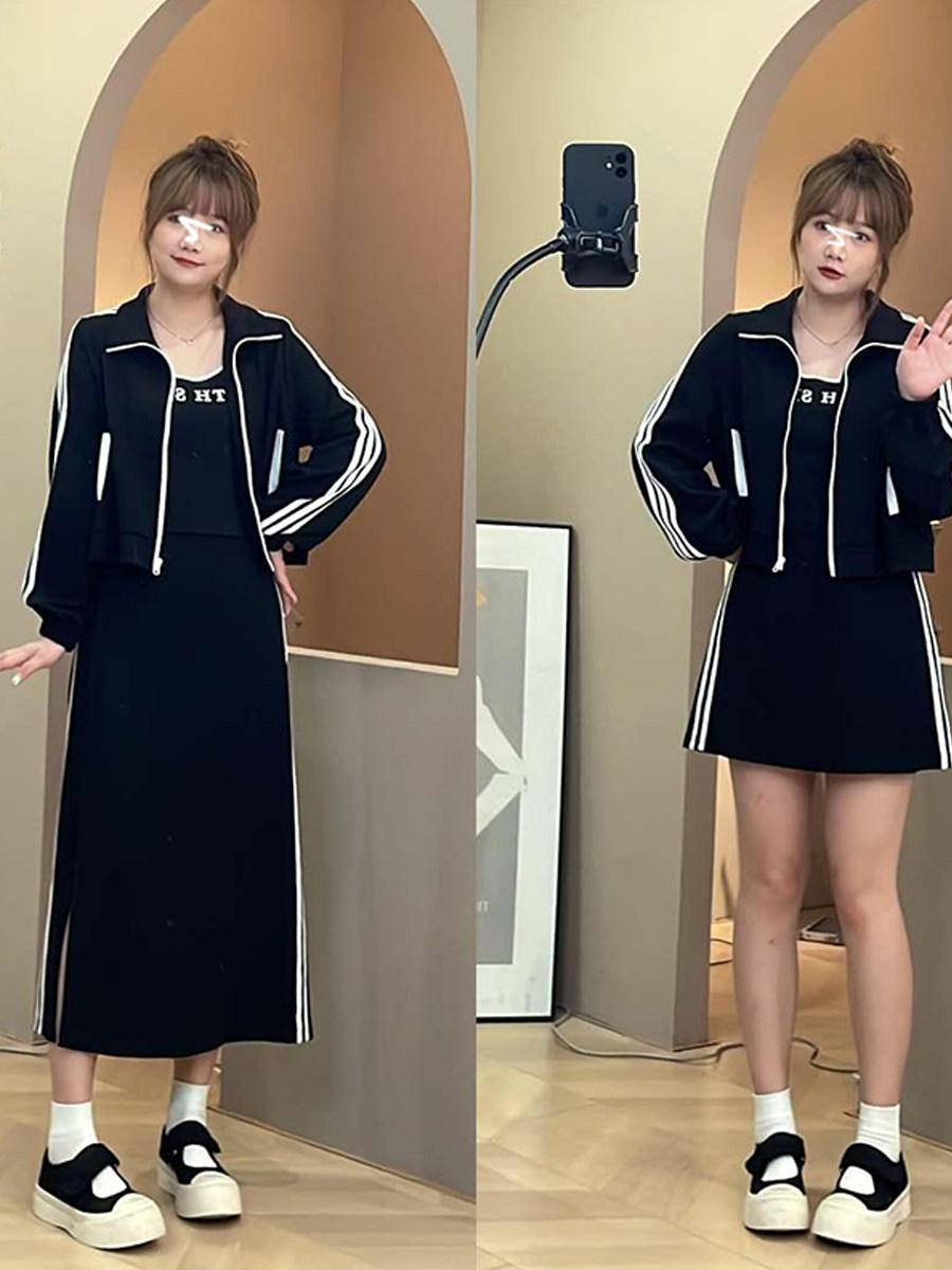 顏色分類 黑色短裙三件套,黑色長裙三件套