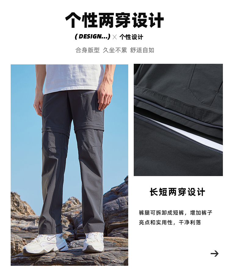拓路者夏季速乾褲男戶外登山休閒褲可拆卸褲管兩穿防潑水直筒長褲