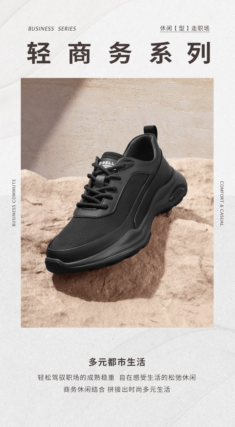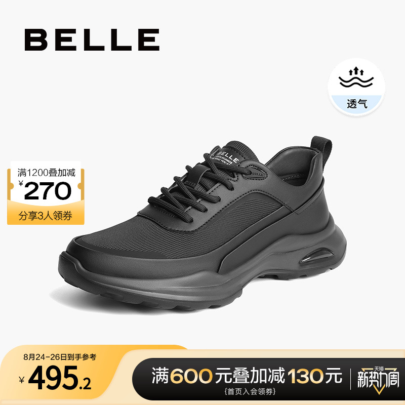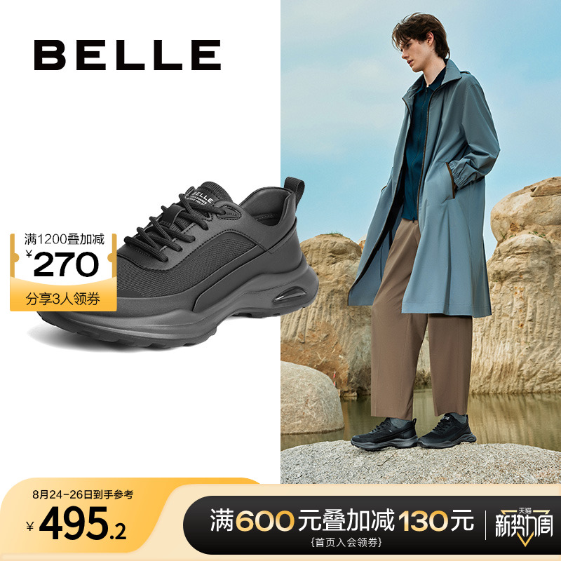 百麗網面透氣休閒男鞋2023秋季新商場同款厚底戶外運動鞋8AX01CM3