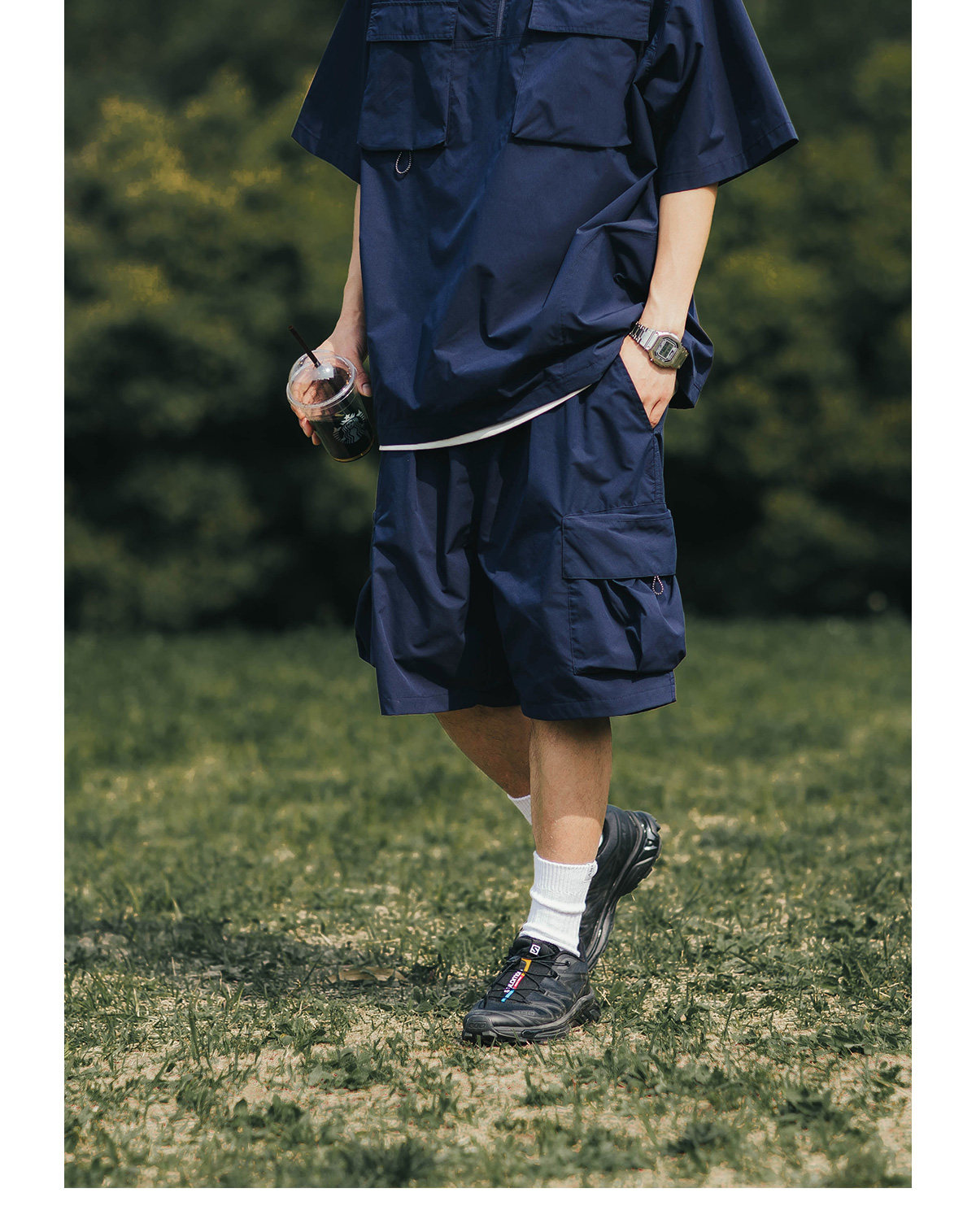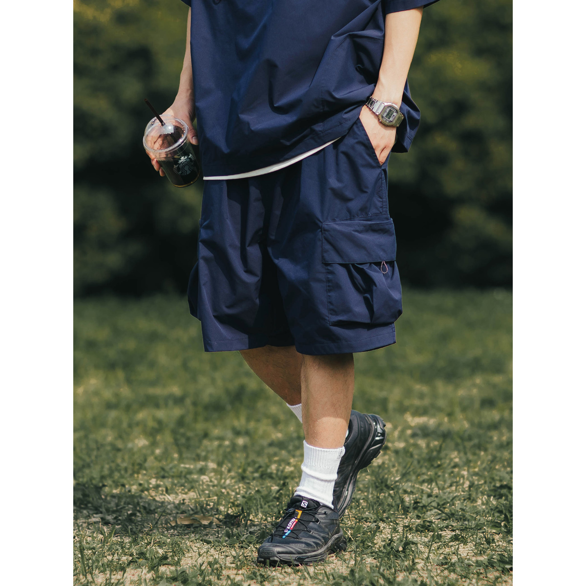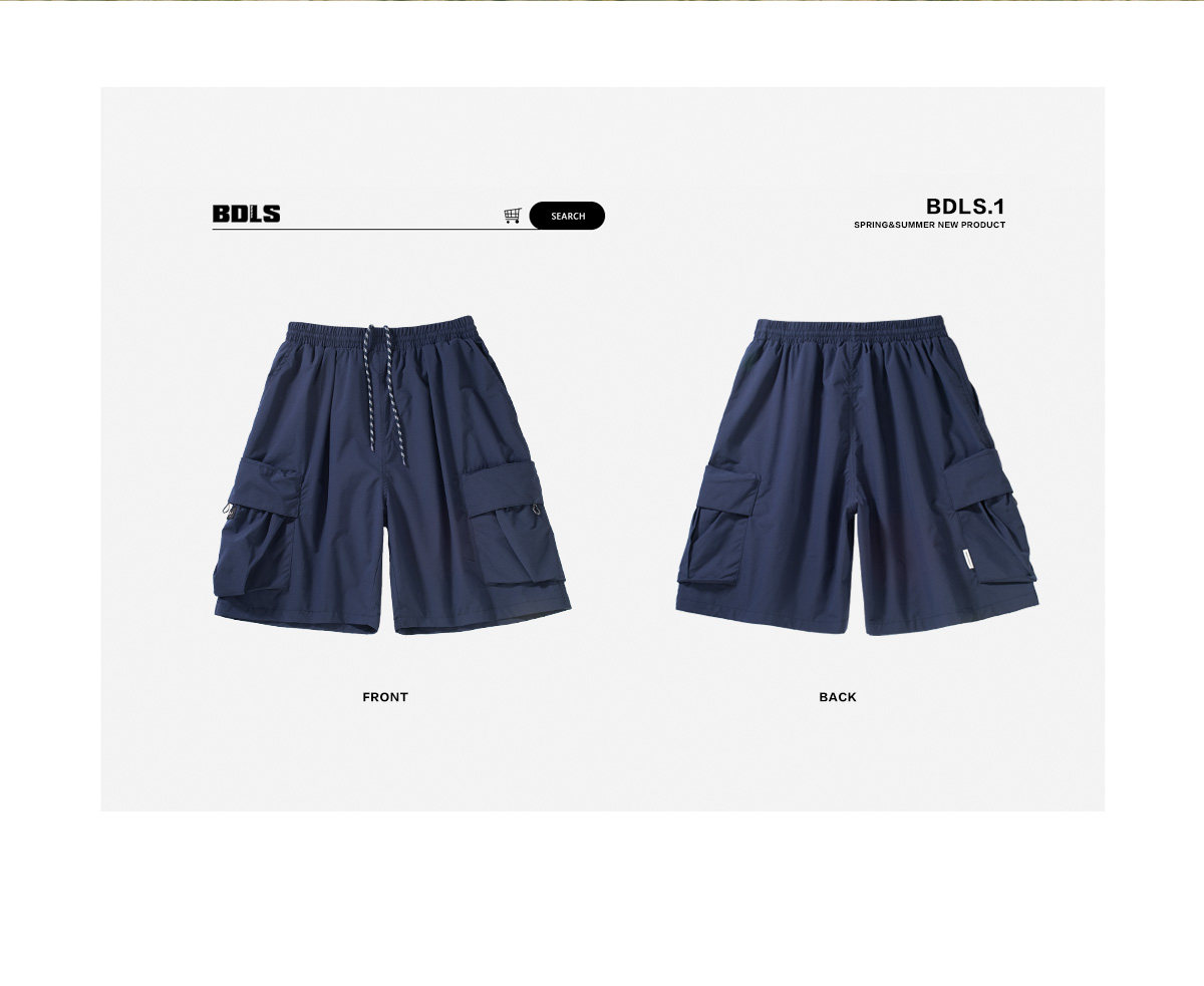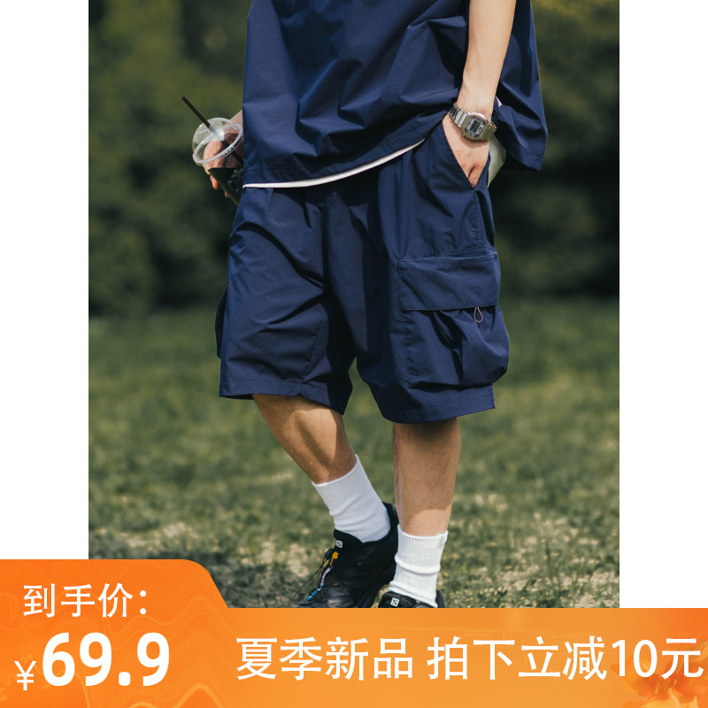 BDLS 日系輕戶外機能工裝短褲男夏季新款純色寬鬆休閒直筒五分褲