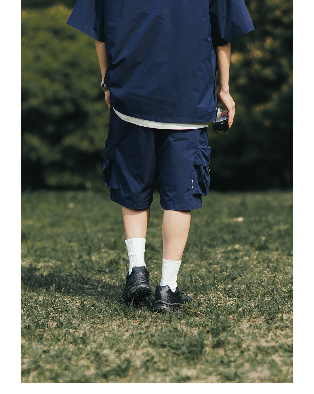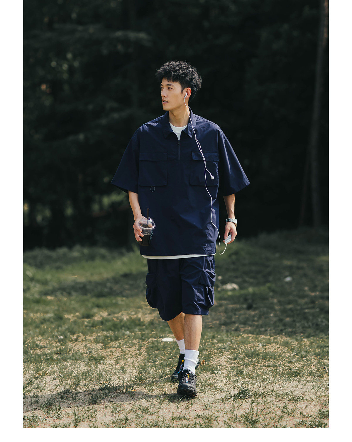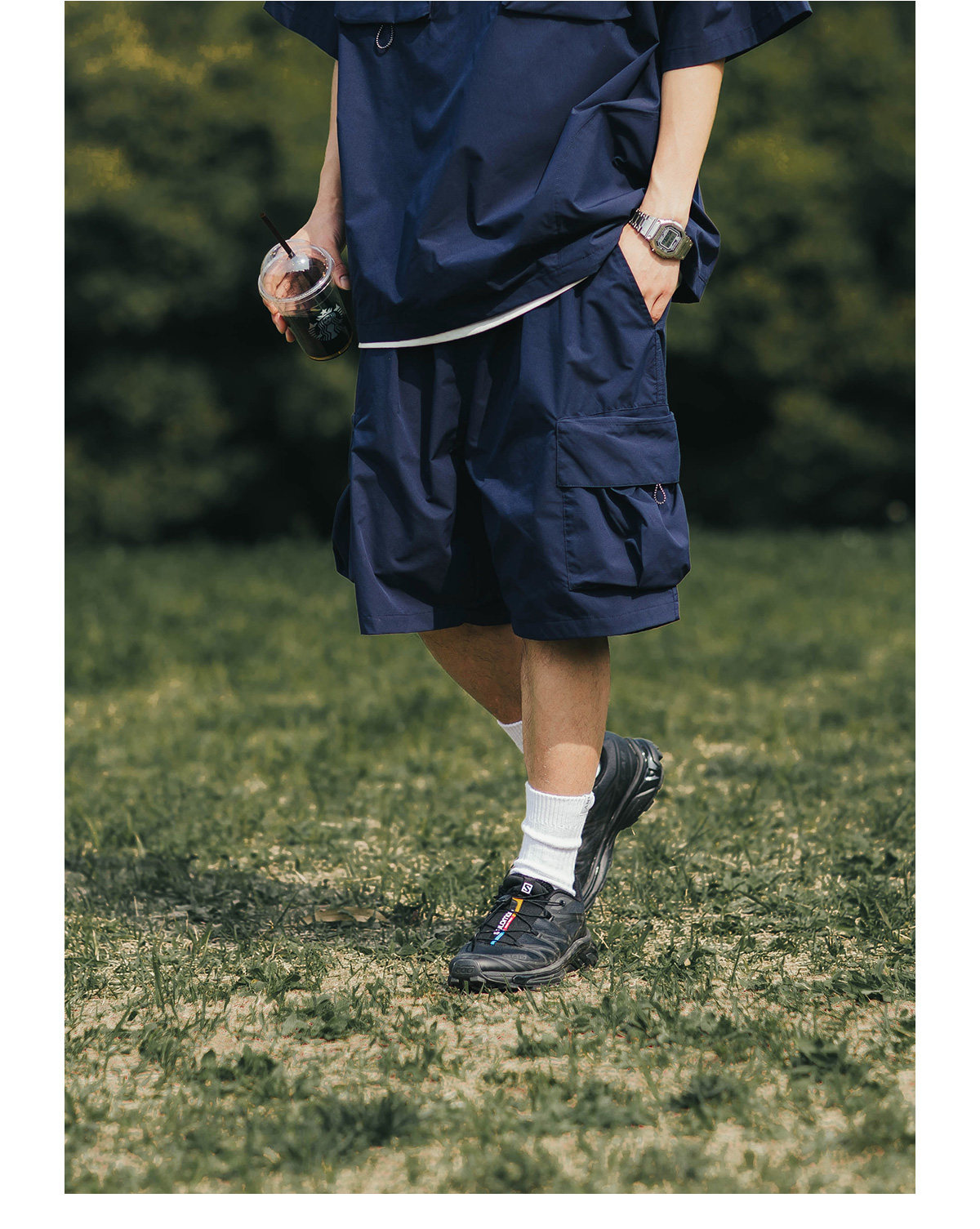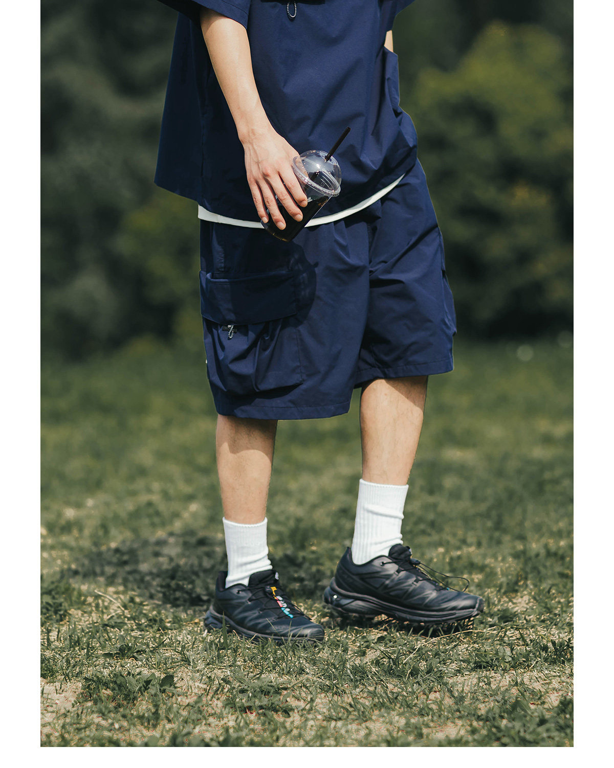 BDLS 日系輕戶外機能工裝短褲男夏季新款純色寬鬆休閒直筒五分褲