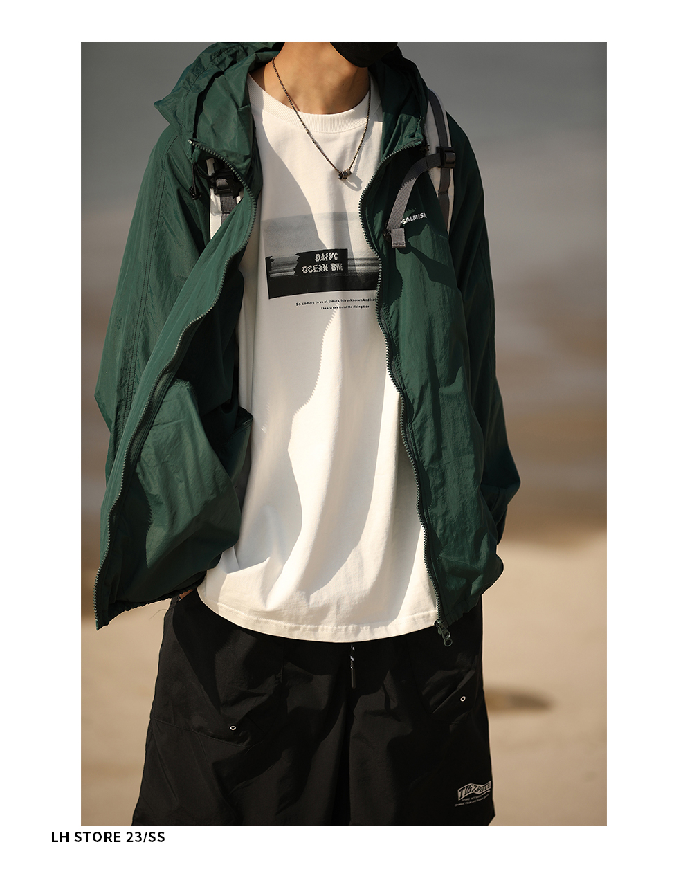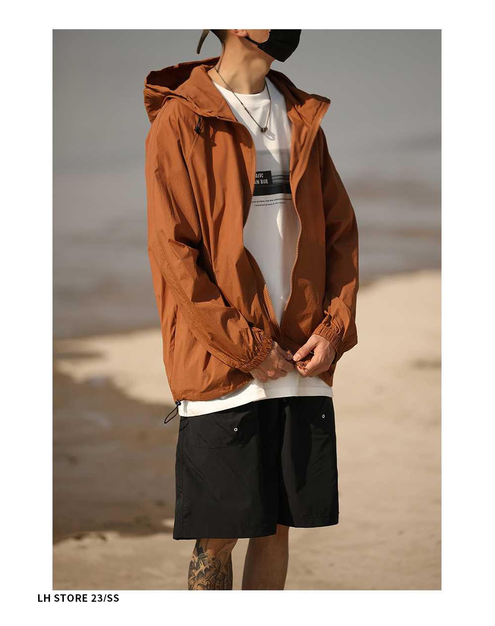 LH store 防曬衣男夏季新款日系連帽衝鋒衣夾克輕薄休閒潮牌外套