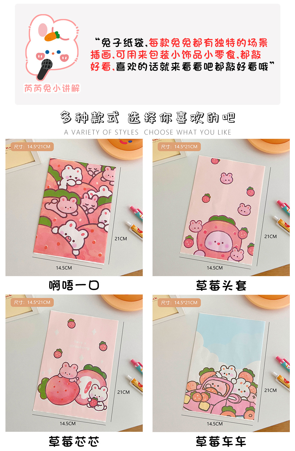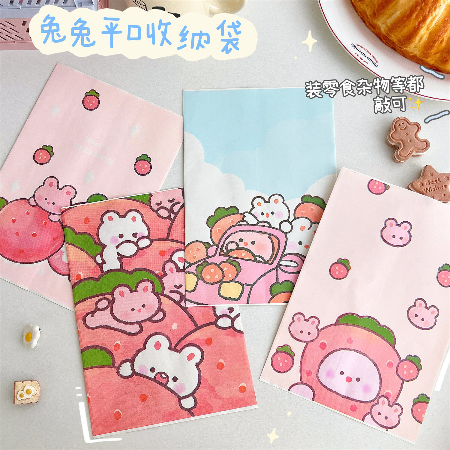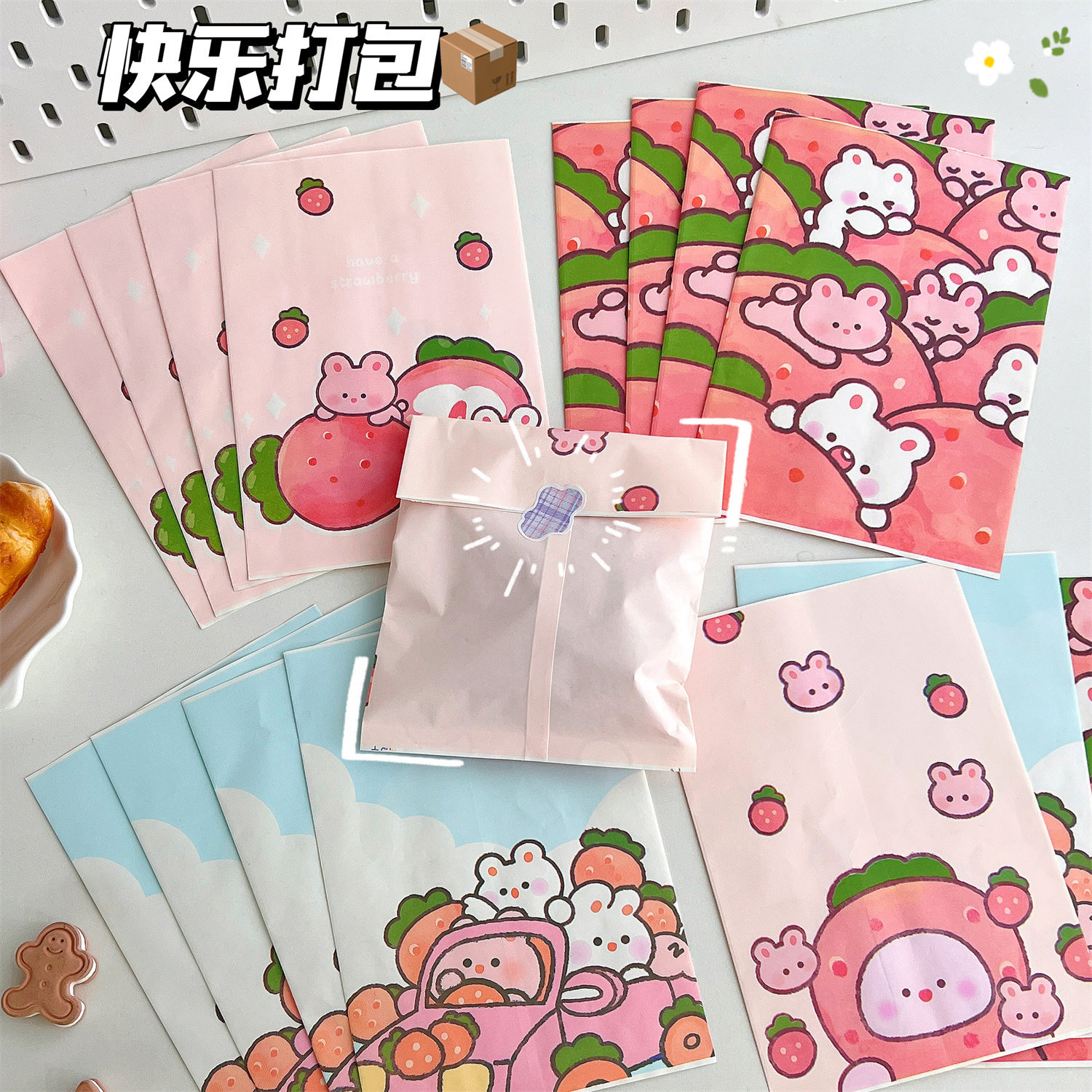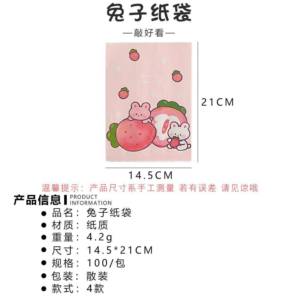 腾亿可爱卡通草莓兔兔纸质收纳袋迷你纸袋子摆拍装饰道具包装材料