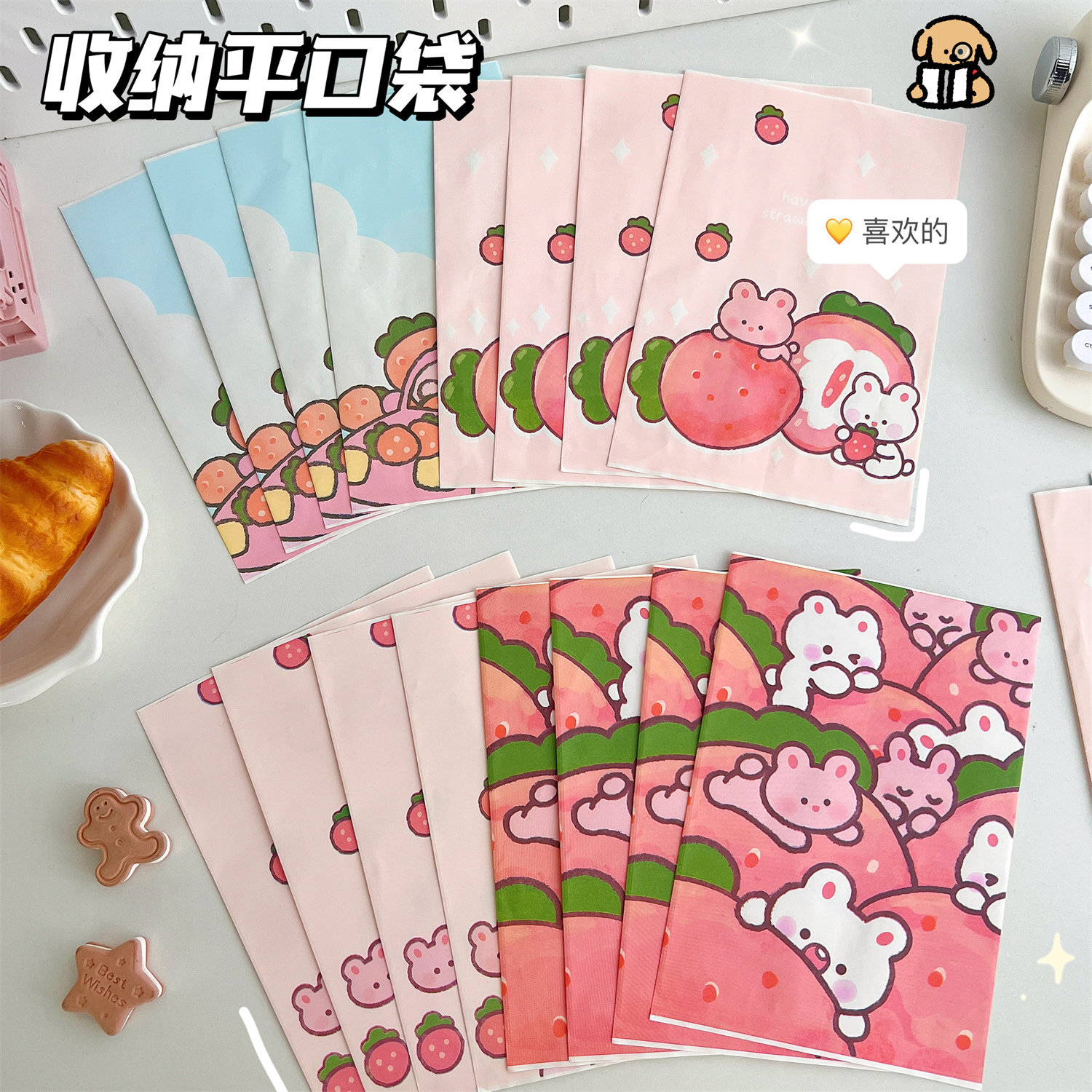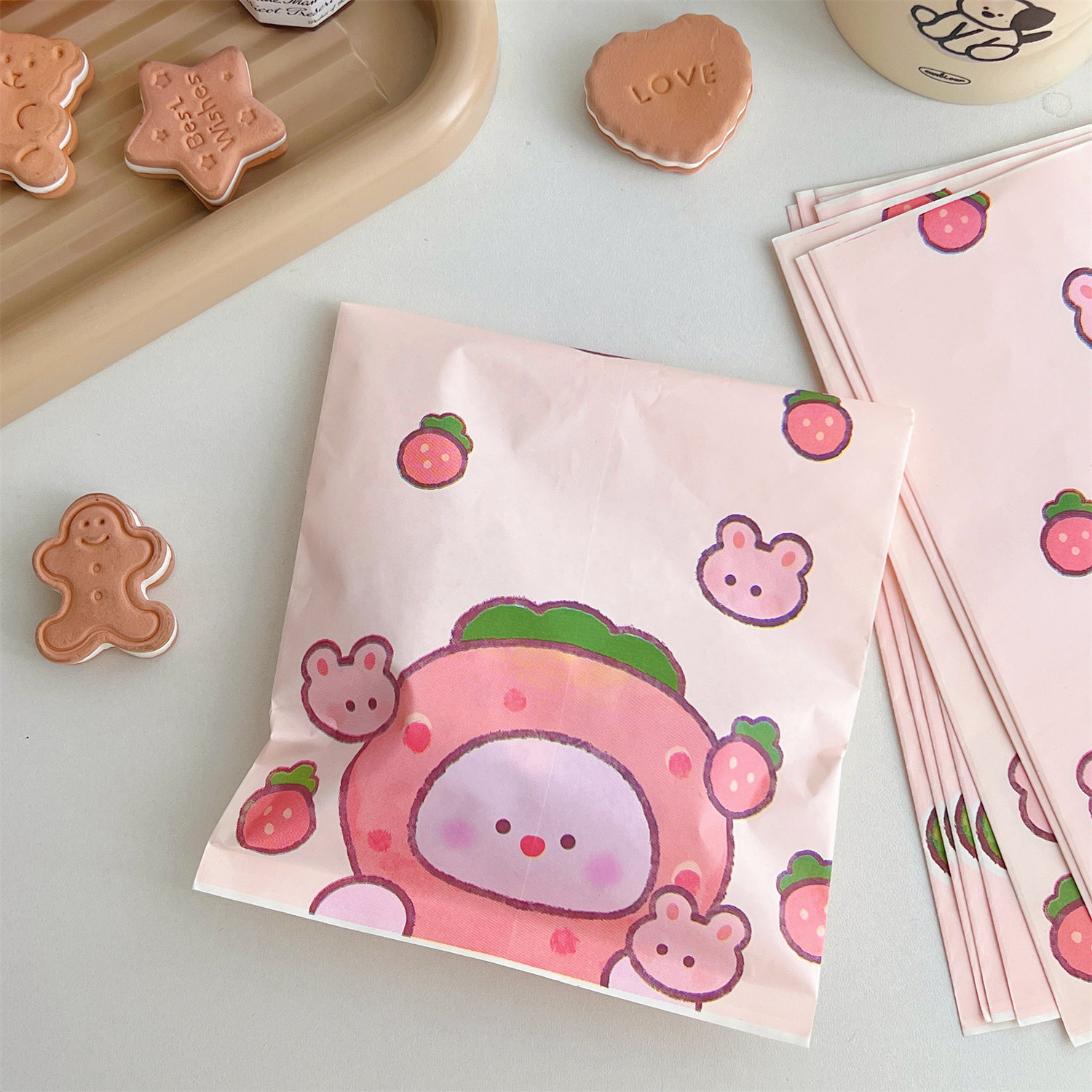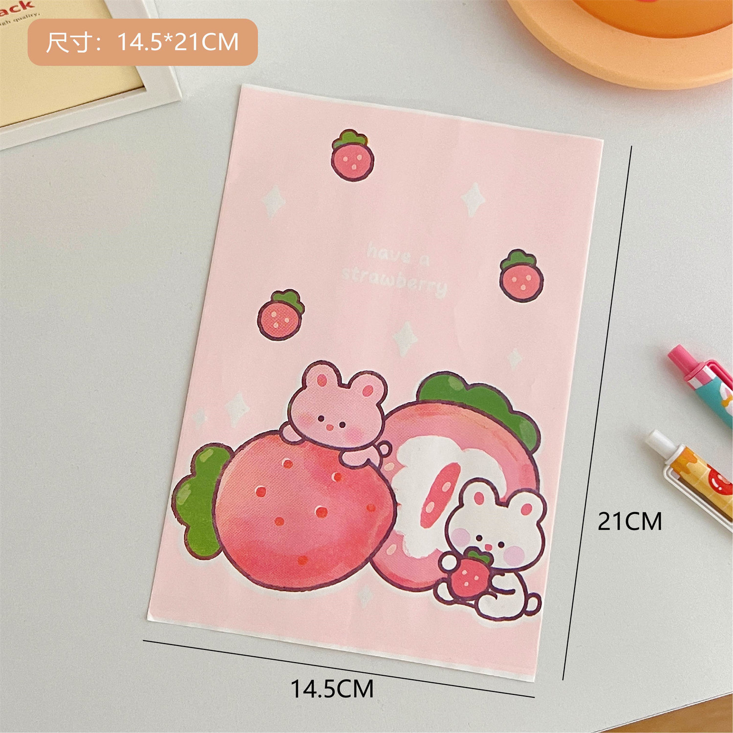 腾亿可爱卡通草莓兔兔纸质收纳袋迷你纸袋子摆拍装饰道具包装材料