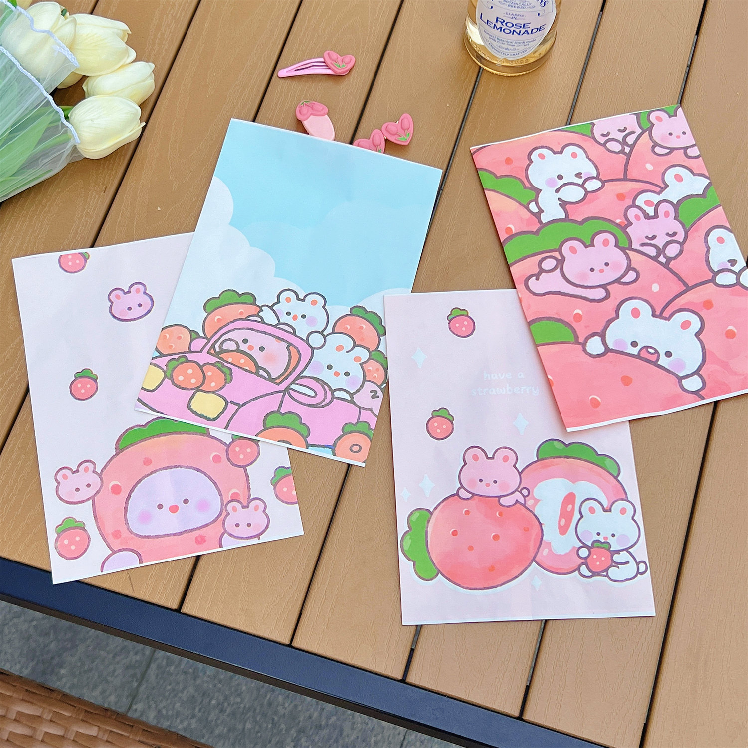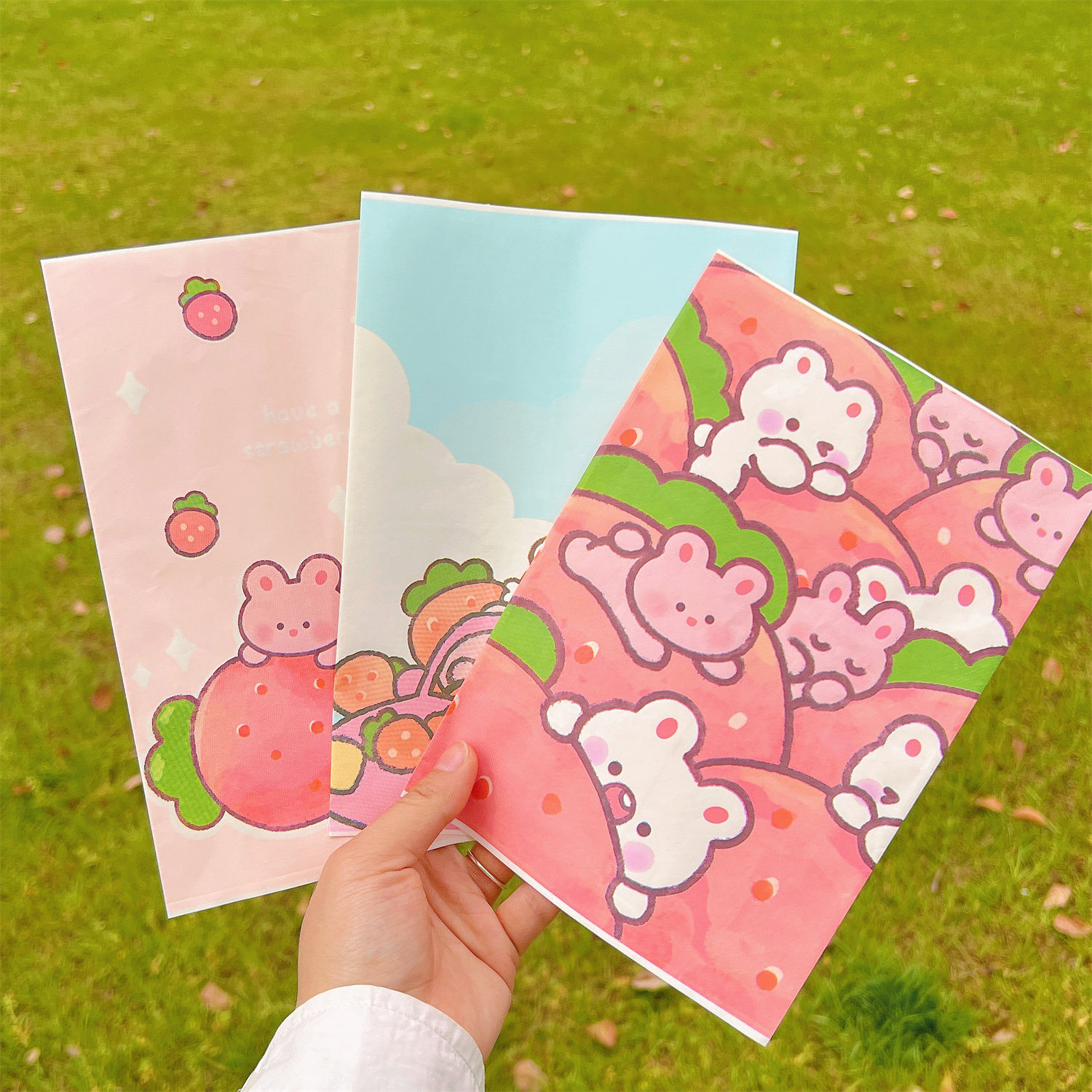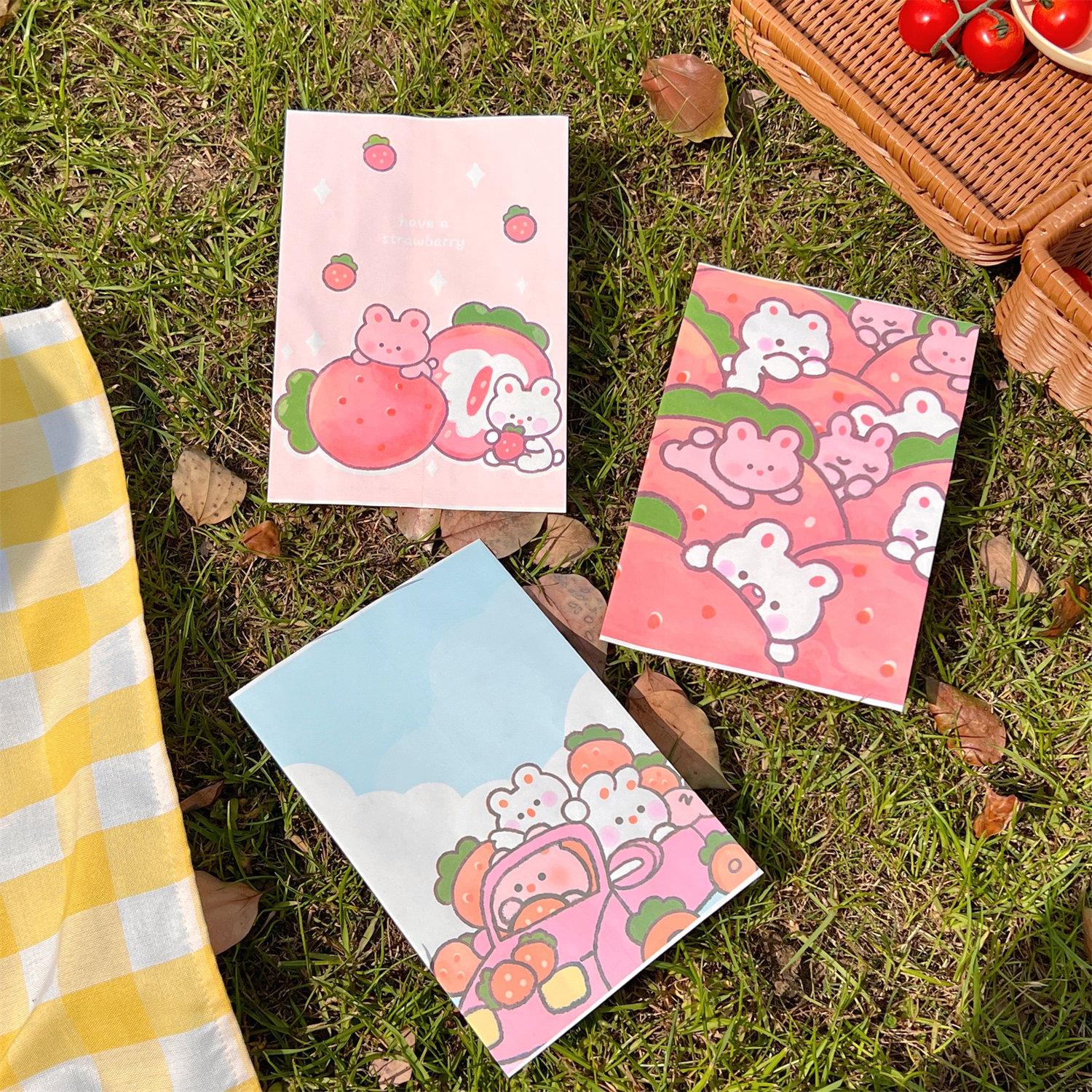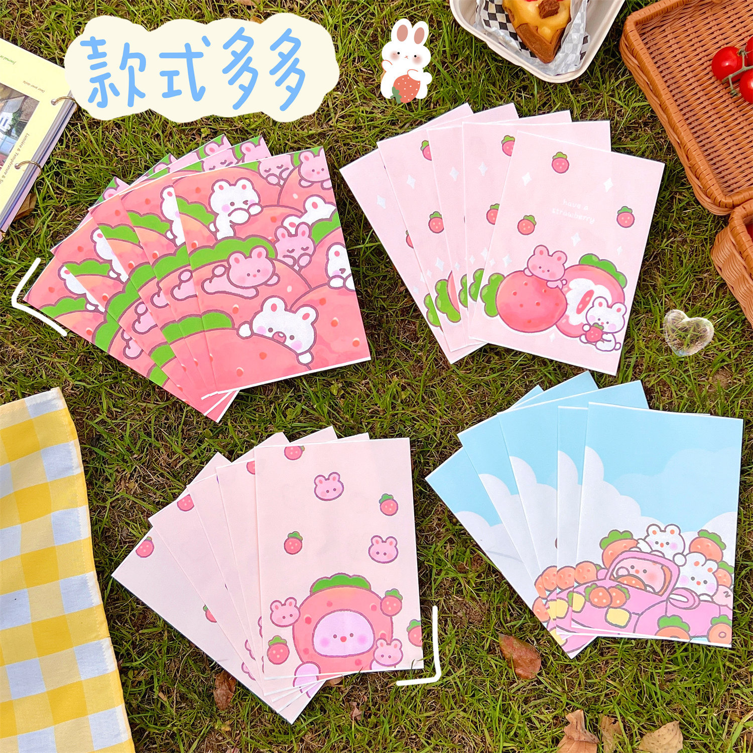腾亿可爱卡通草莓兔兔纸质收纳袋迷你纸袋子摆拍装饰道具包装材料
