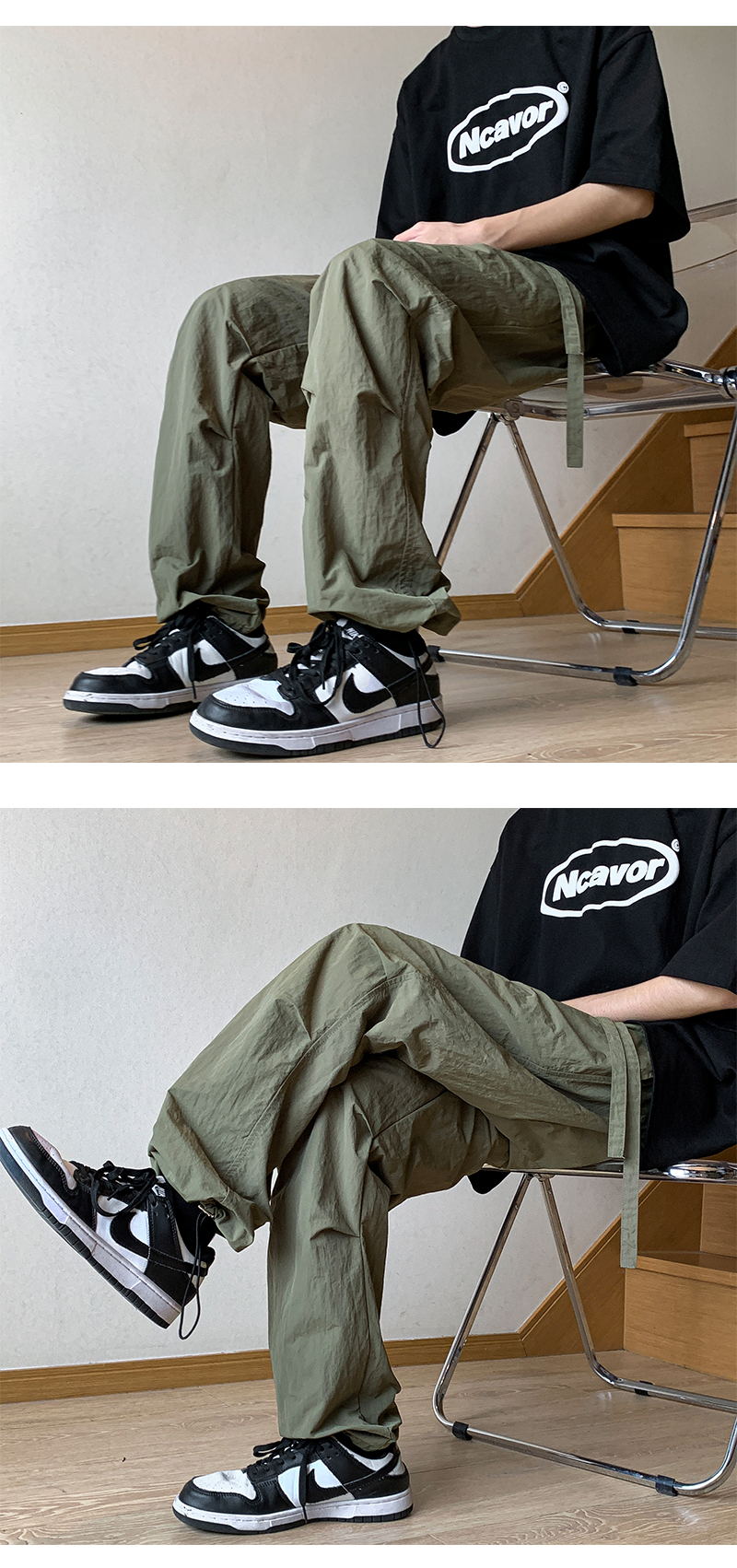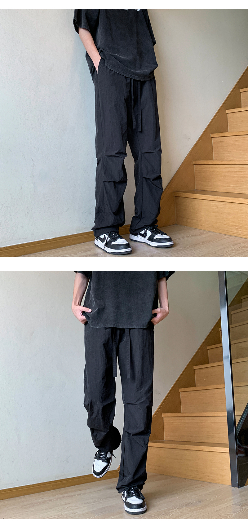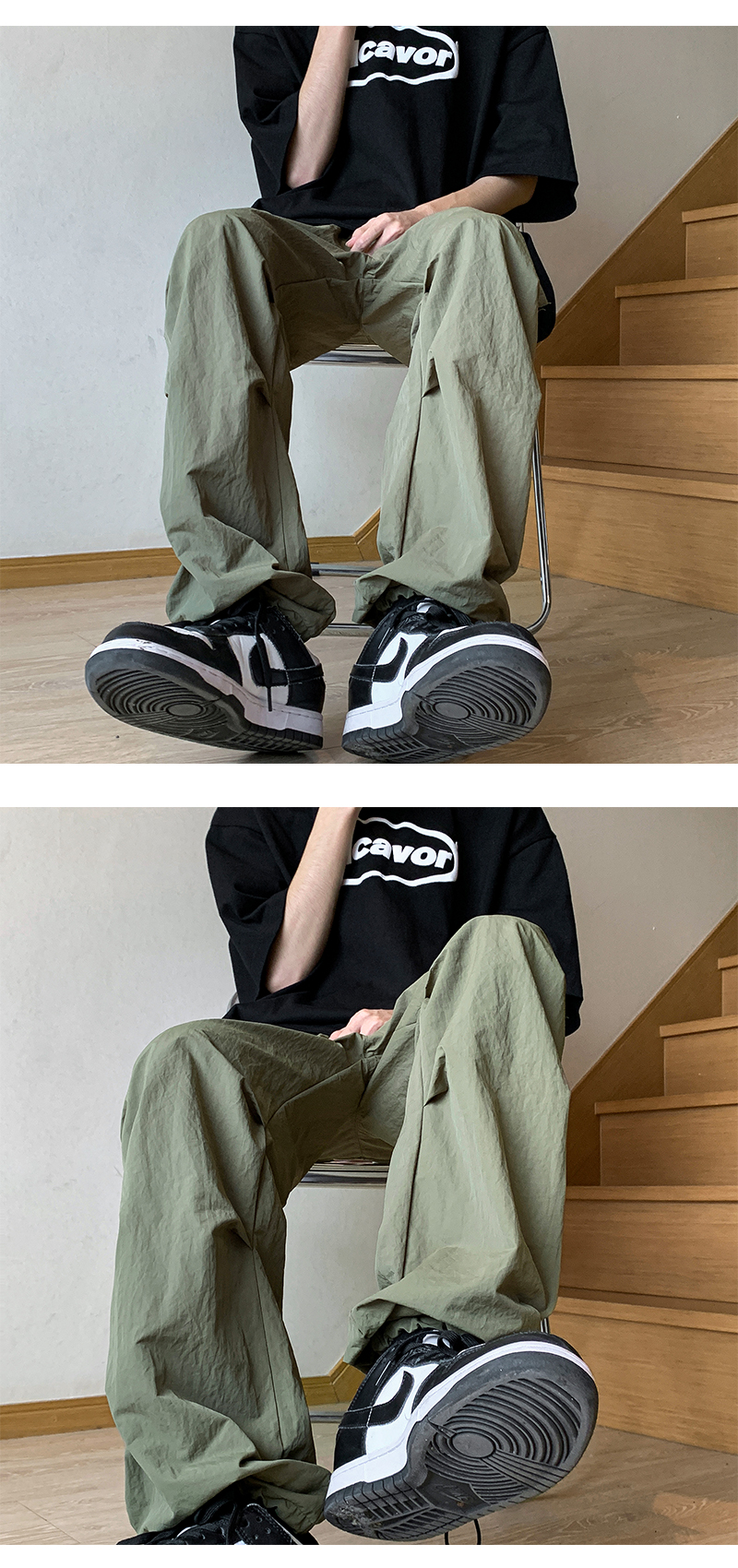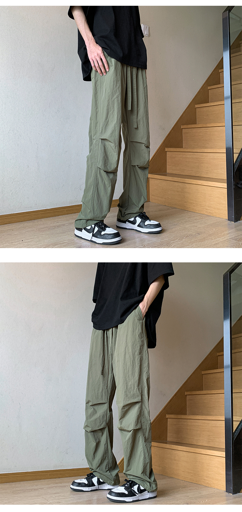 杏色潮流速乾褶皺冰絲褲美式ins涼感降落傘褲子oversize工裝長褲