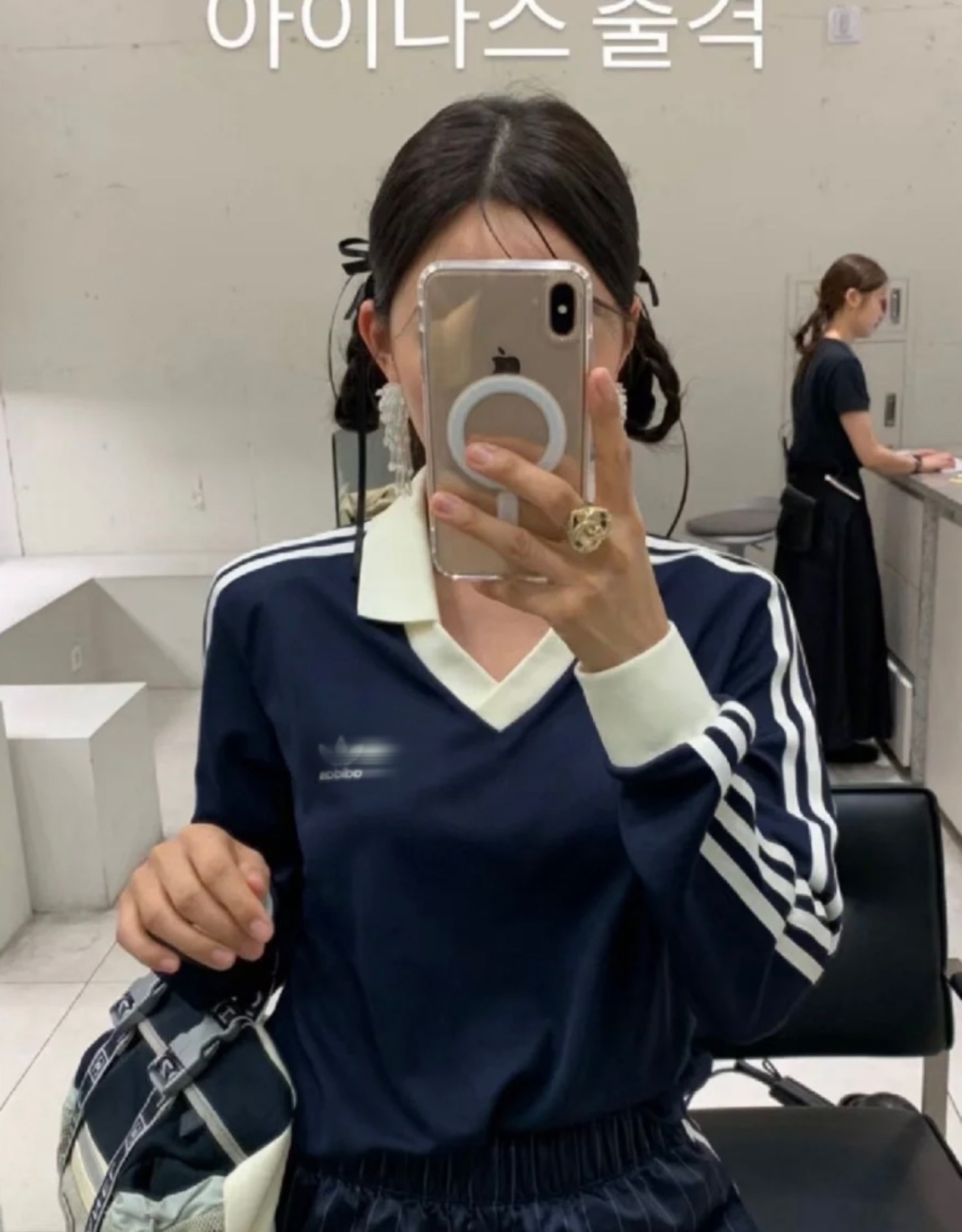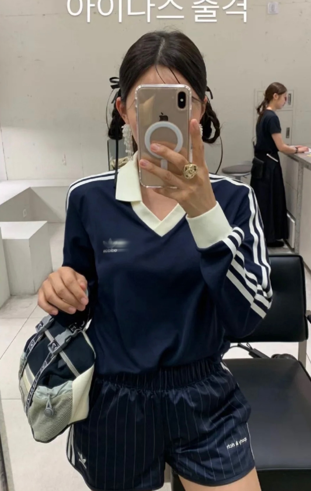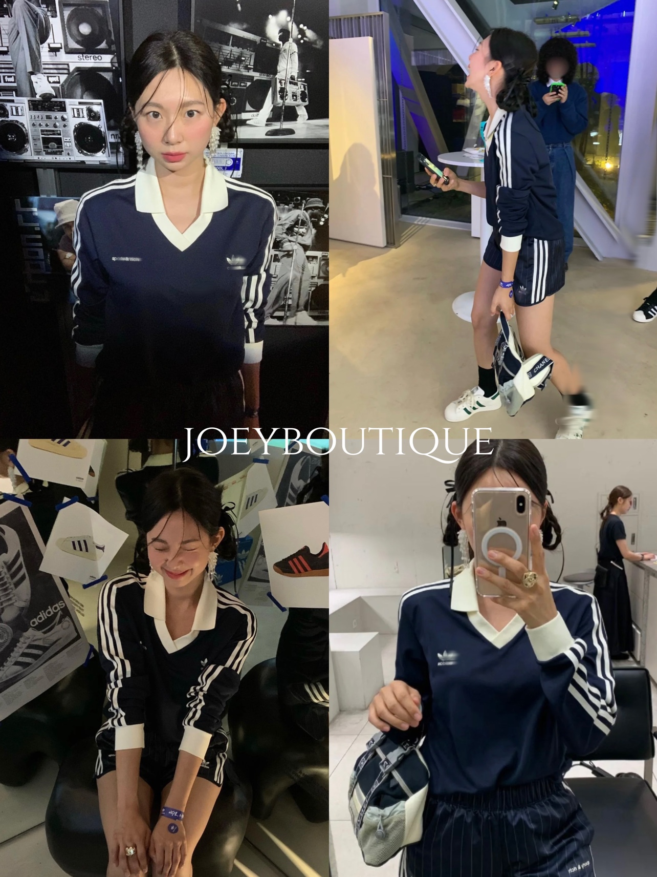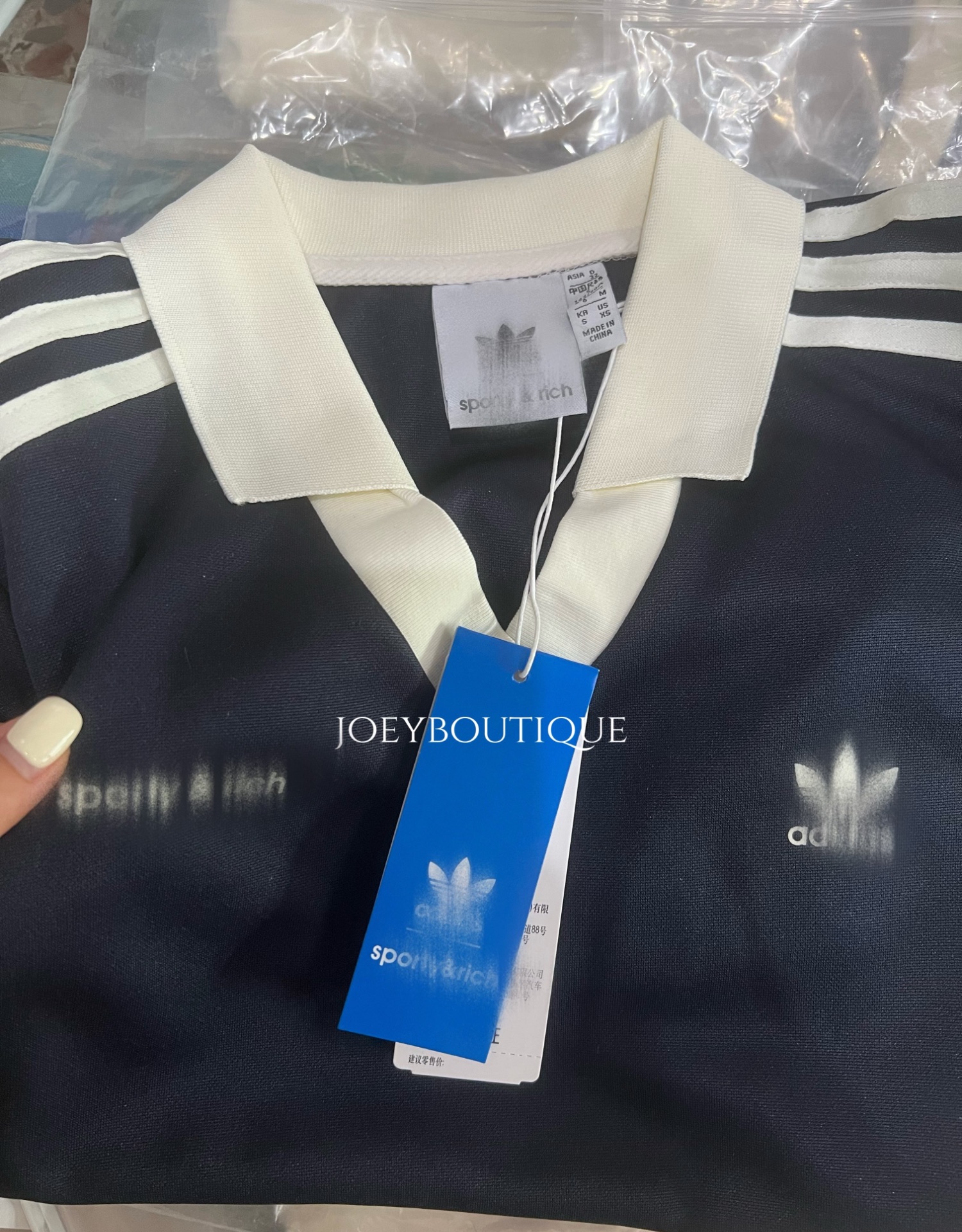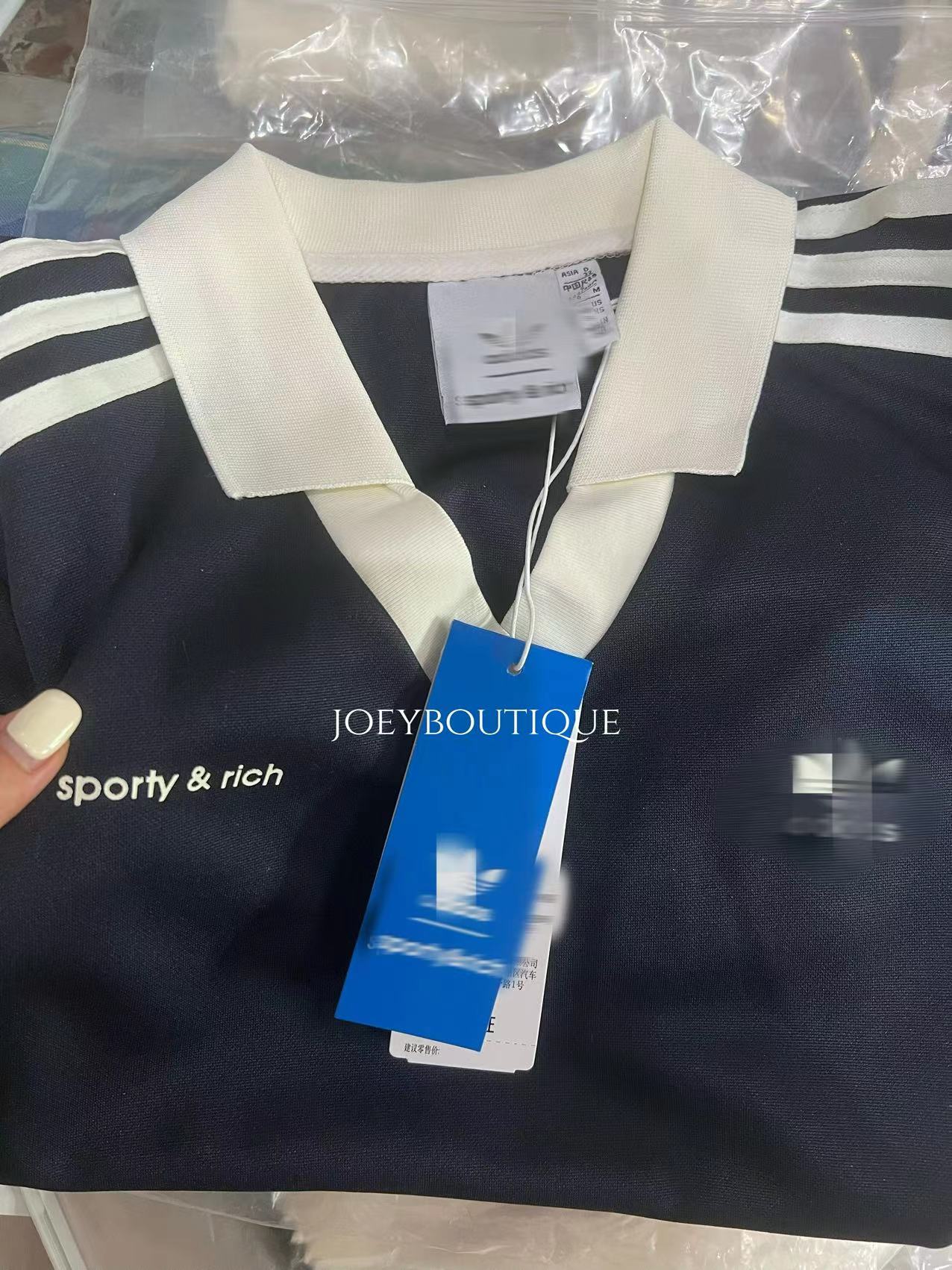 韓國fever同款阿迪SPORTY&RICH復古立領條紋polo長袖 美高女孩