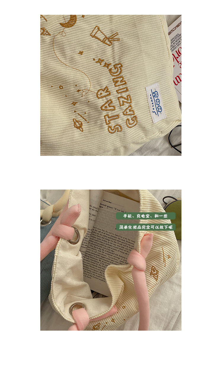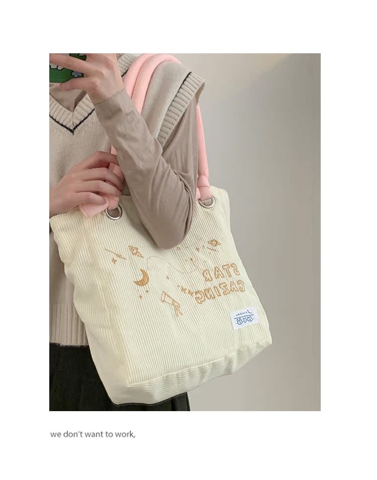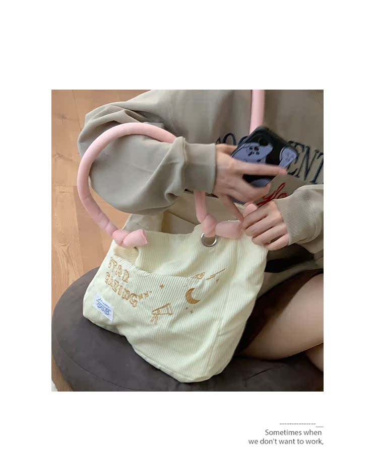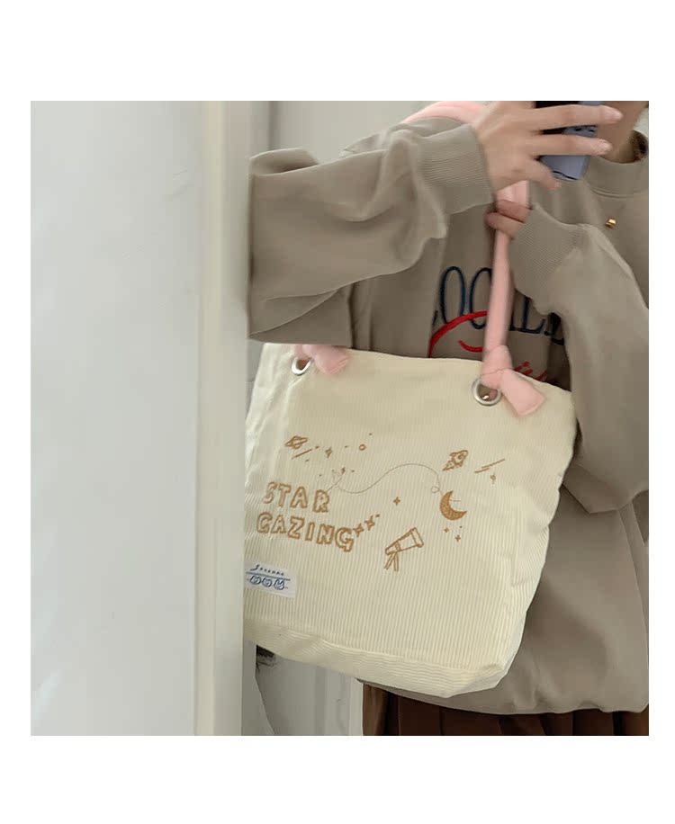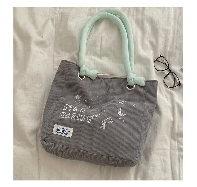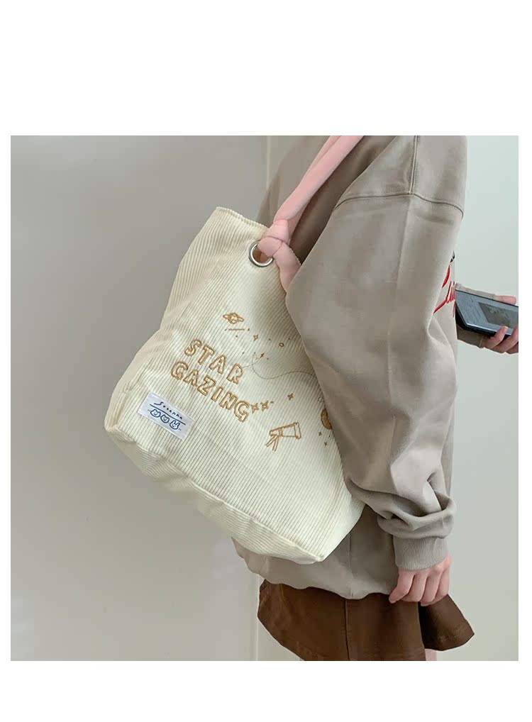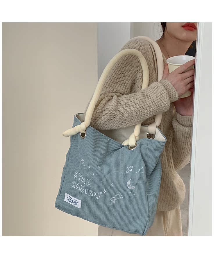 大學生上課包包女2022新款秋冬可愛大容量單肩包燈芯絨通勤託特包