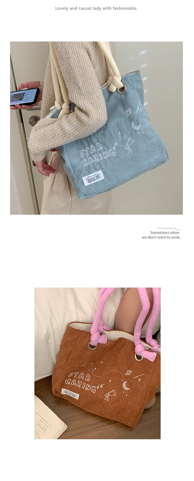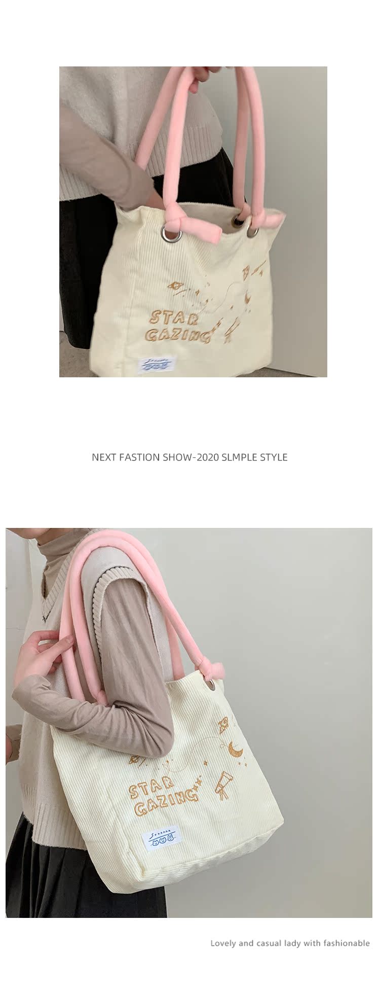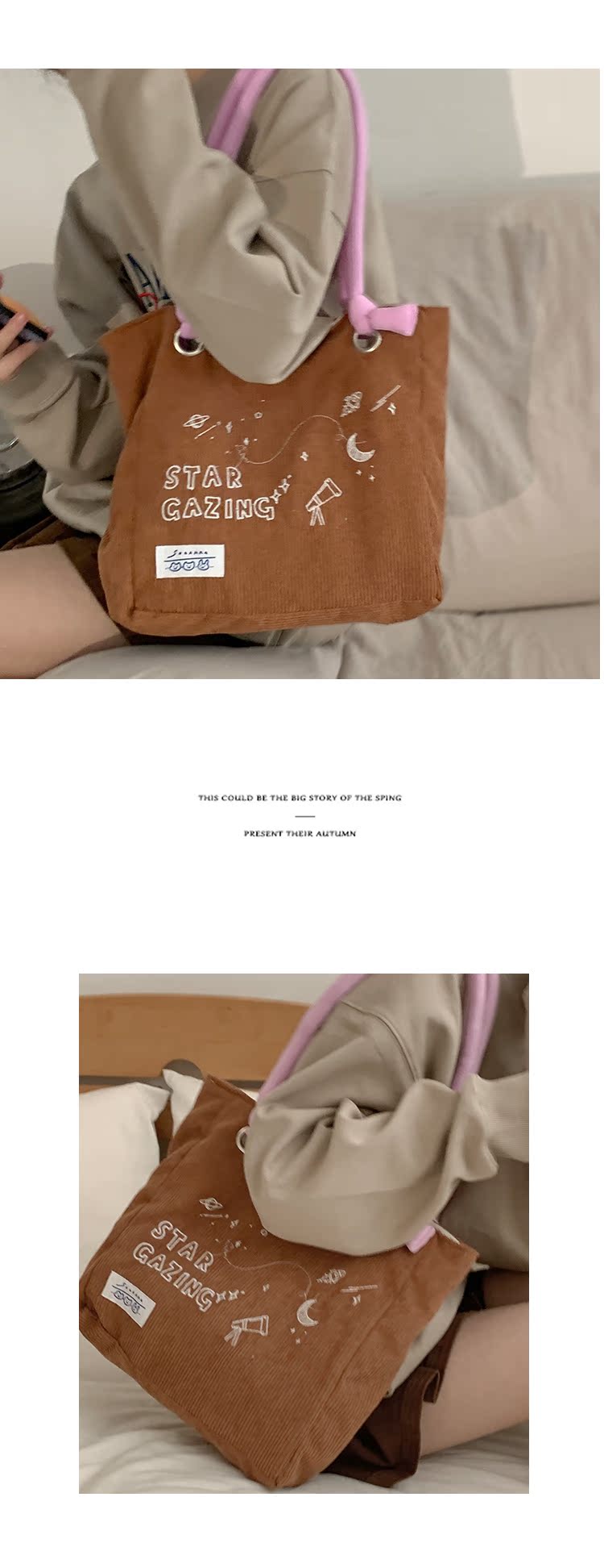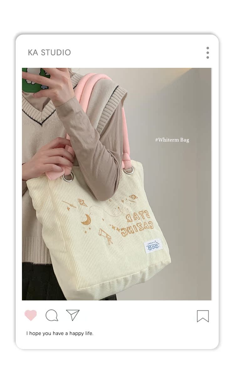 大學生上課包包女2022新款秋冬可愛大容量單肩包燈芯絨通勤託特包