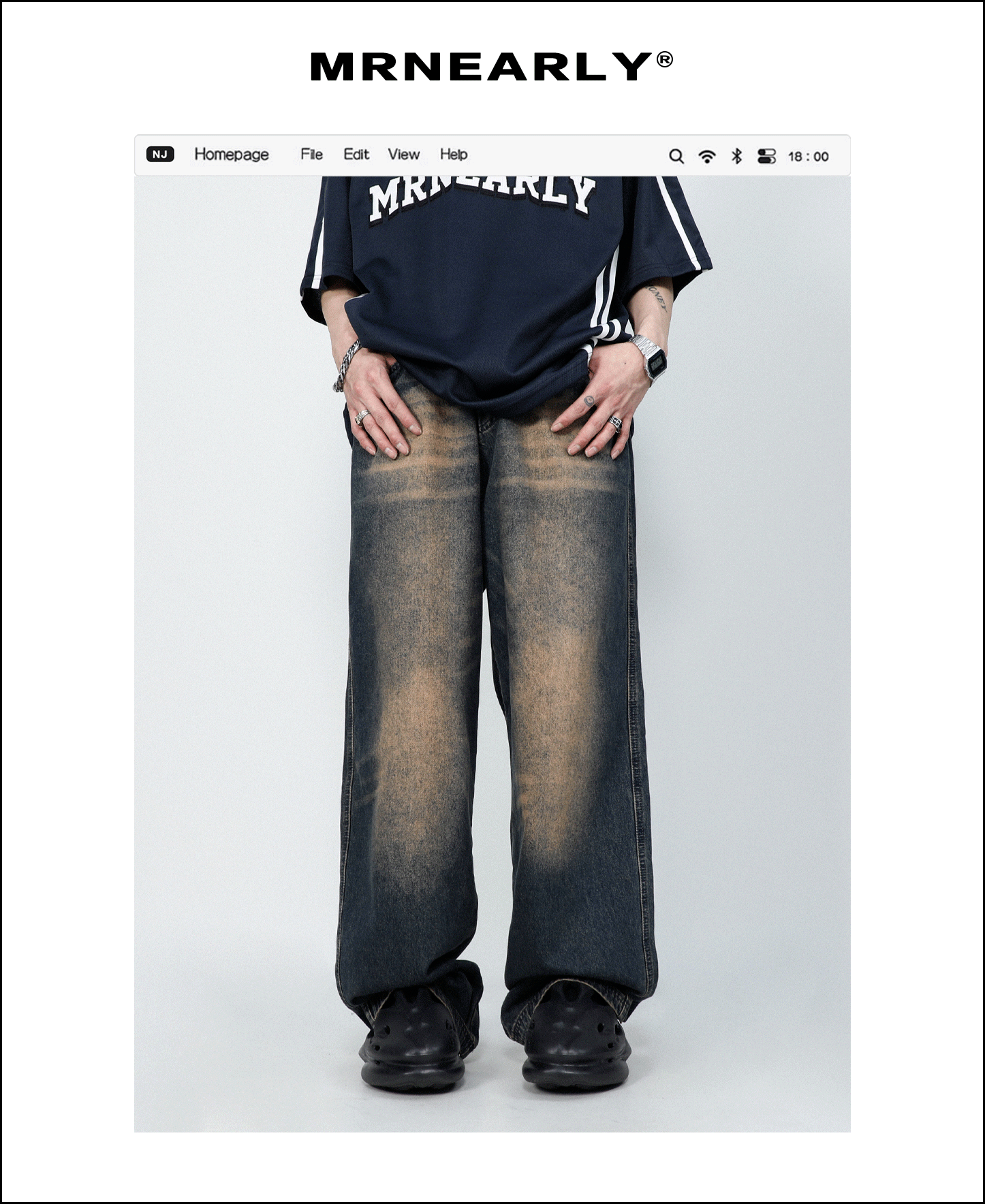 MRNEARLY 美式高級感直筒休閒牛仔褲男高街ins潮牌水洗復古長褲子