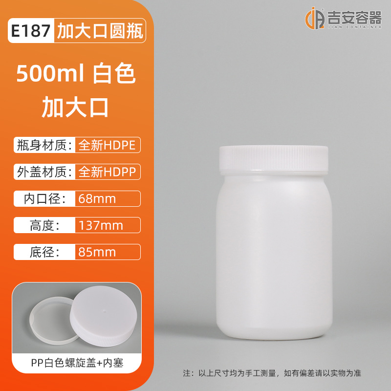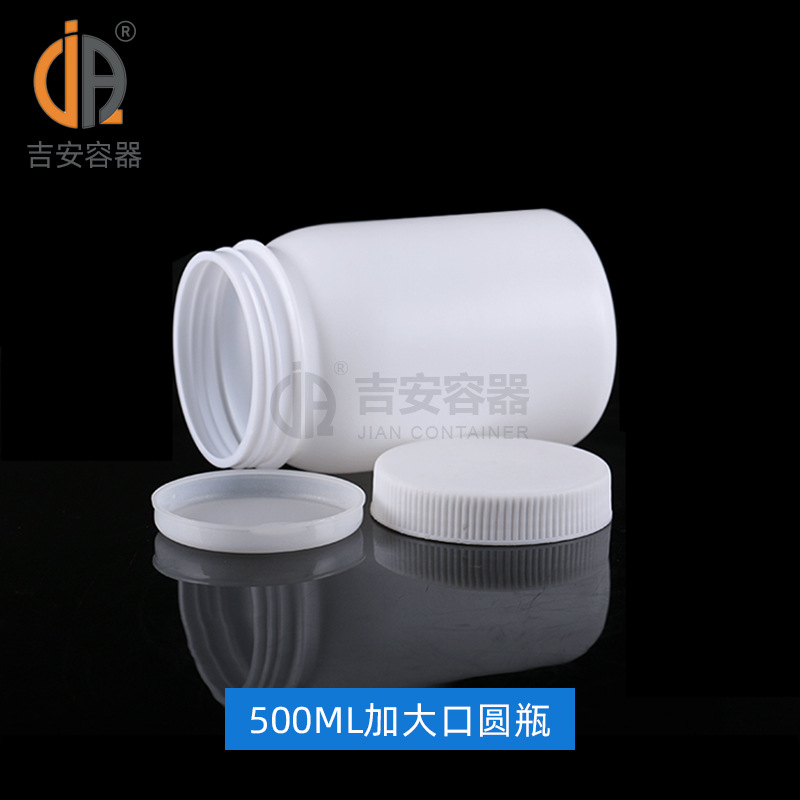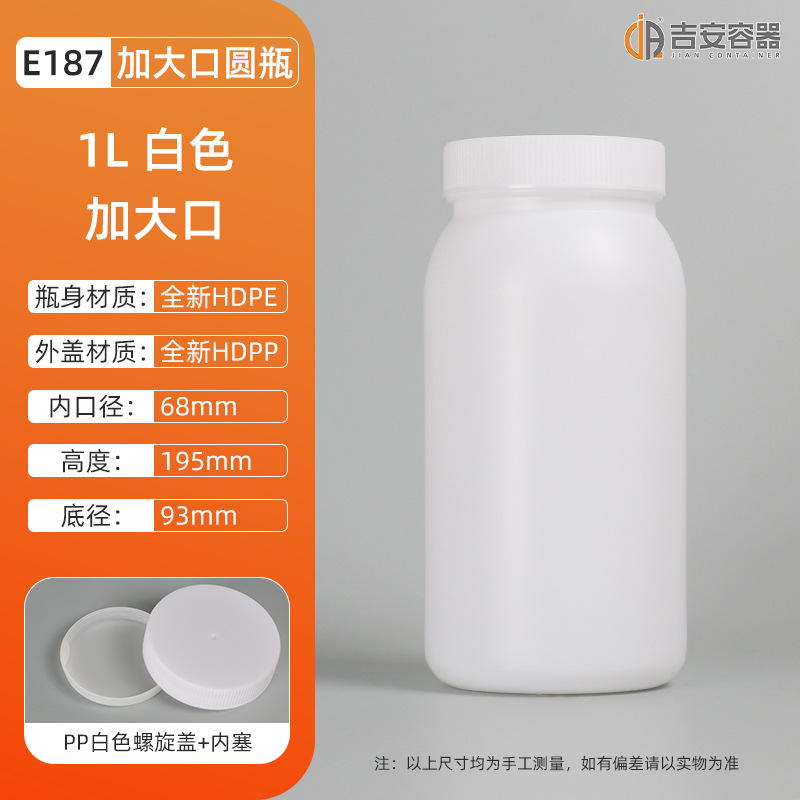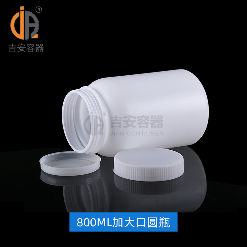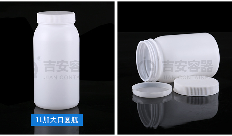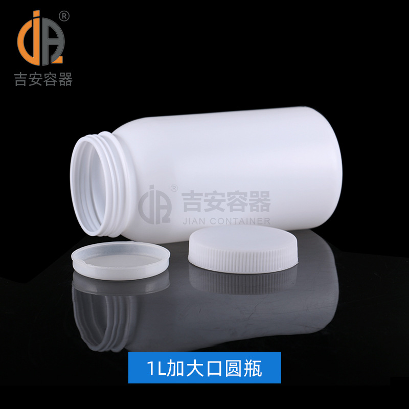 现货批发500/800ML 1L加大口塑料圆瓶化工液体瓶粉剂胶囊瓶内外盖