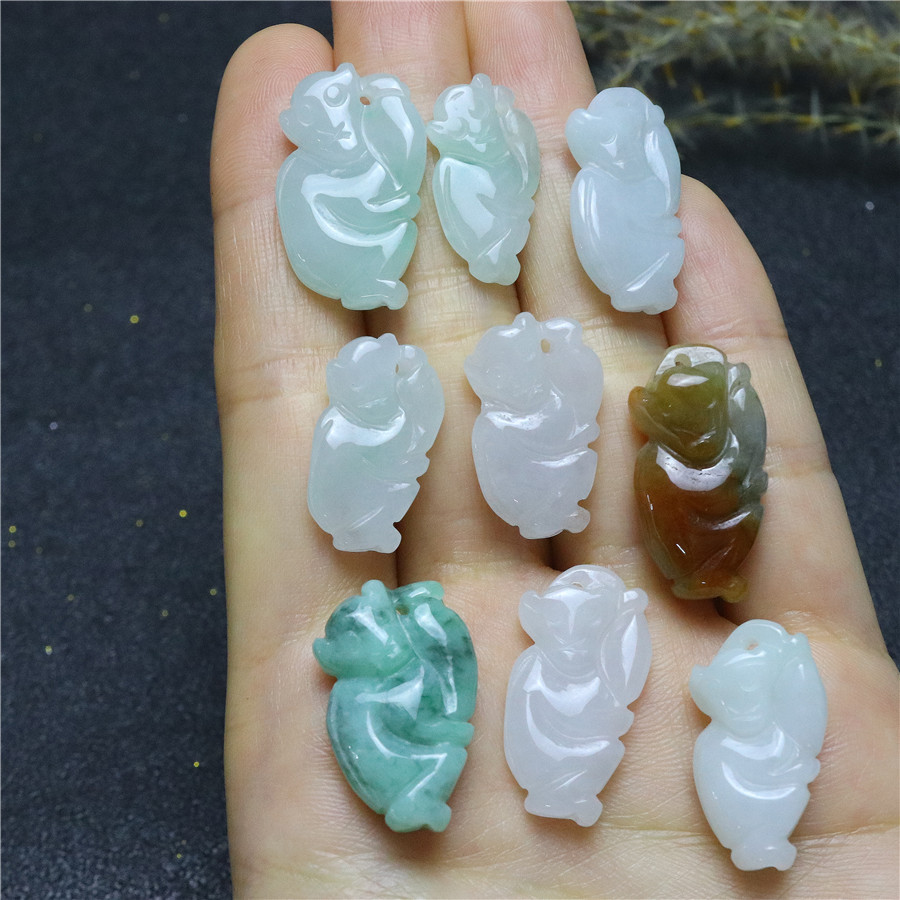 缅甸a货三彩生肖猴子天然翡翠吊坠项链配件DIY批发零售