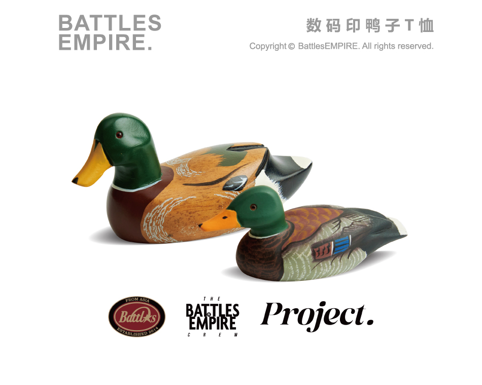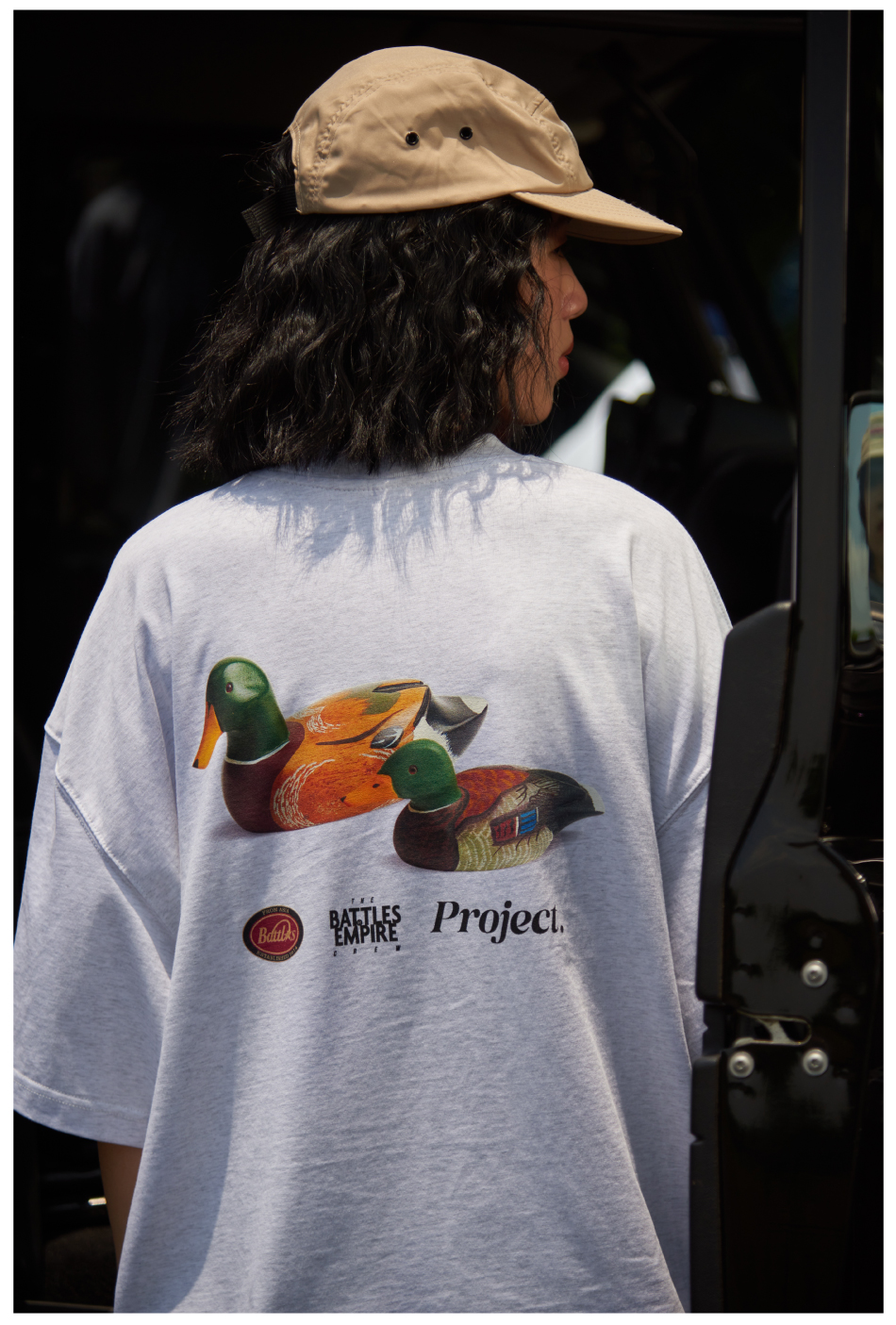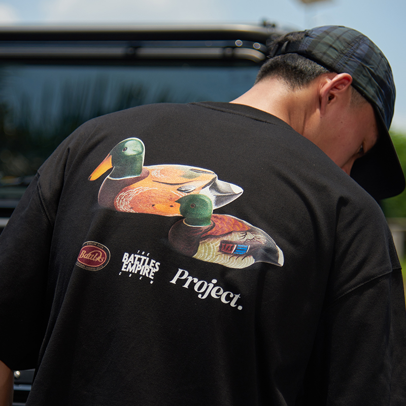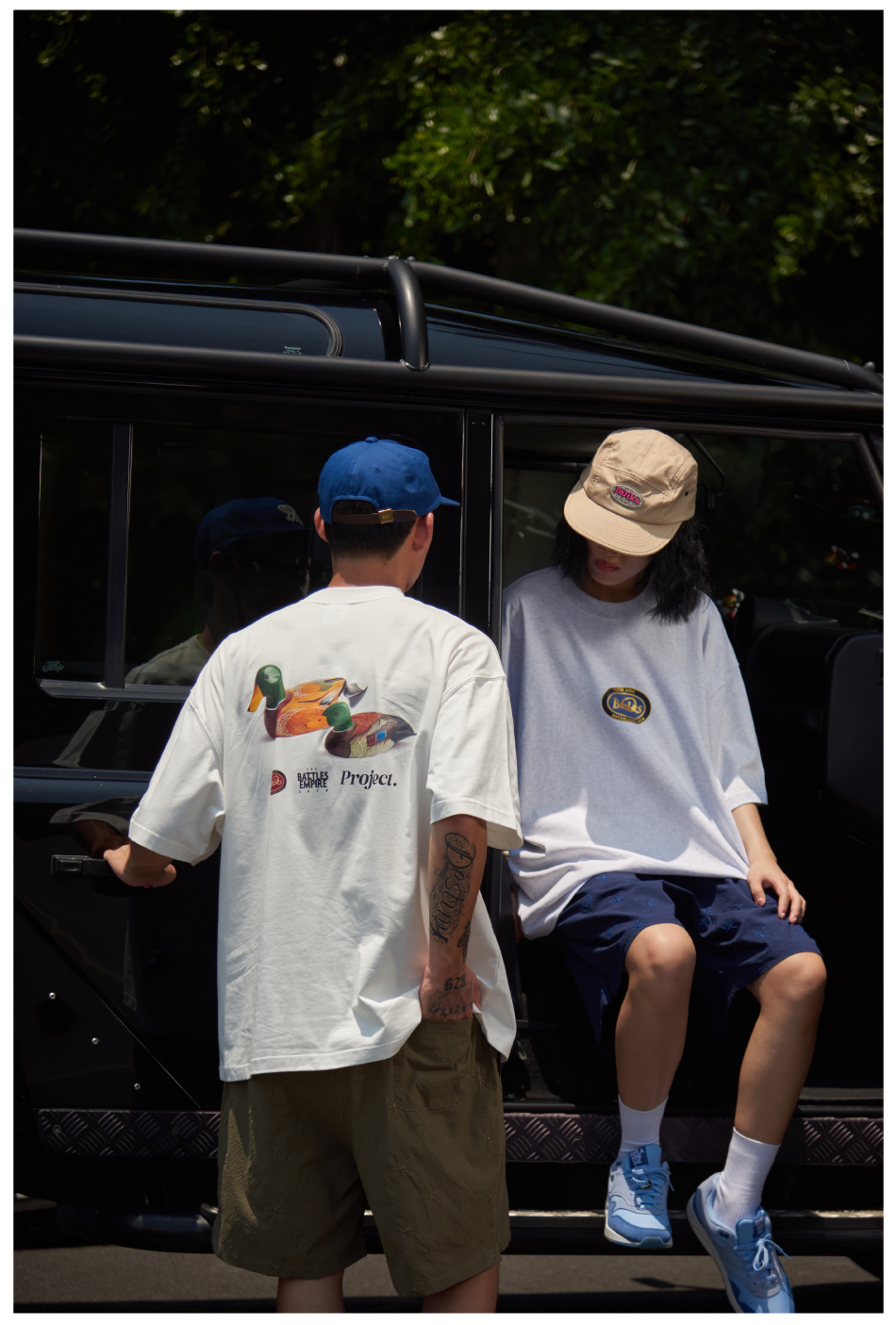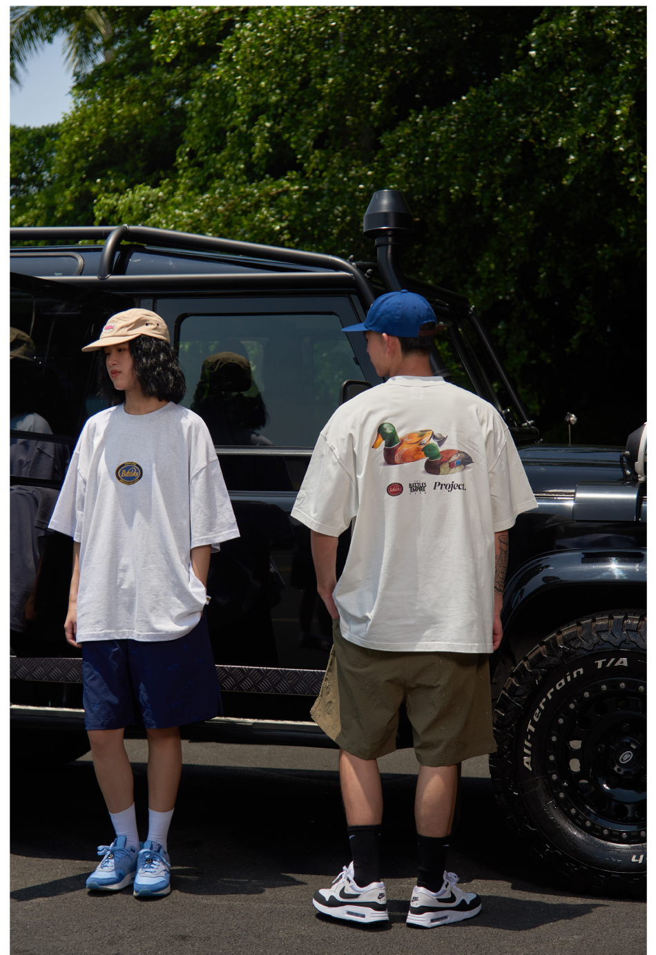 Battles 夏季木雕鴨子數碼印花純棉雙紗美式短袖T恤休閒寬鬆