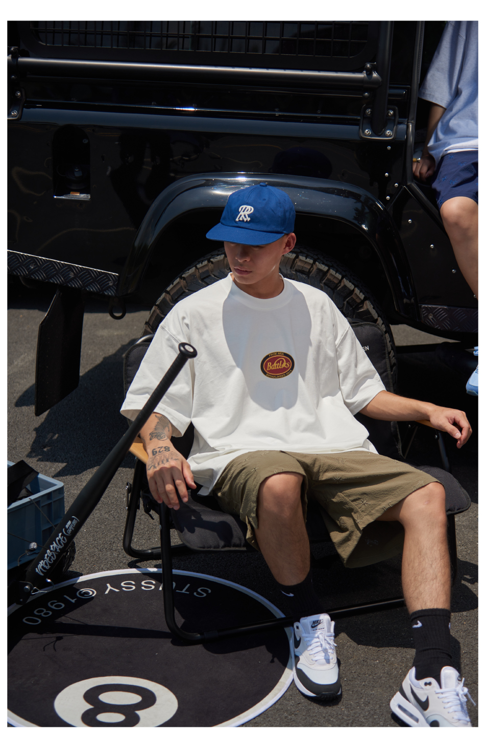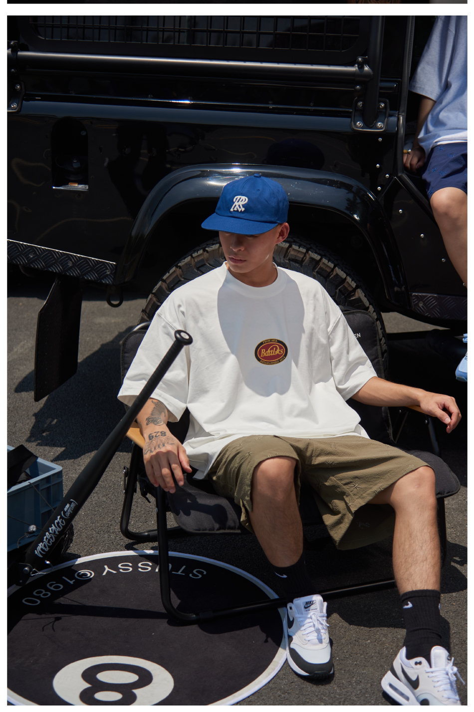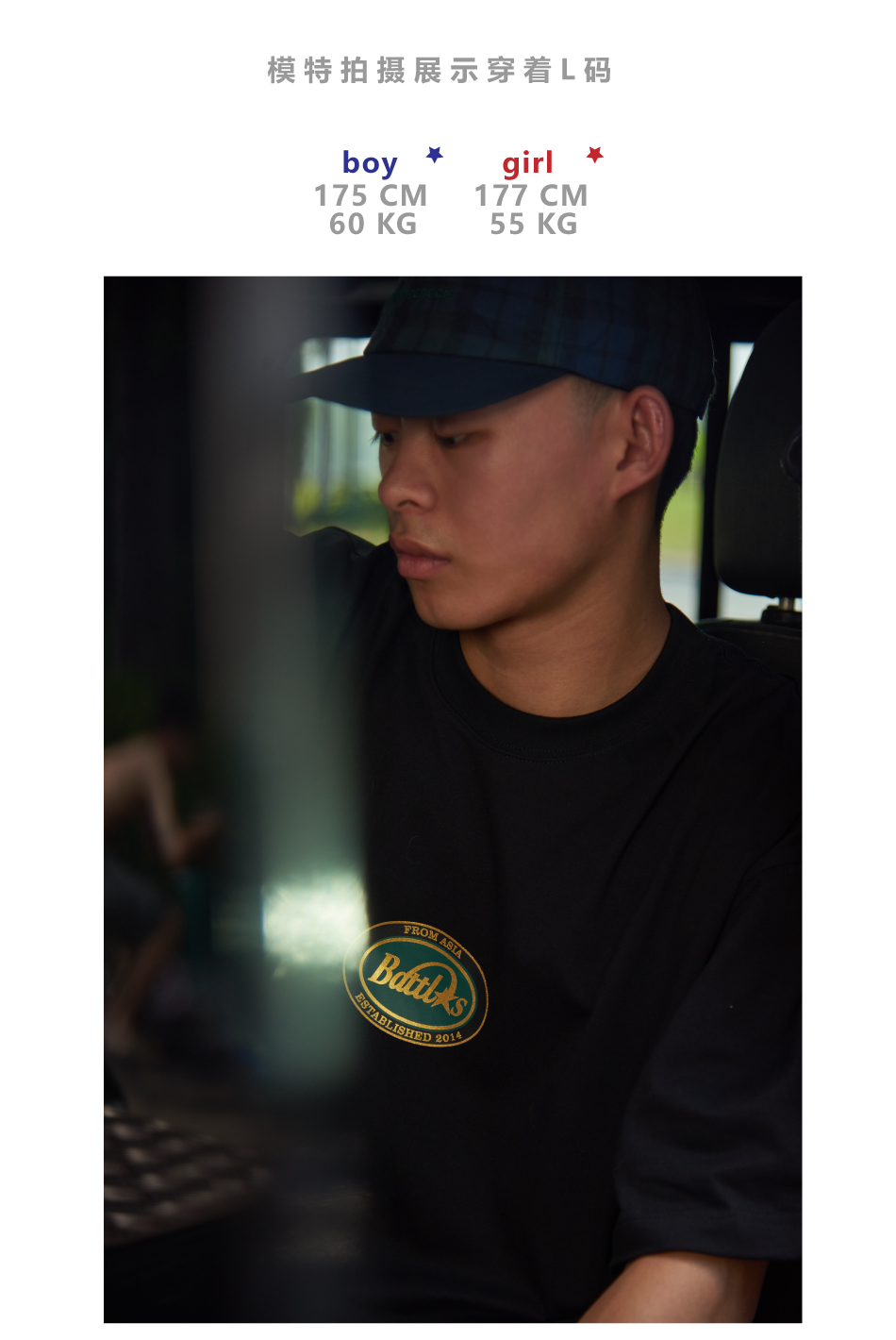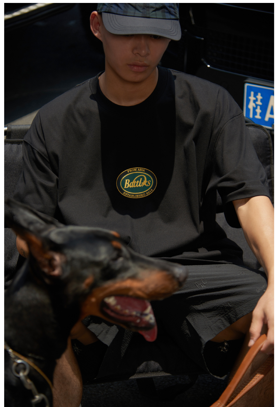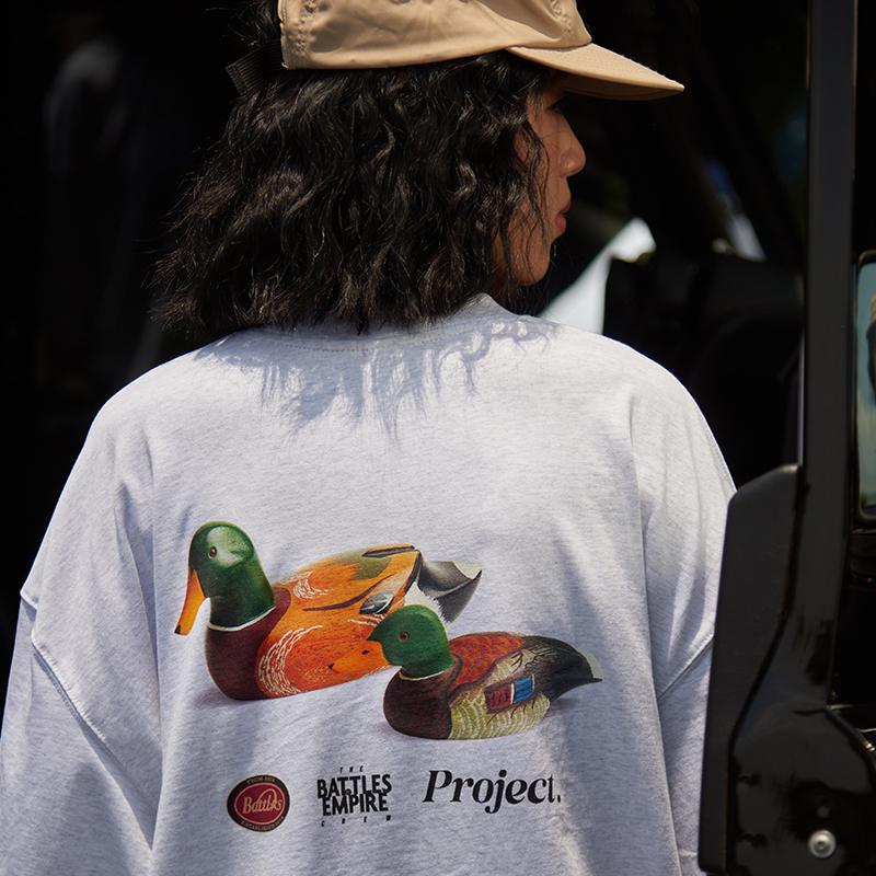 Battles 夏季木雕鴨子數碼印花純棉雙紗美式短袖T恤休閒寬鬆
