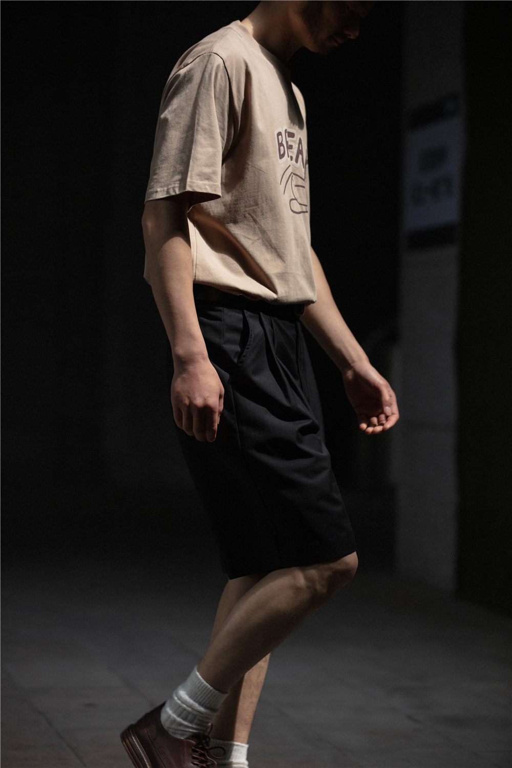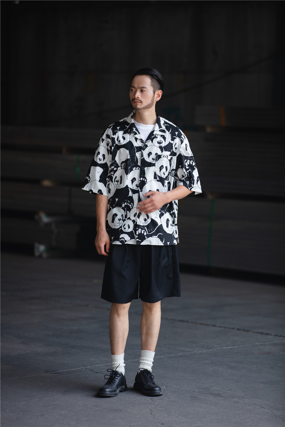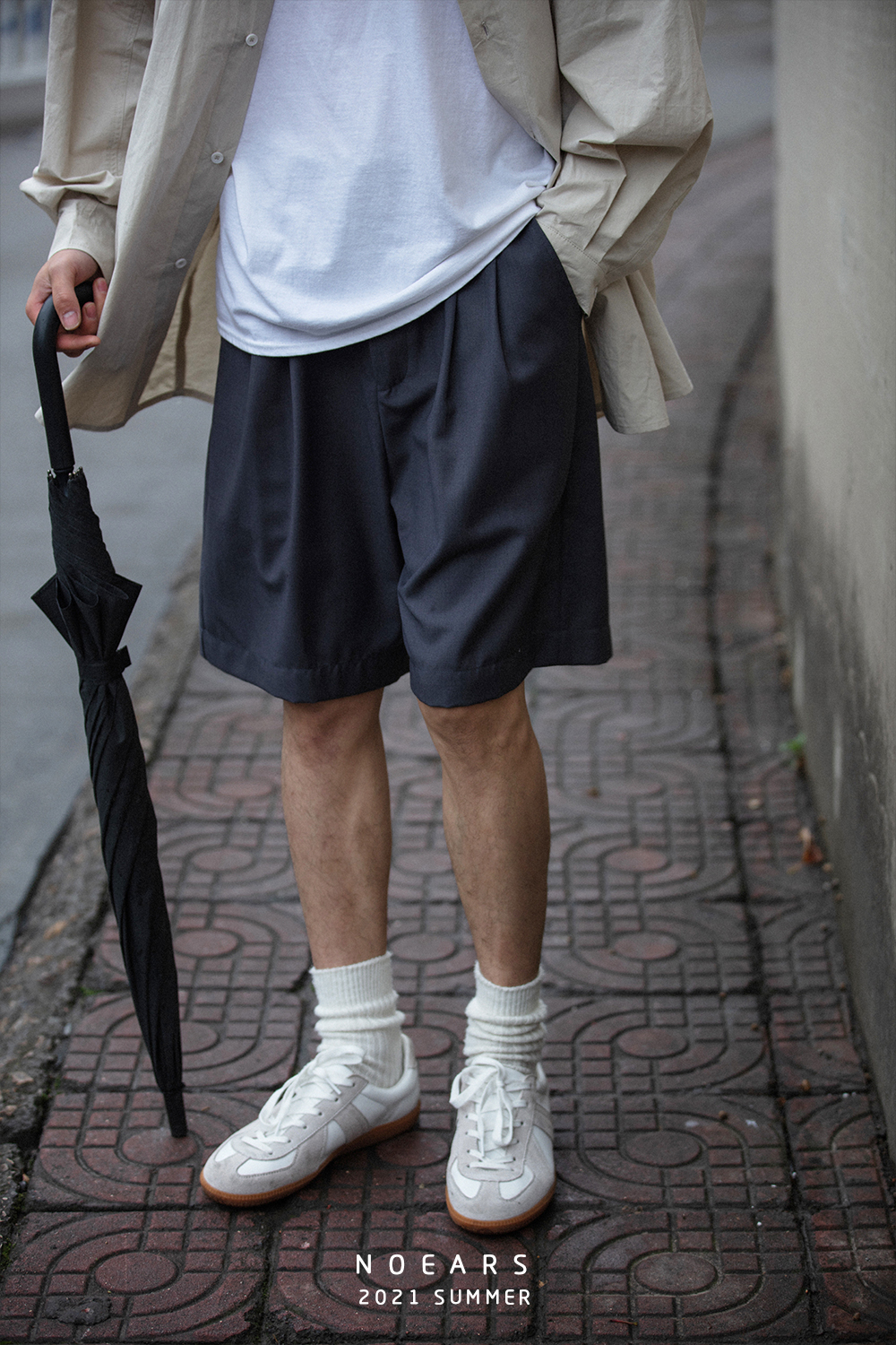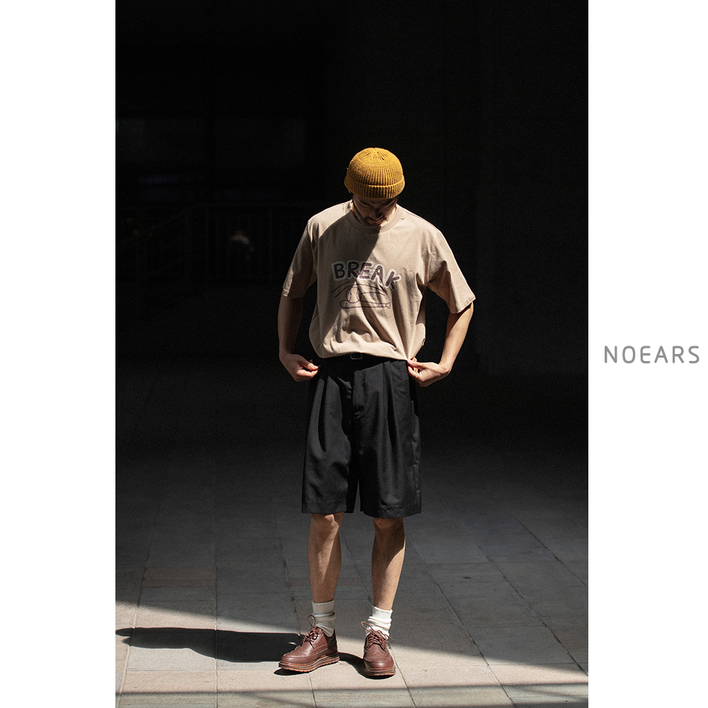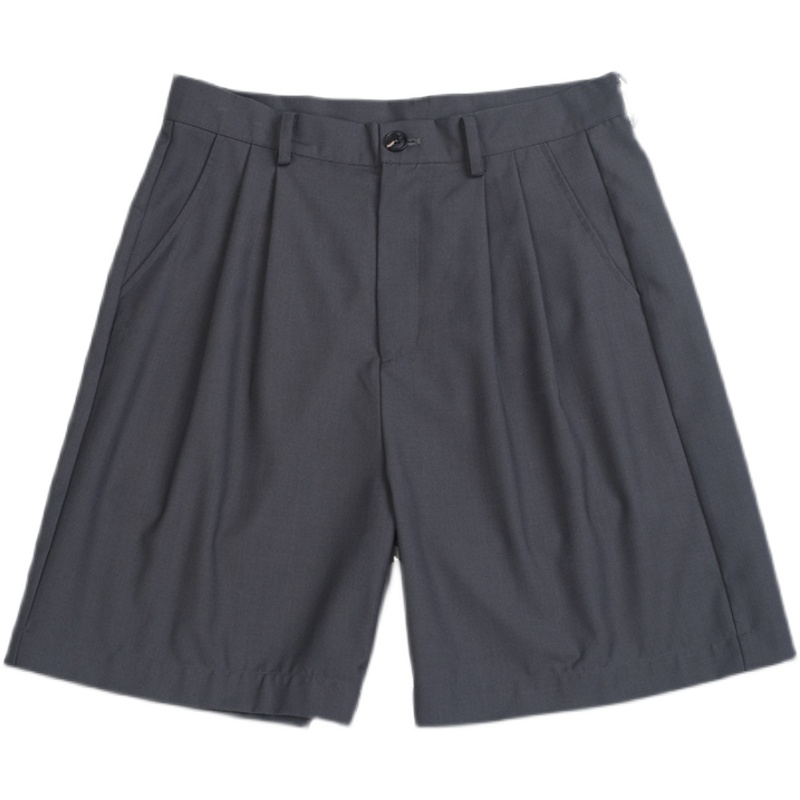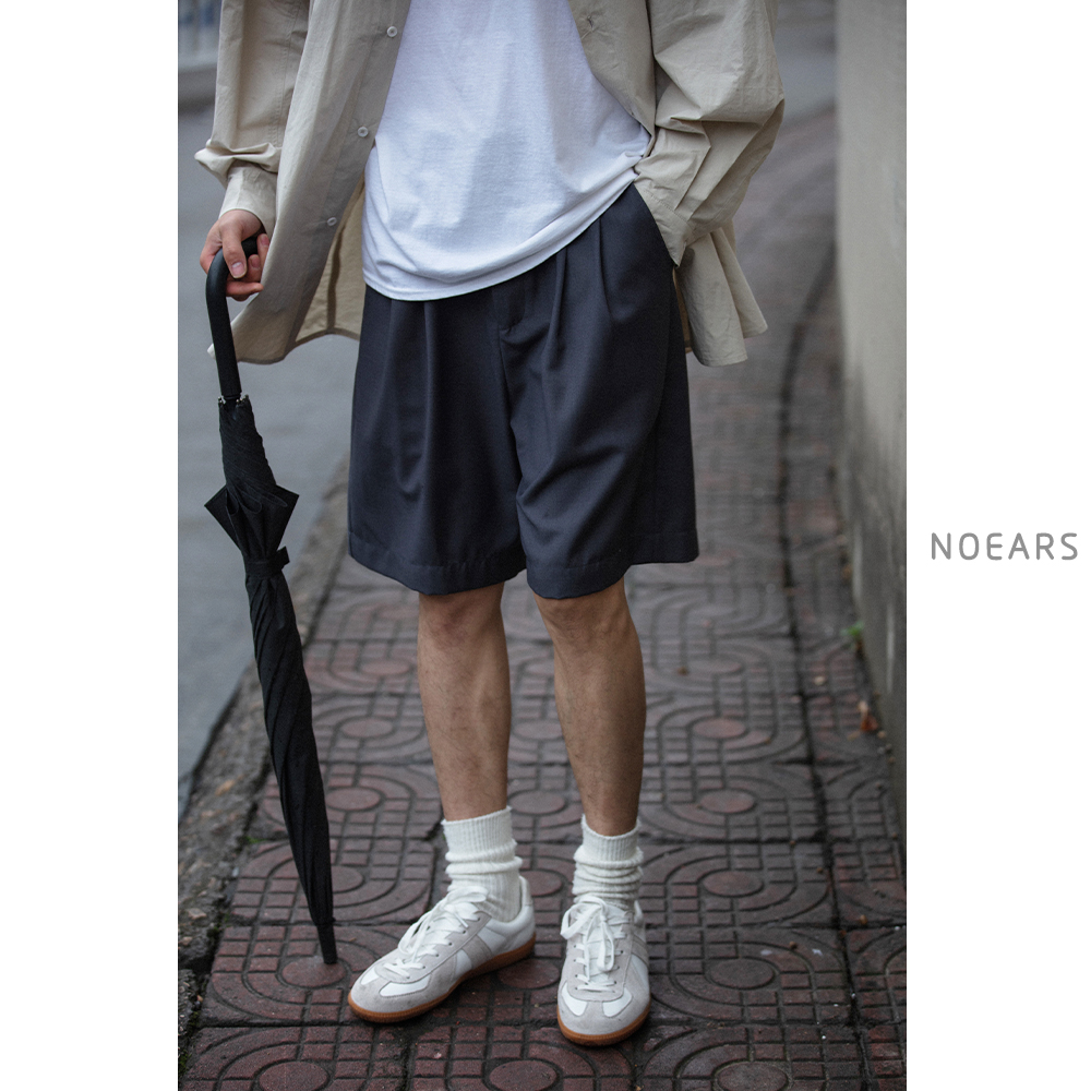NOEARS通勤黑灰色垂感寬鬆西裝短褲男日系cityboy工裝五分休閒褲