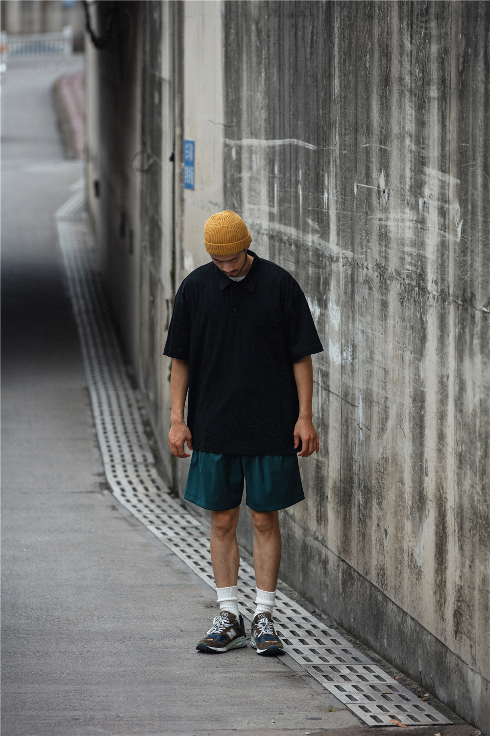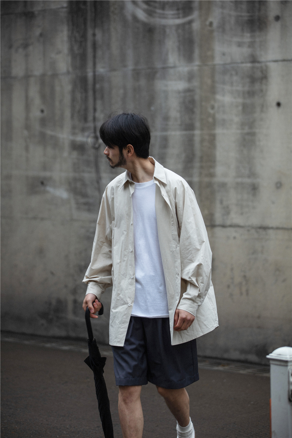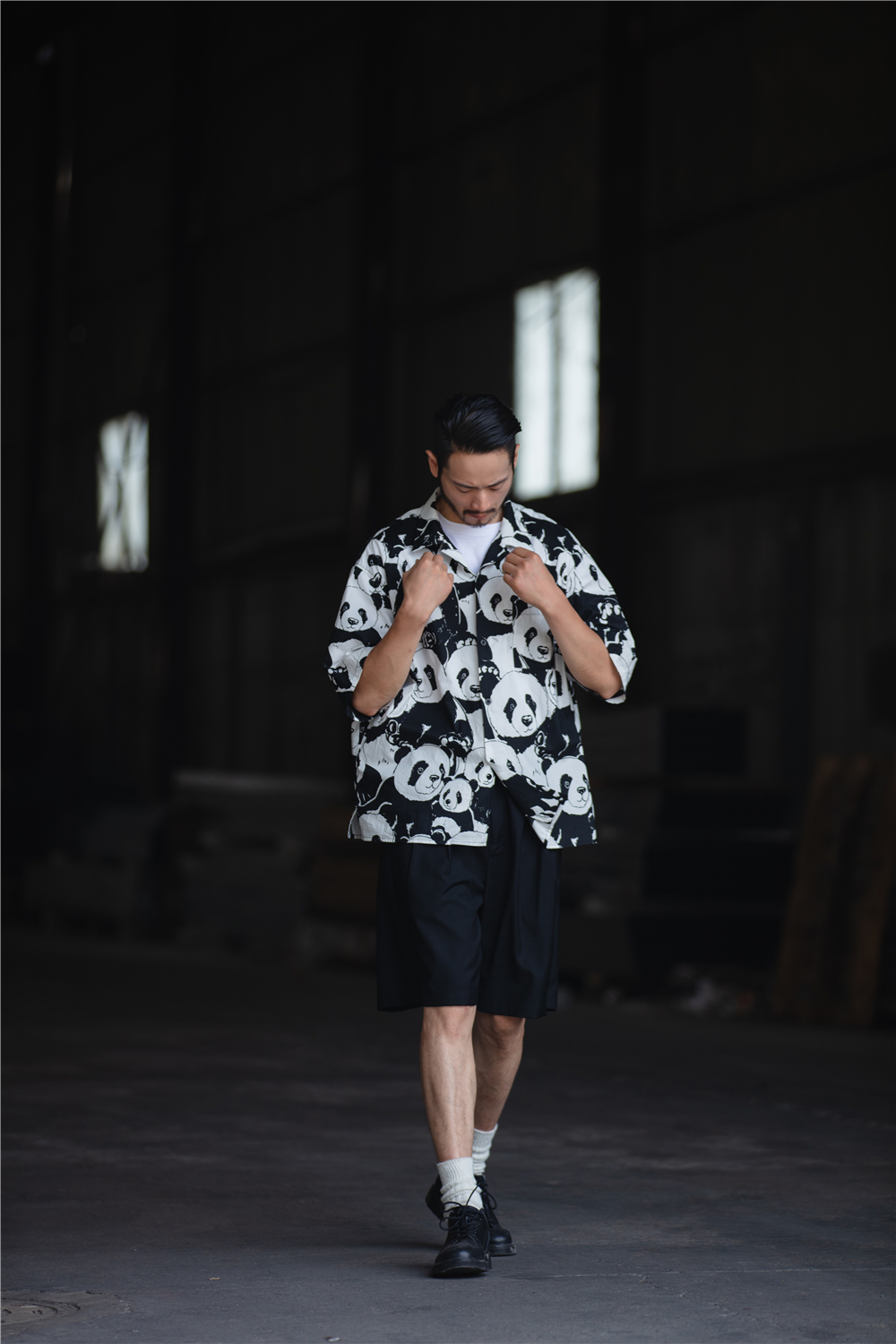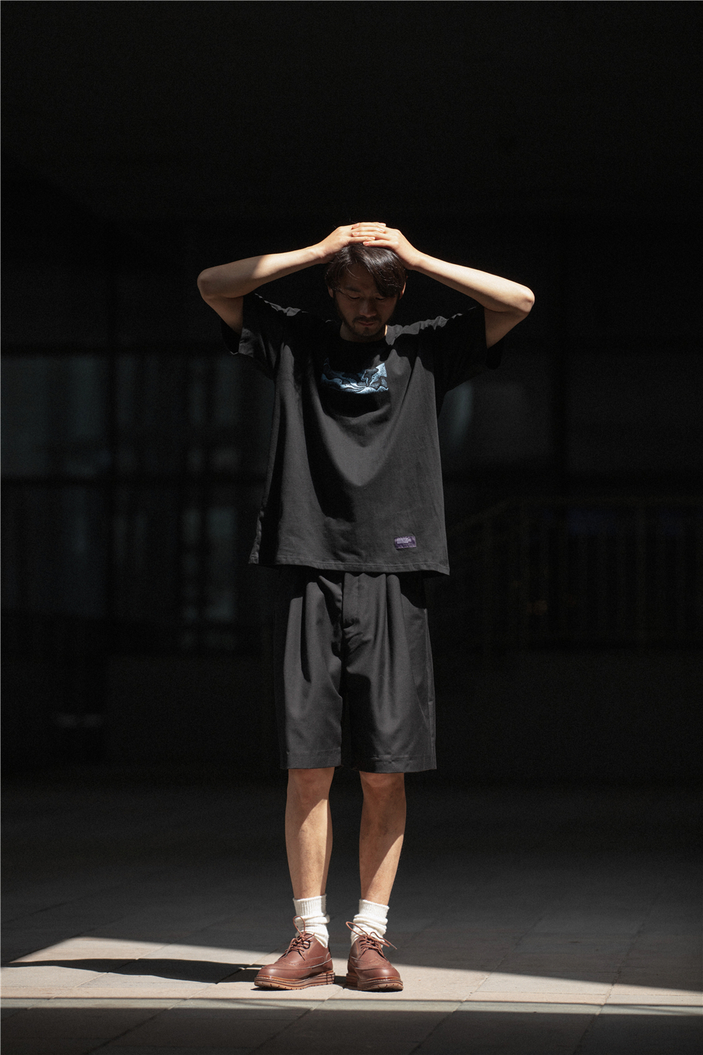 NOEARS通勤黑灰色垂感寬鬆西裝短褲男日系cityboy工裝五分休閒褲
