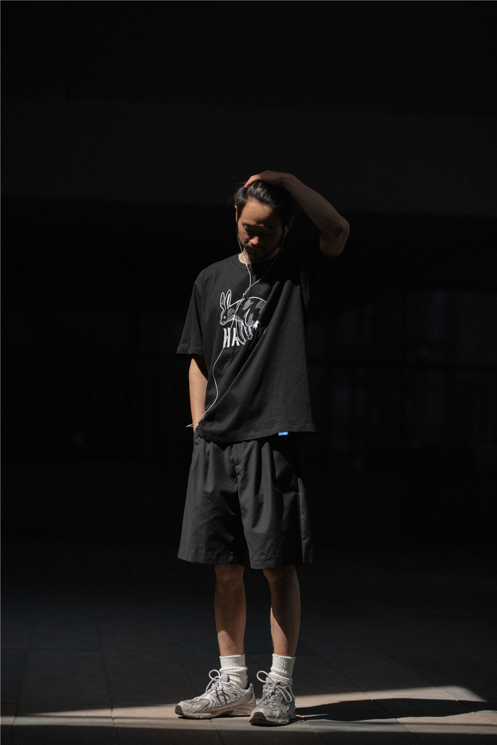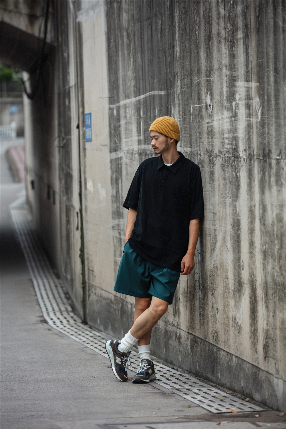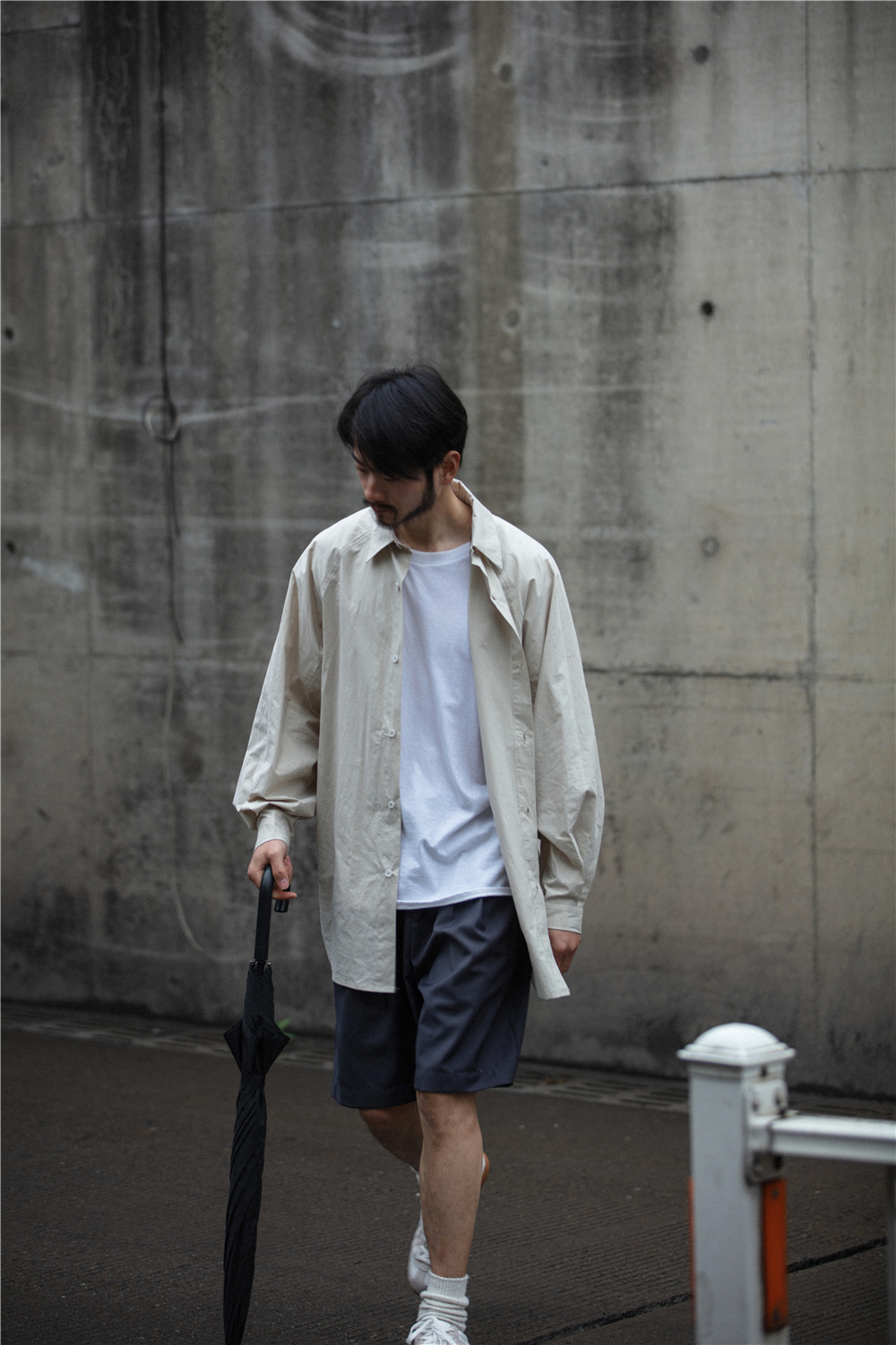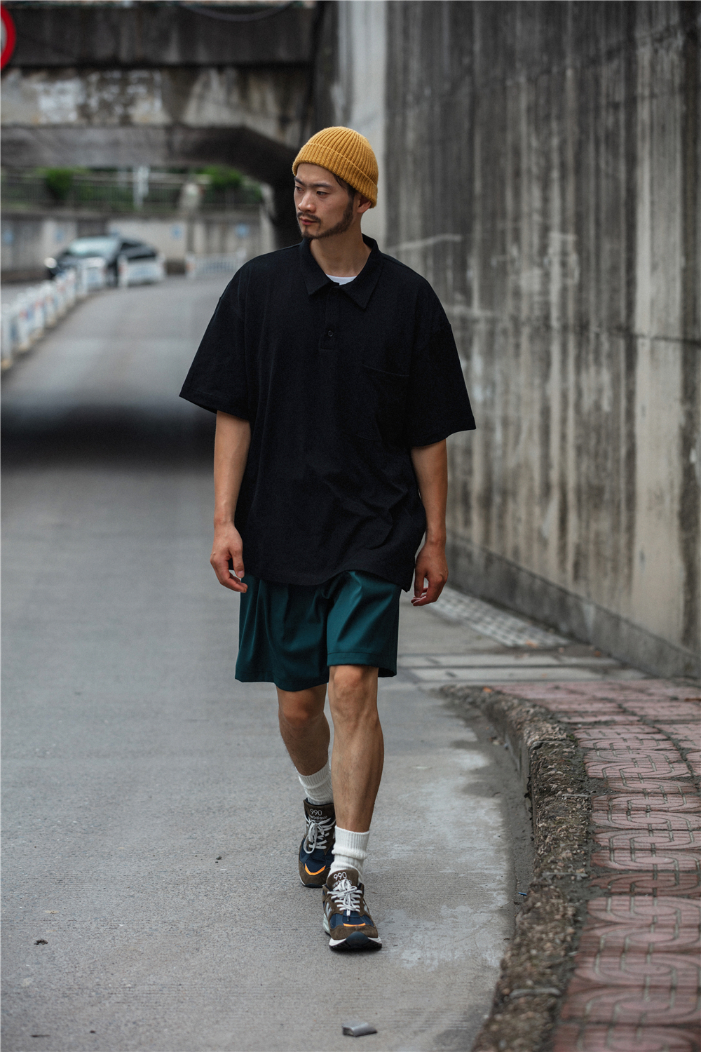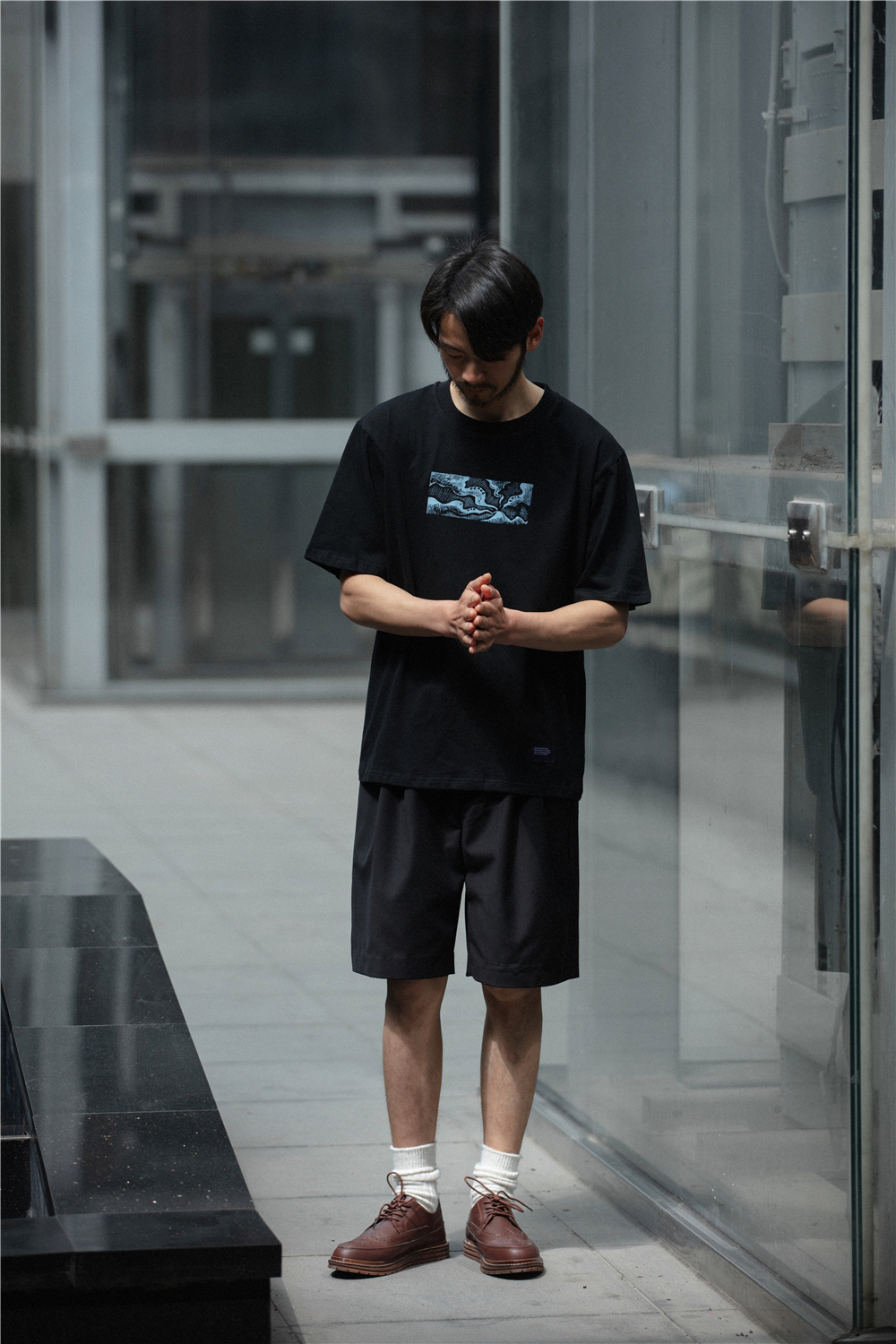 NOEARS通勤黑灰色垂感寬鬆西裝短褲男日系cityboy工裝五分休閒褲