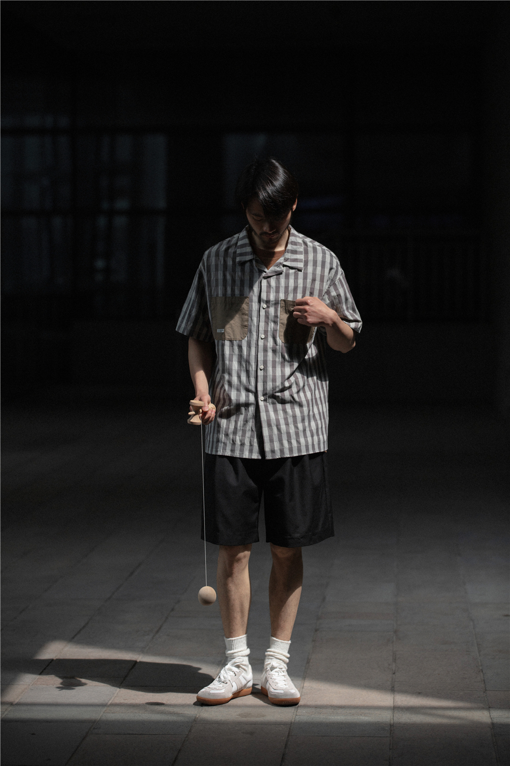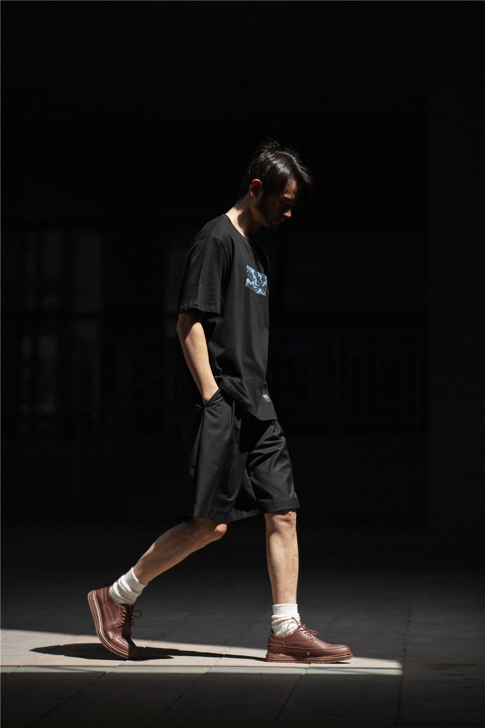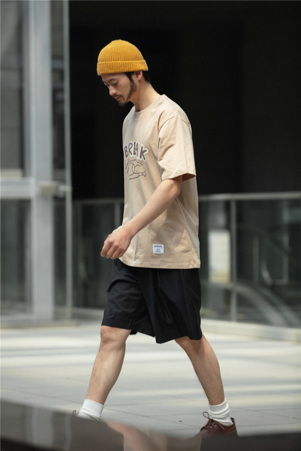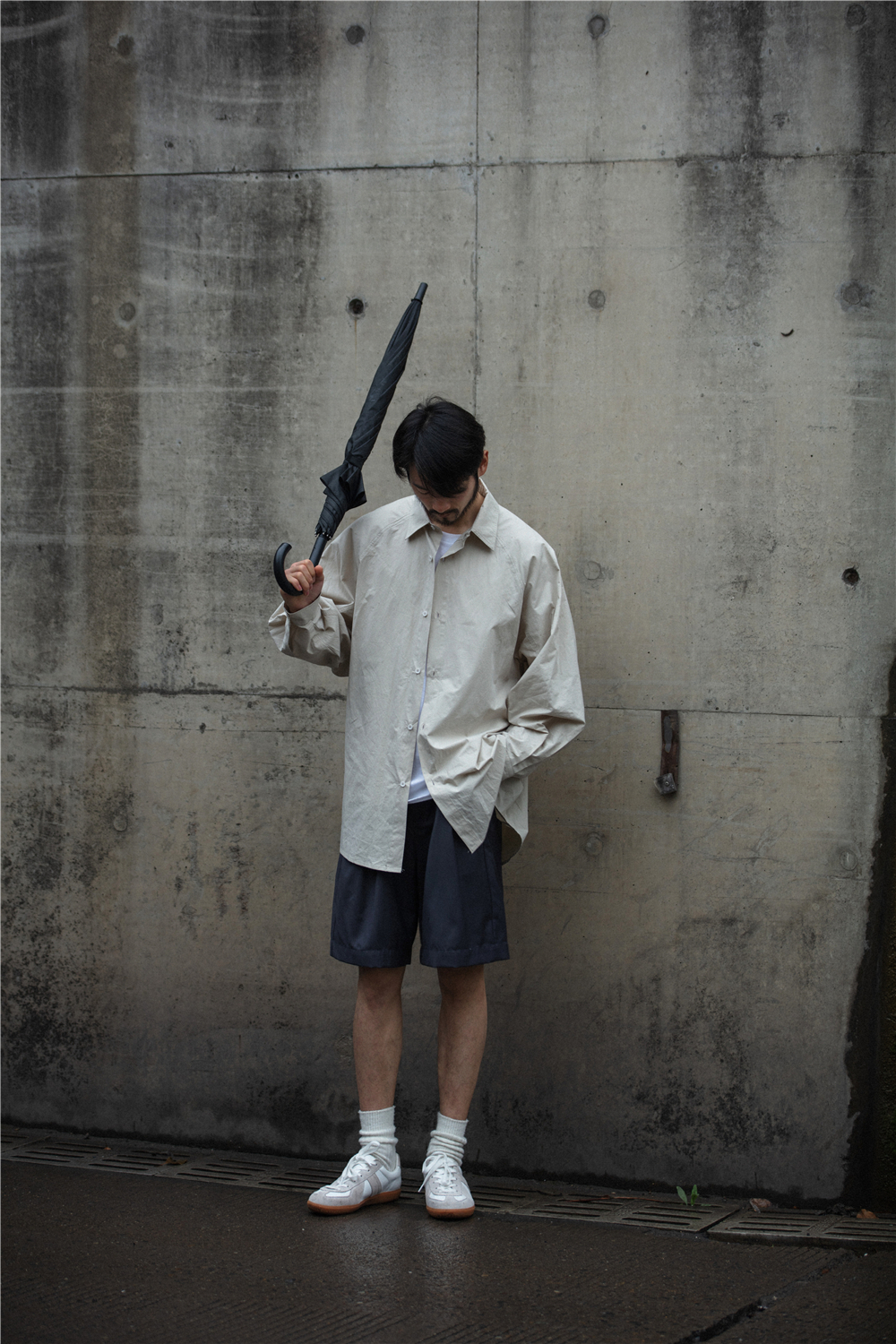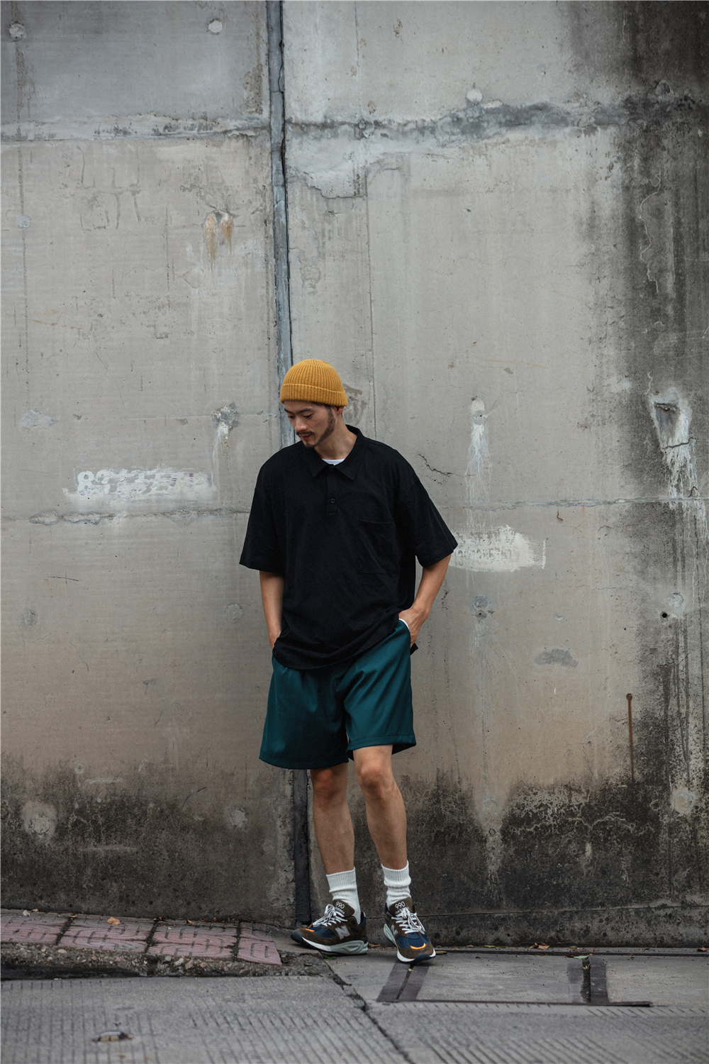 NOEARS通勤黑灰色垂感寬鬆西裝短褲男日系cityboy工裝五分休閒褲
