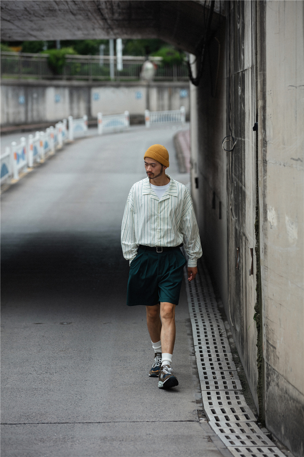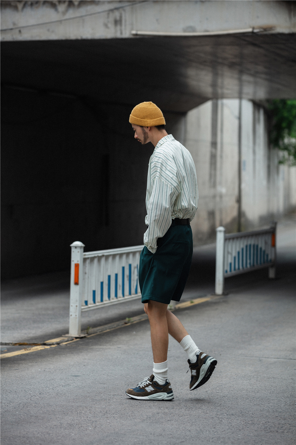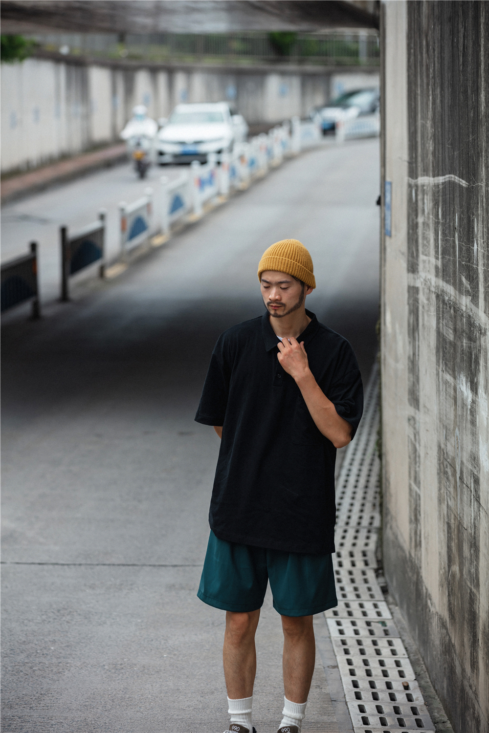 长度方面调试了好几次,基本上属于不过膝盖的长度,宽松度是刚刚好微宽松