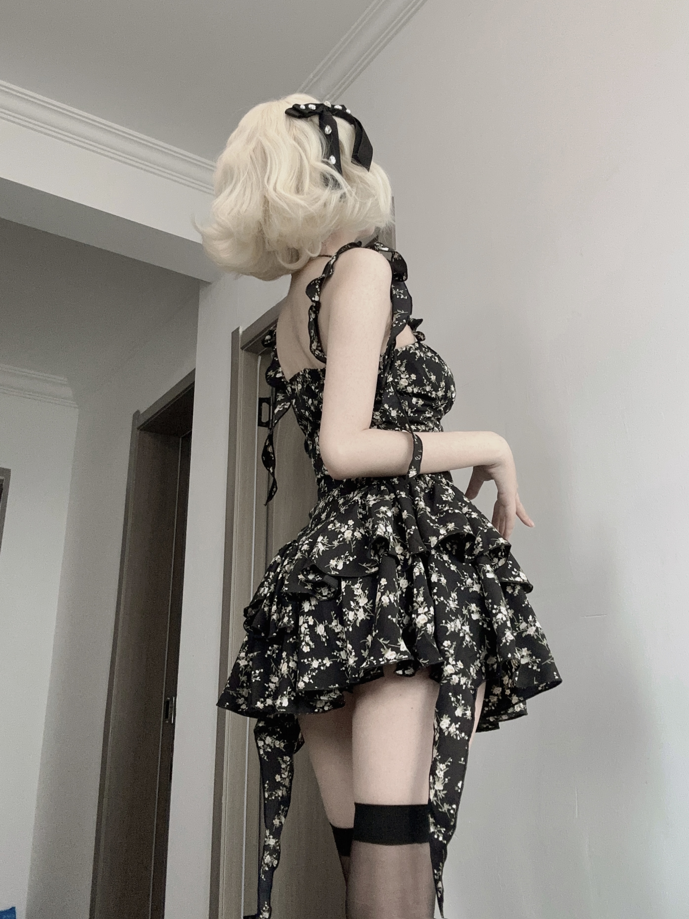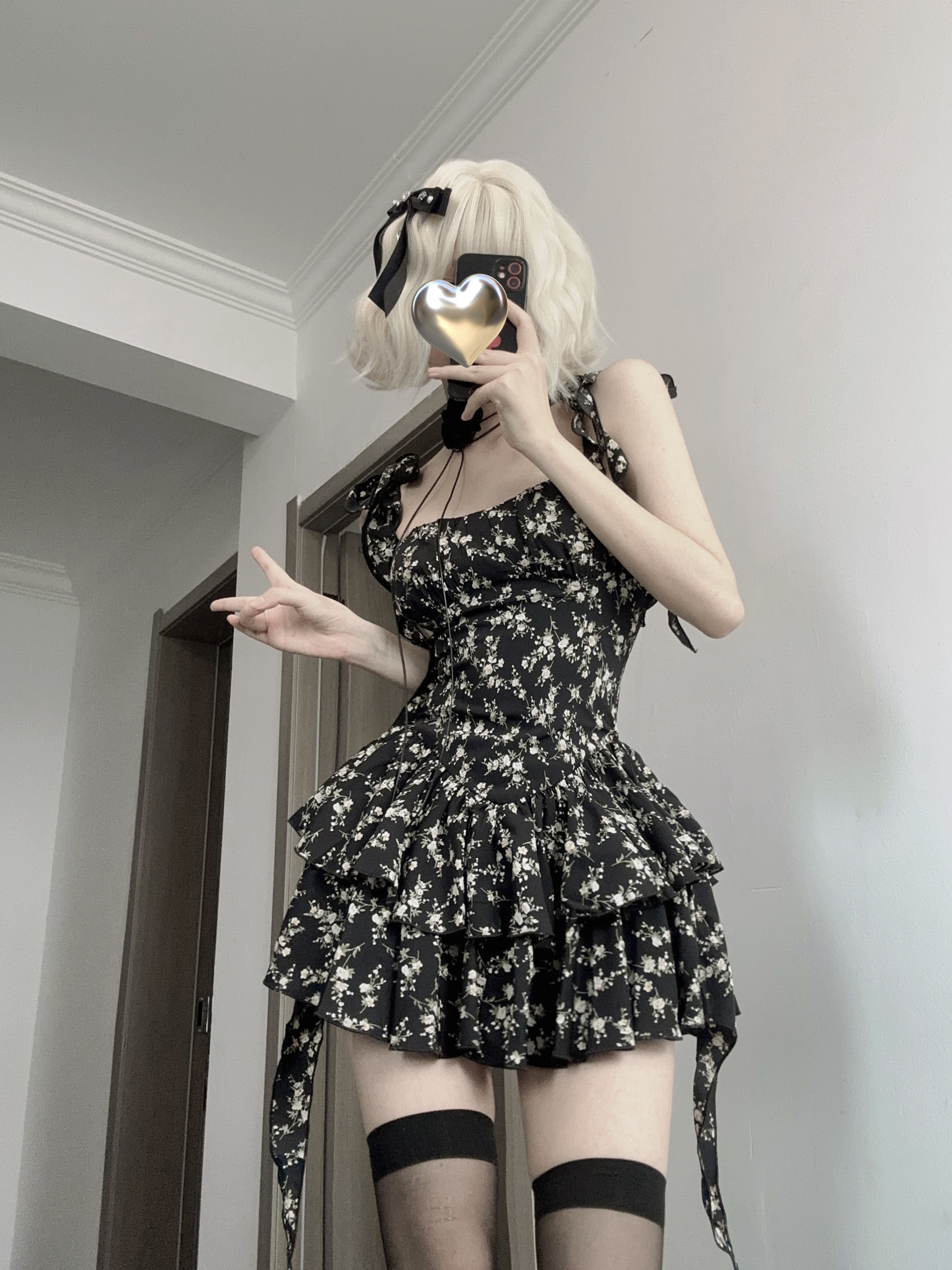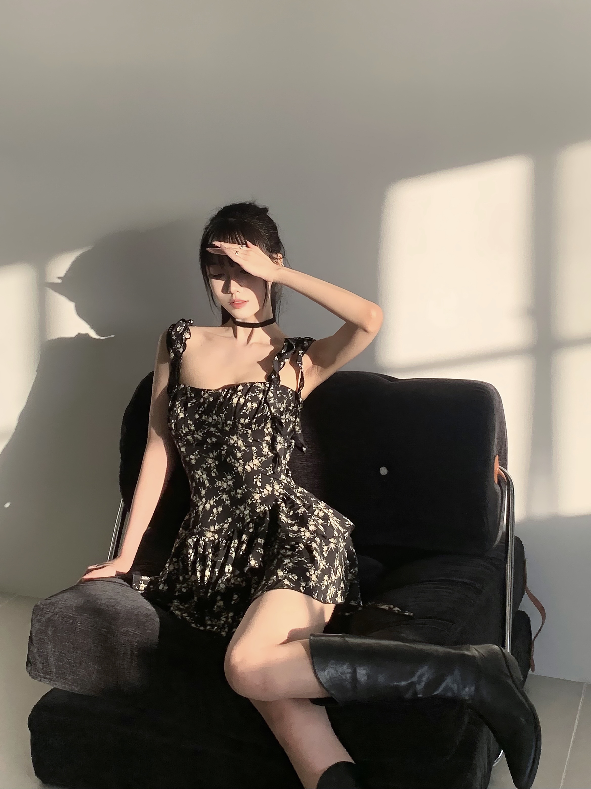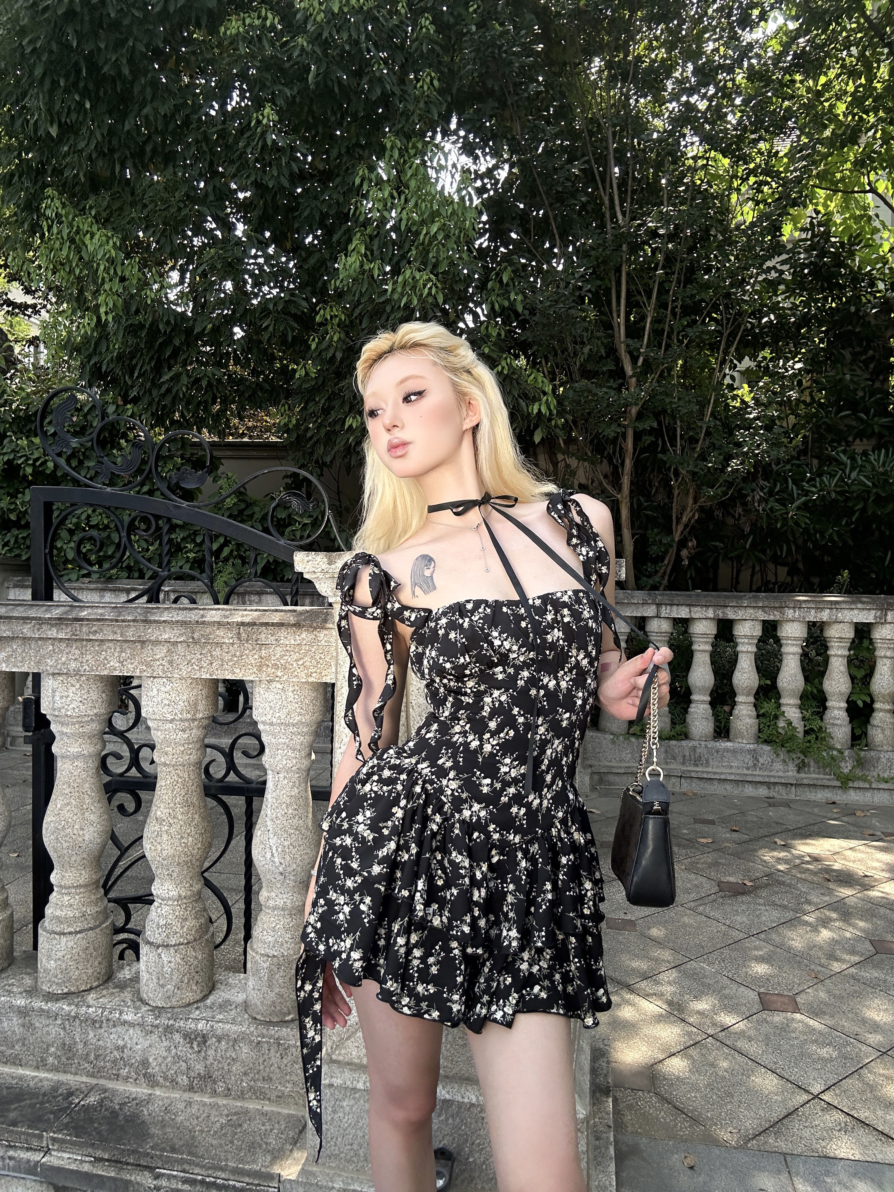 VOCK 茶歇茉莉 法式黑色碎花吊帶裙夏季純欲茶歇裙收腰顯瘦洋裝