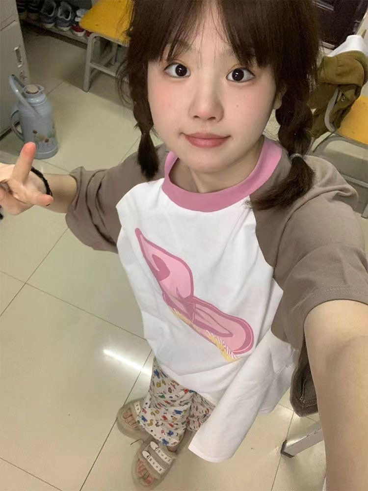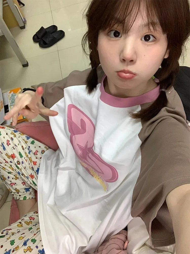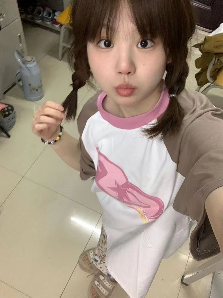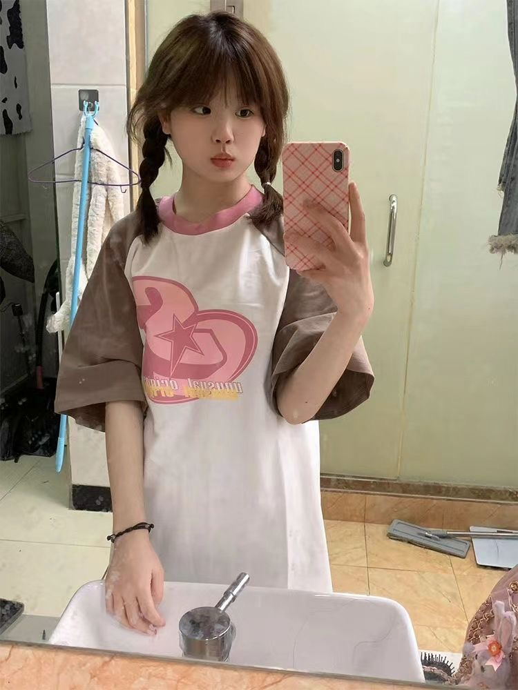 潮牌美式復古慵懶bf高街短袖t恤女夏季設計感寬鬆百搭插肩上衣ins