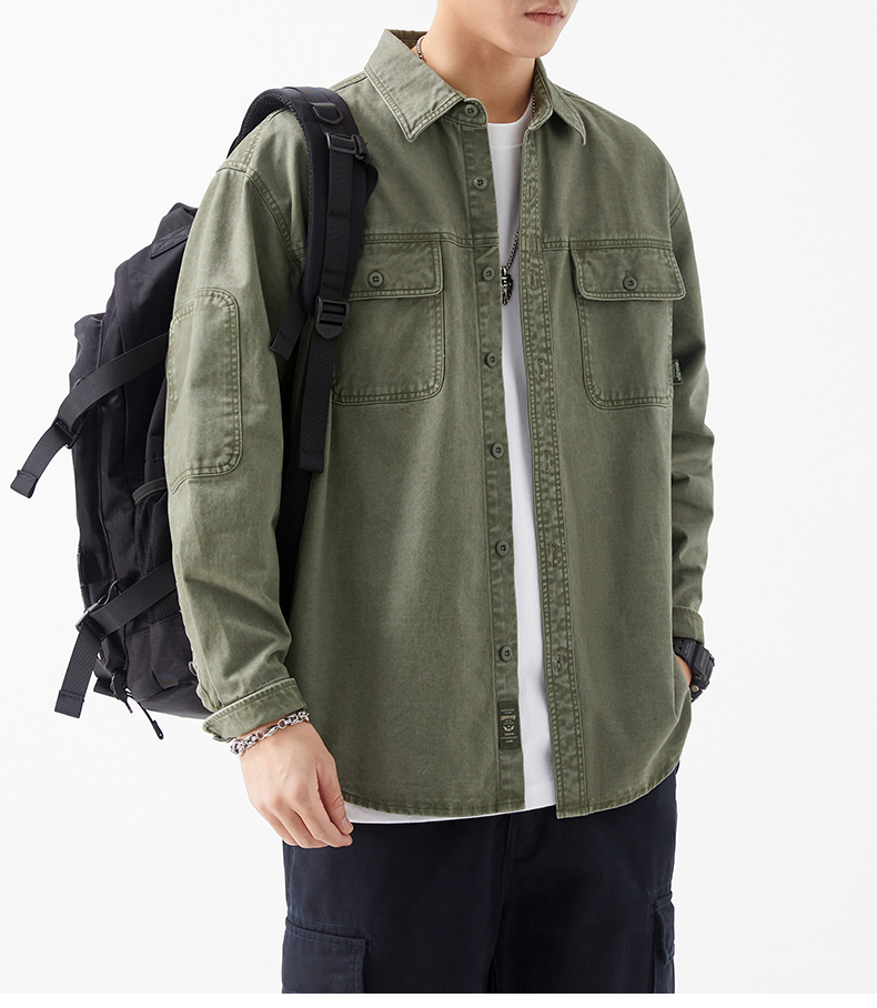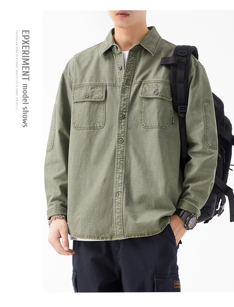 經典十年!清爽舒適!重磅洗水襯衫男阿美咔嘰純棉襯衫外套