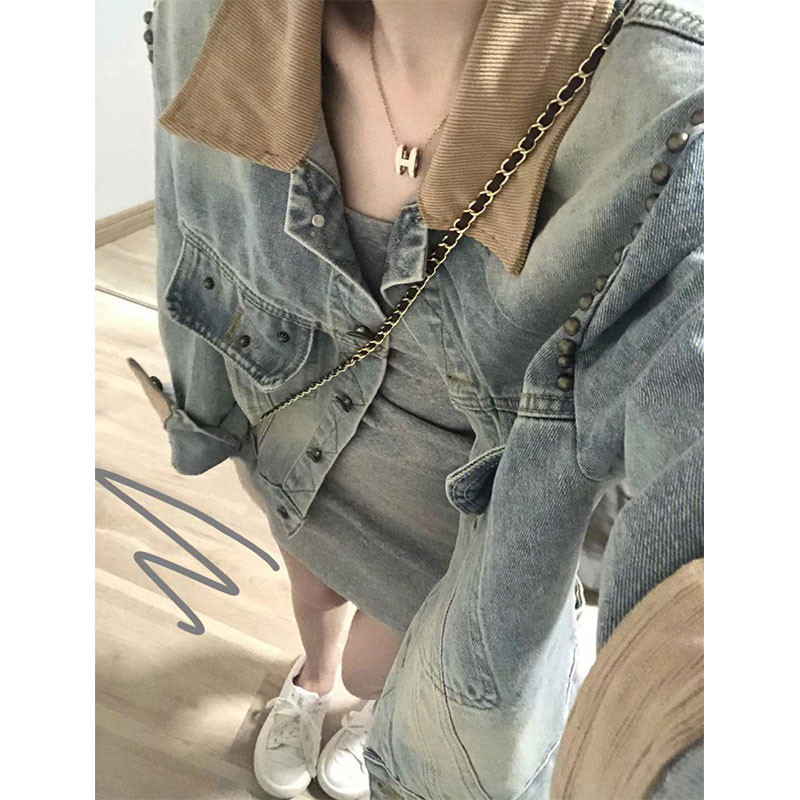 美式復古夾克牛仔外套女春秋款小眾高級感國潮牌寬鬆短版開襟外套上衣
