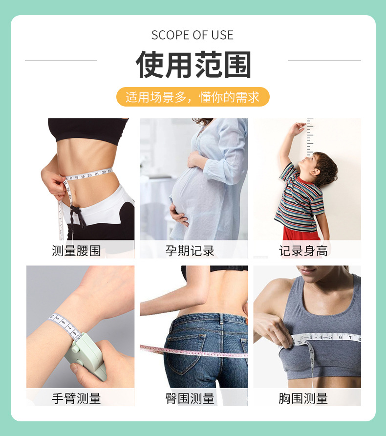 【三围测量尺】围度尺子健身尺腰围尺量臂围胸围腿围自动收缩软尺