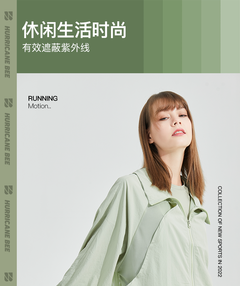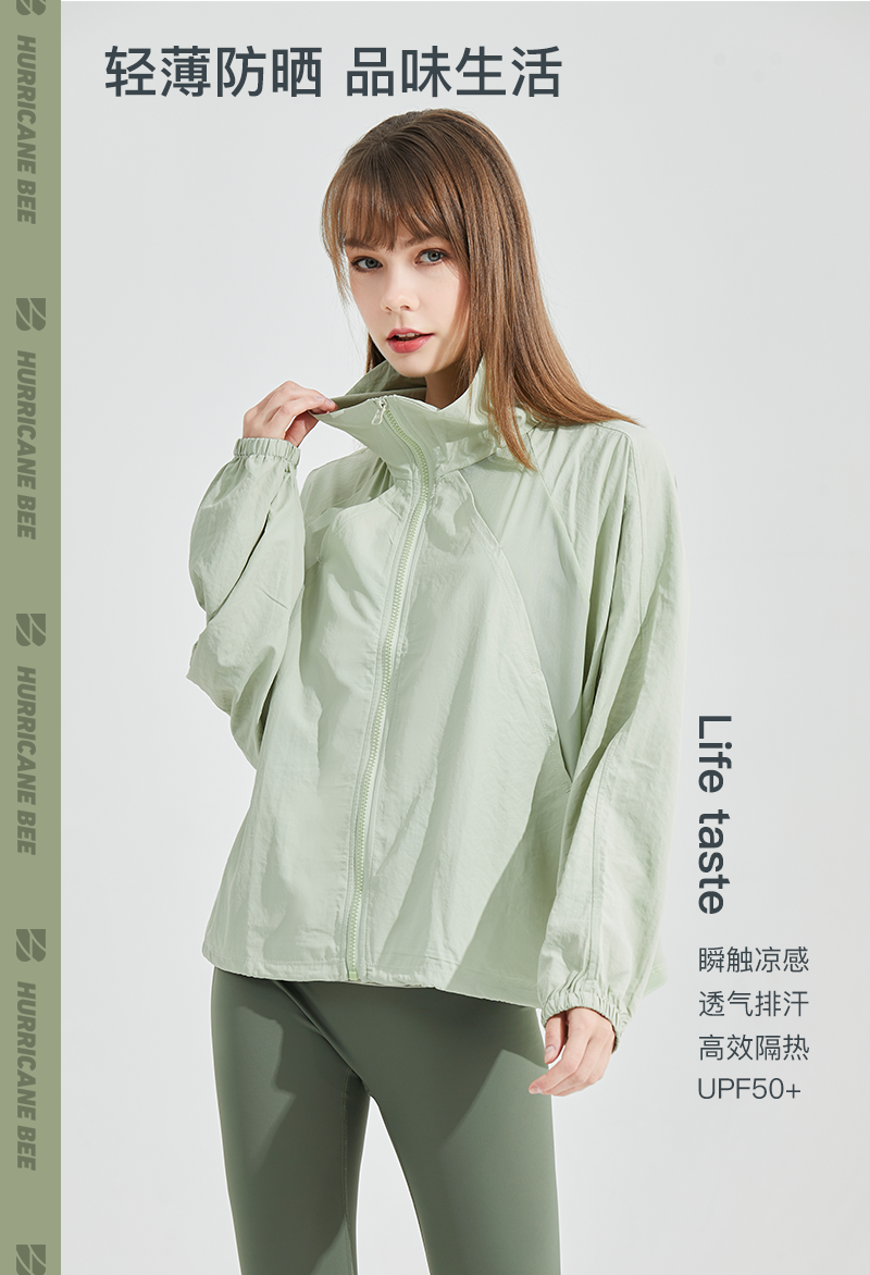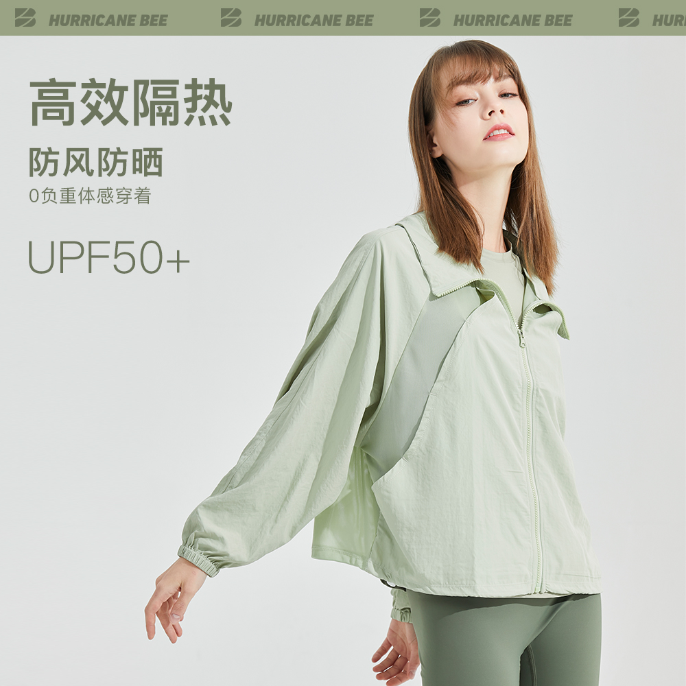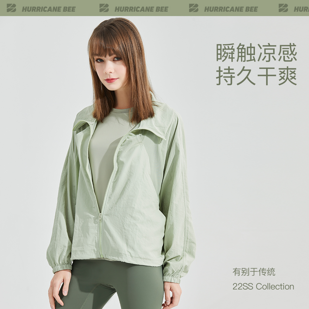 HURRICANEBEE防曬衣薄抗UV寬鬆無帽防曬外套透氣女運動衣夏季