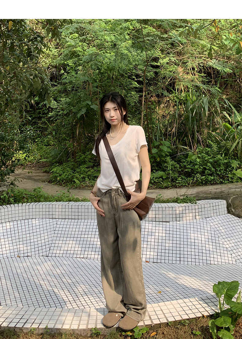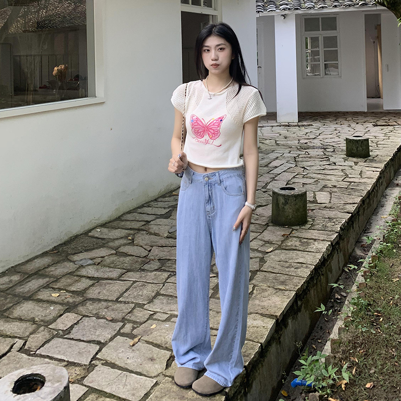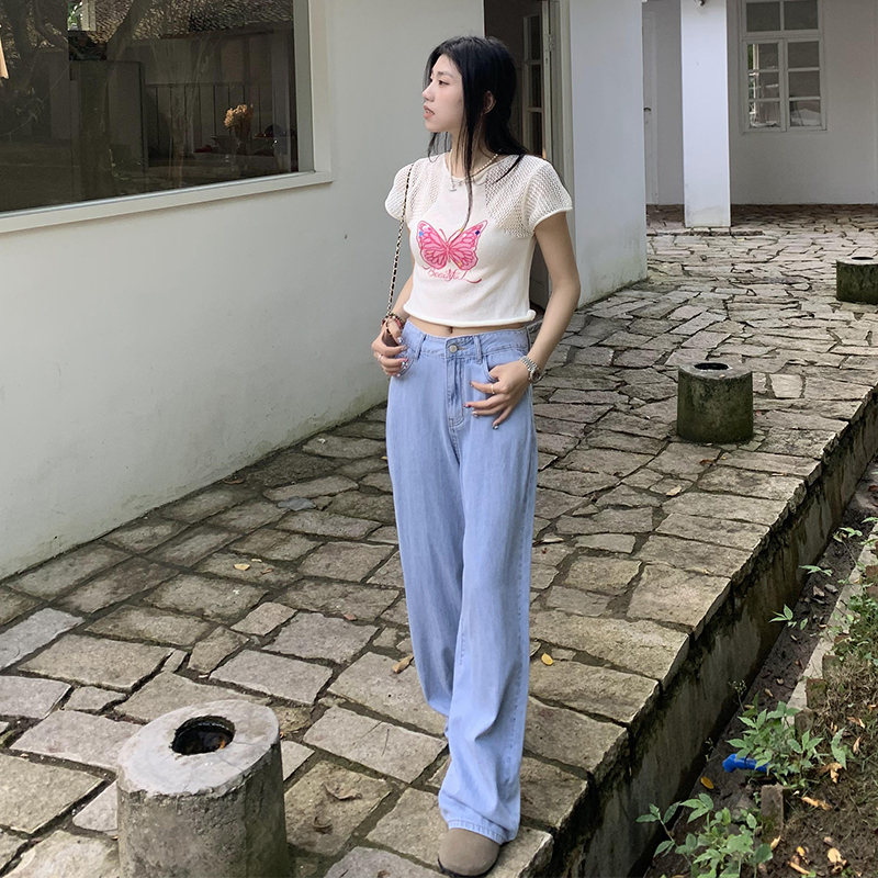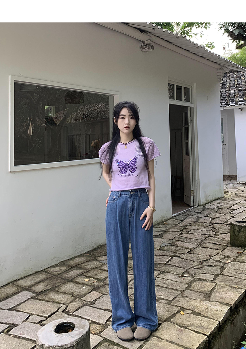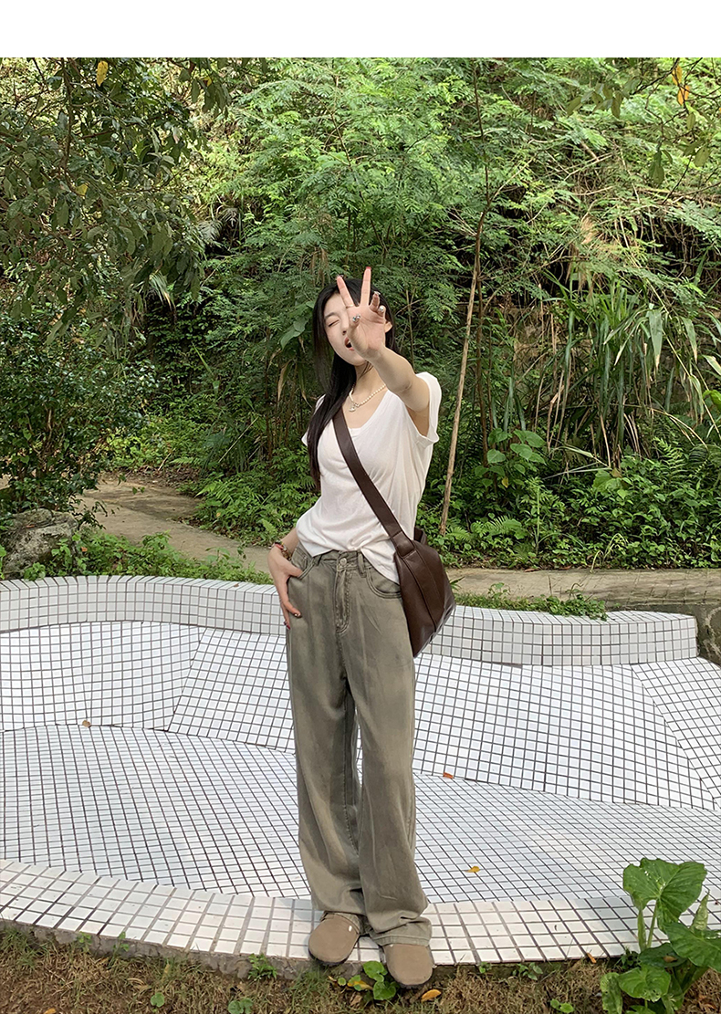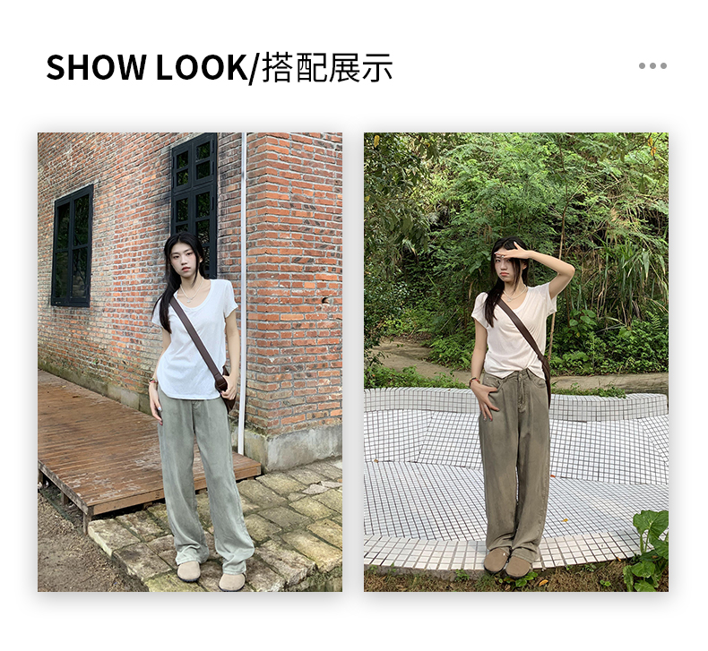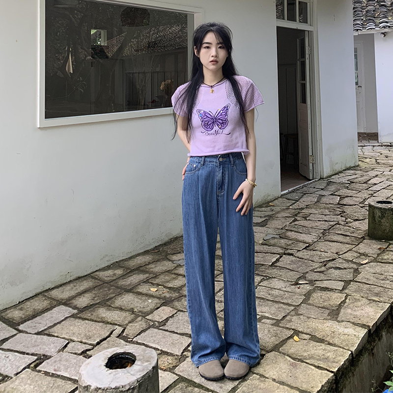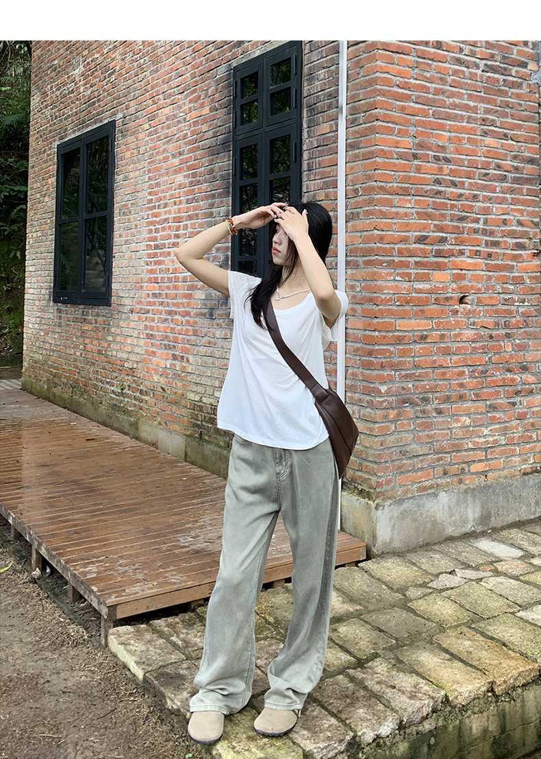 橘子樹在哪兒復古做舊垂感天絲牛仔褲女夏季薄款拖地直筒寬褲潮