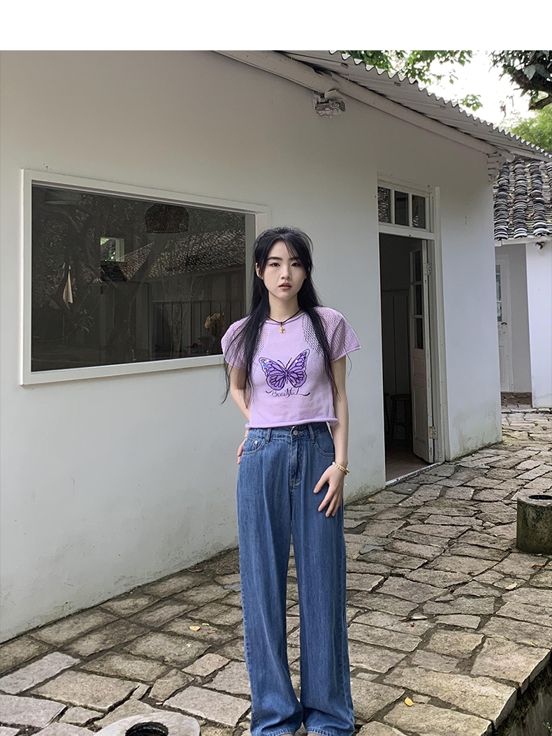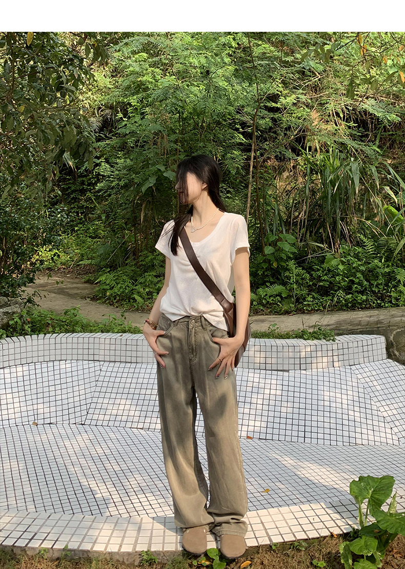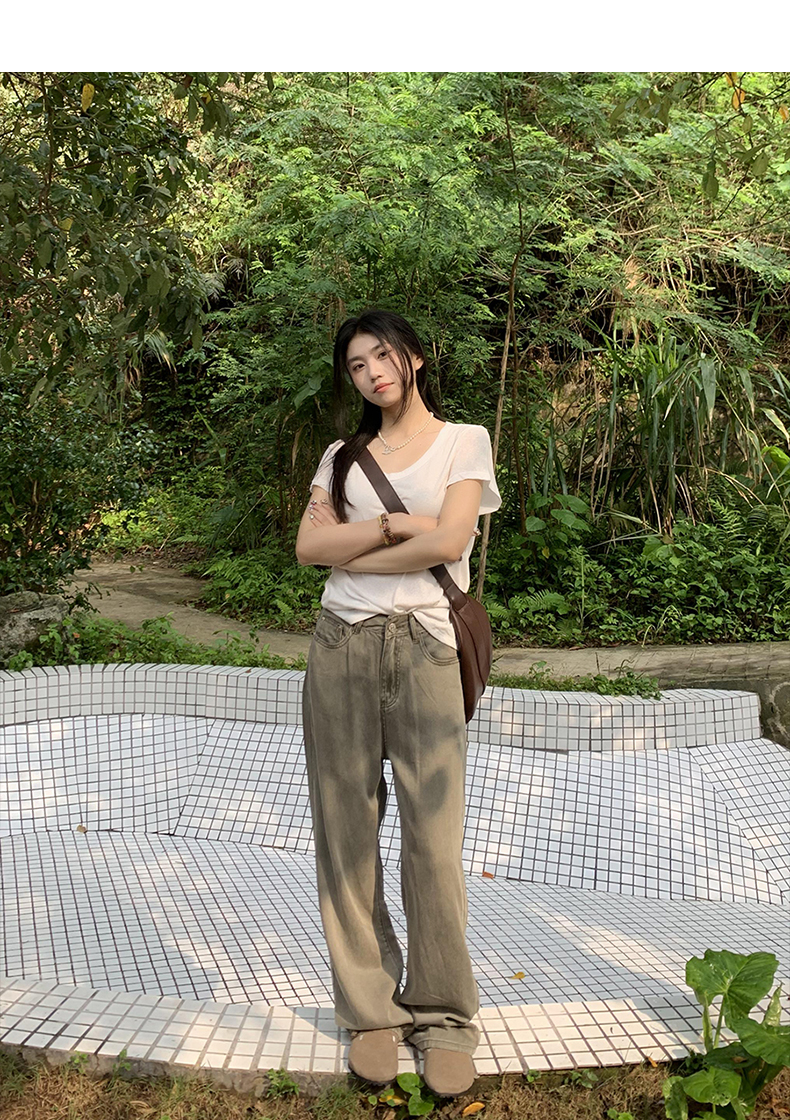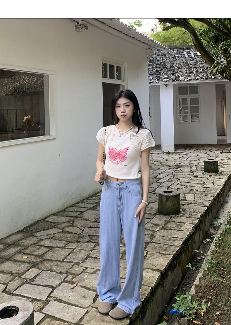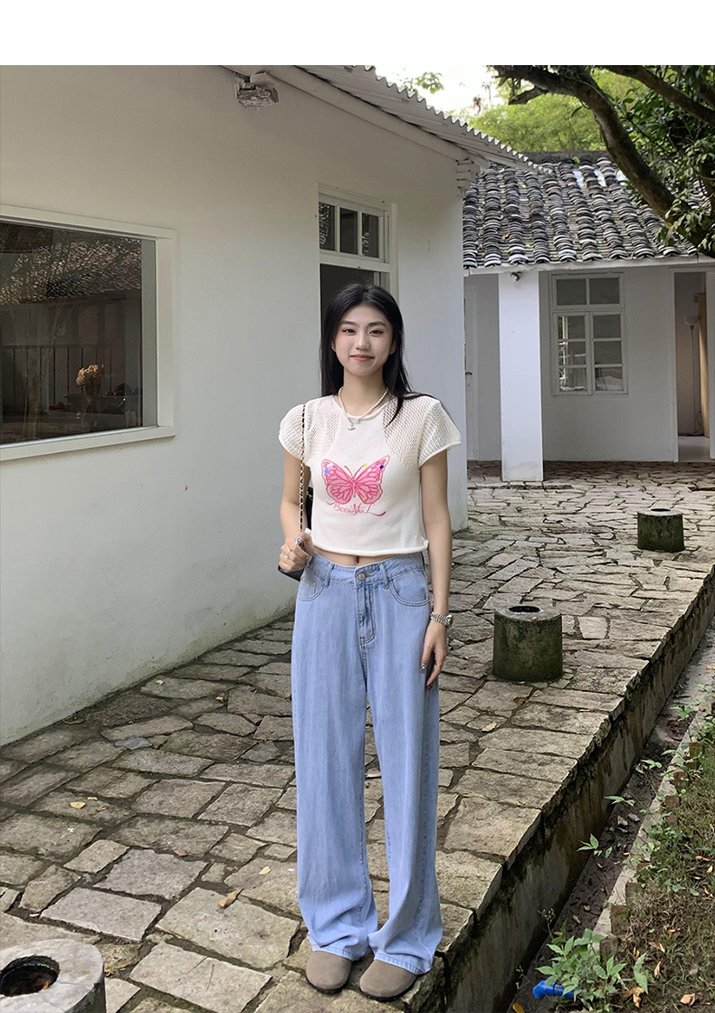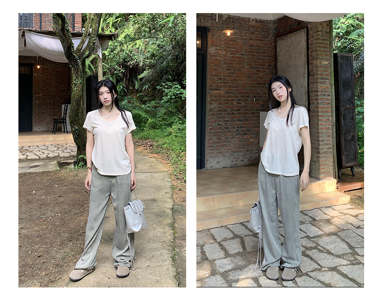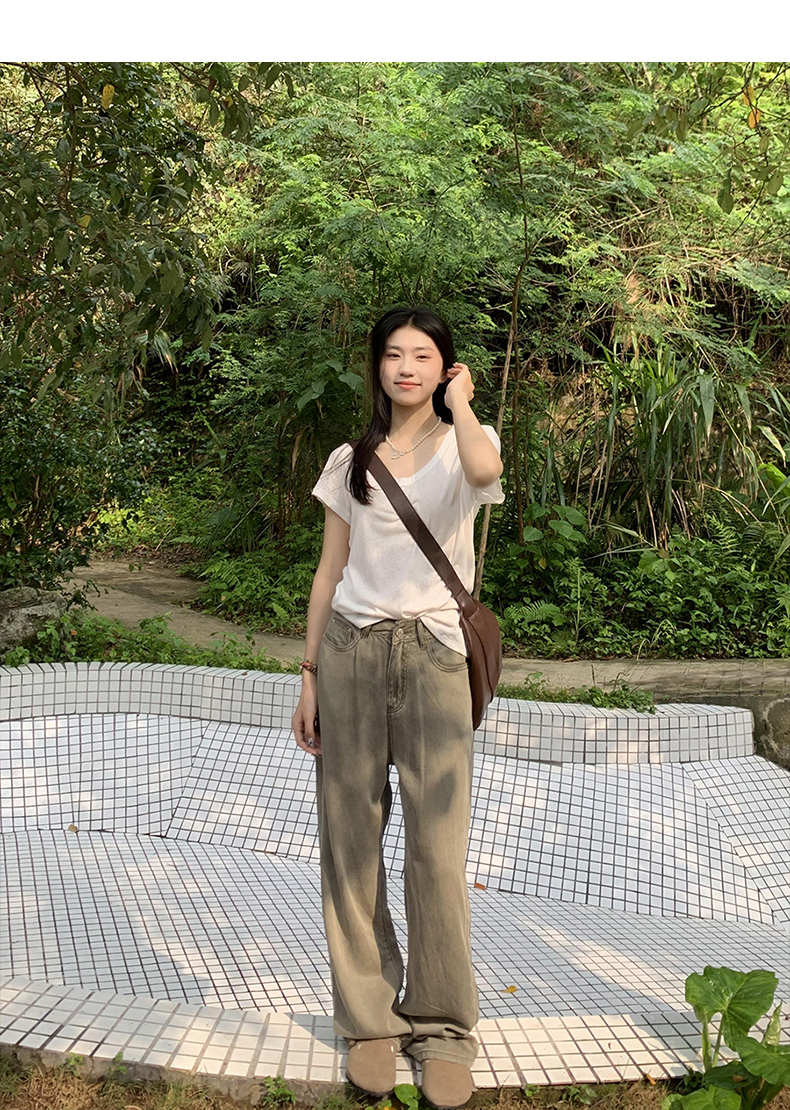 橘子樹在哪兒復古做舊垂感天絲牛仔褲女夏季薄款拖地直筒寬褲潮