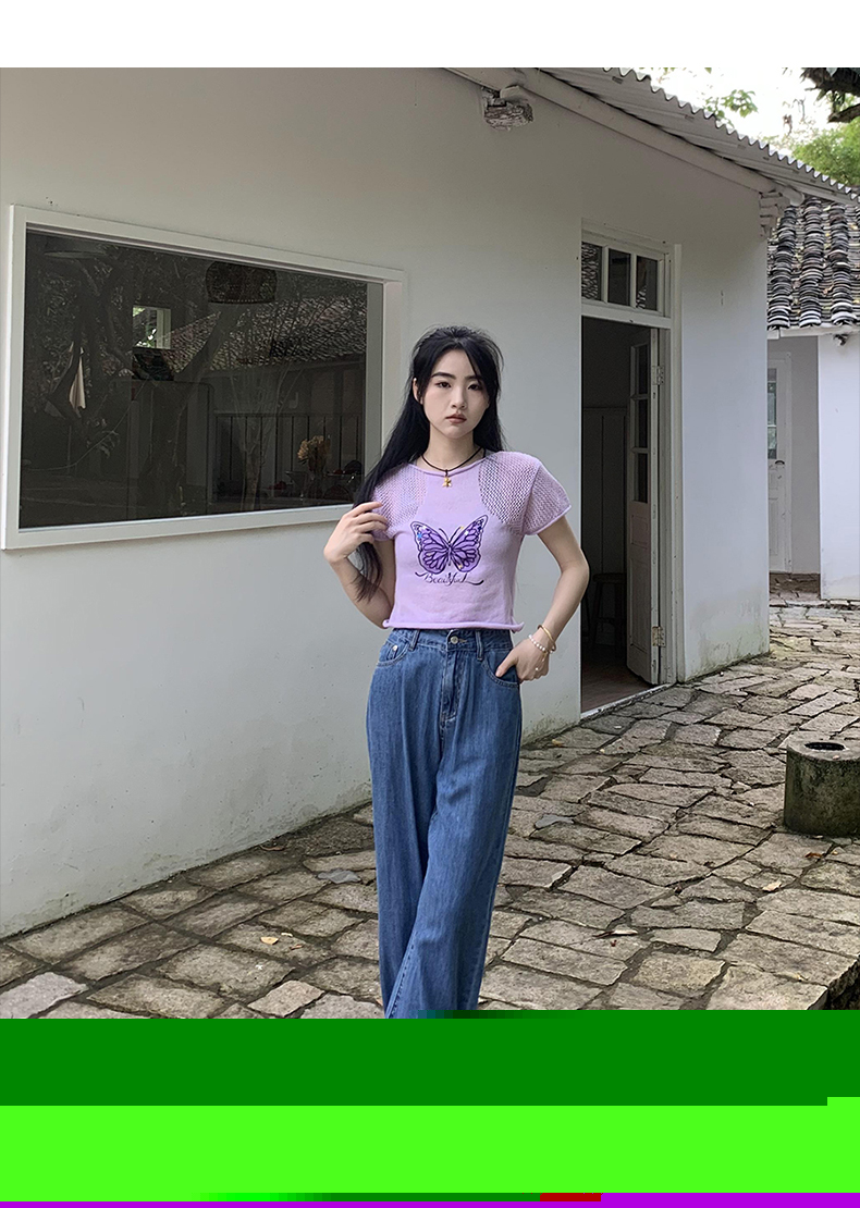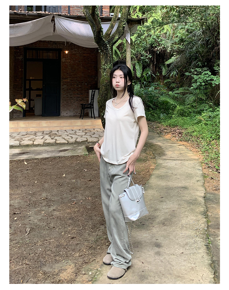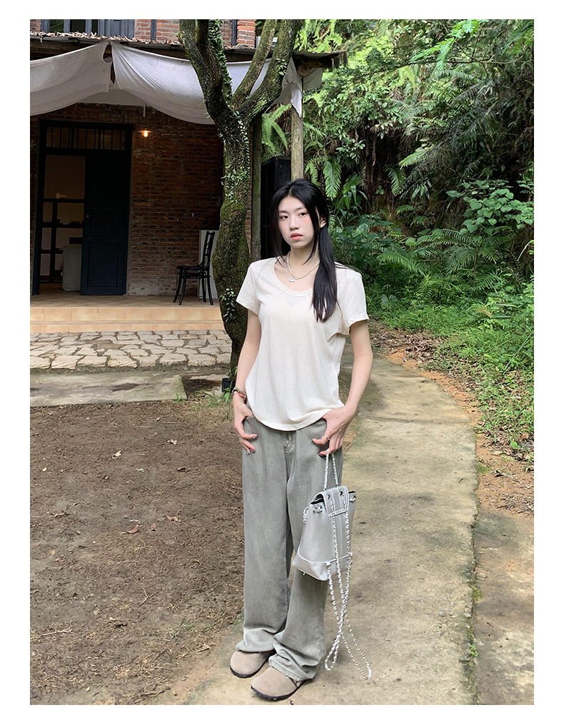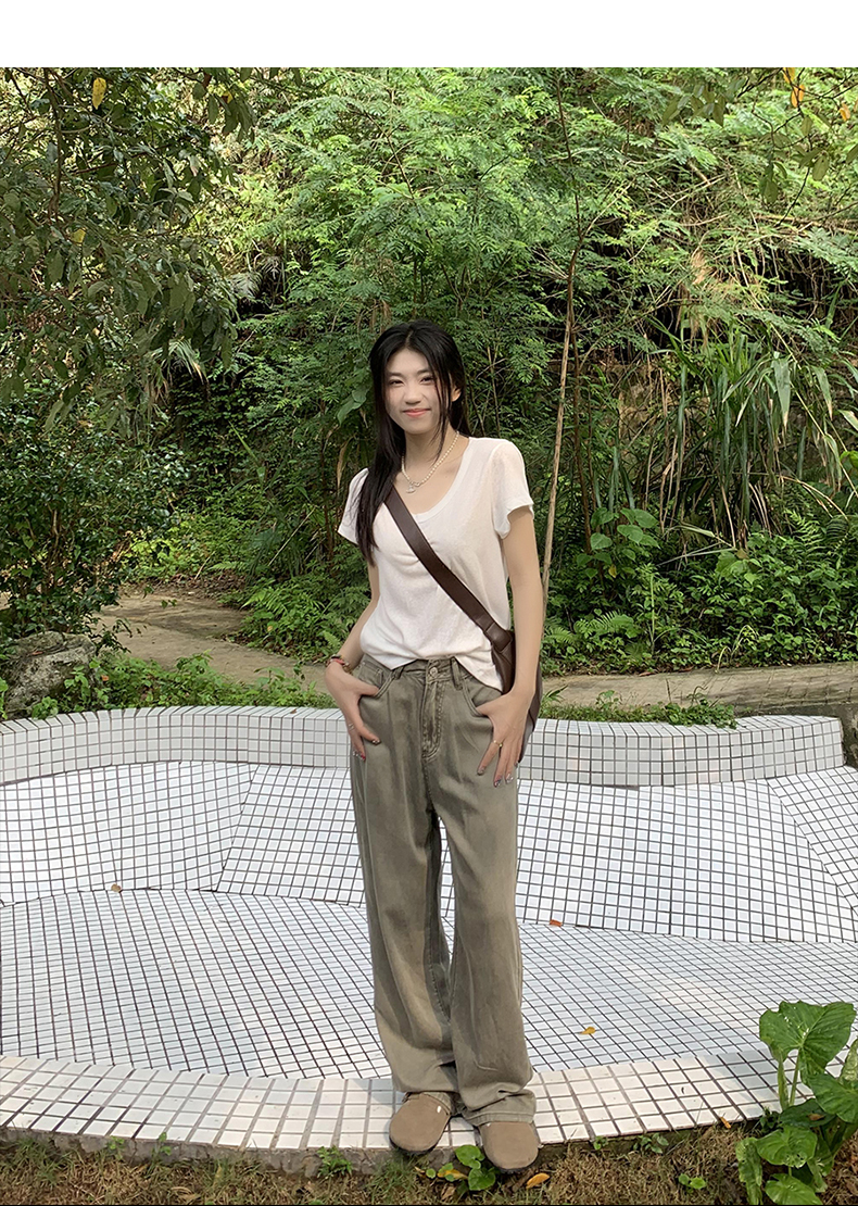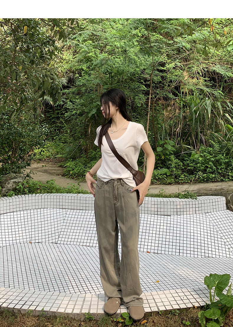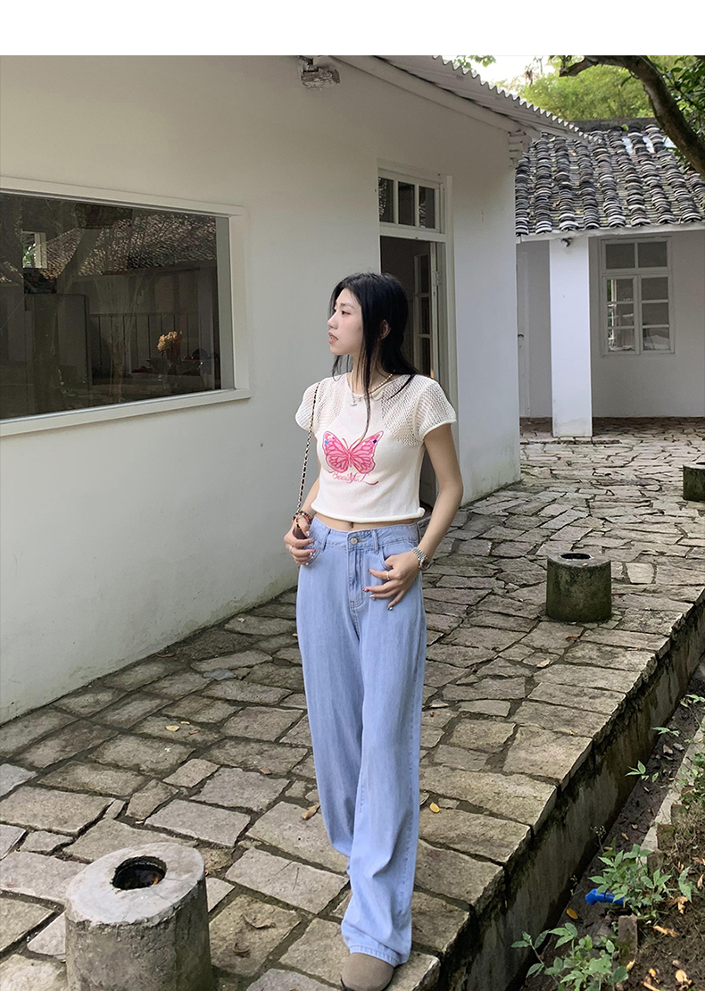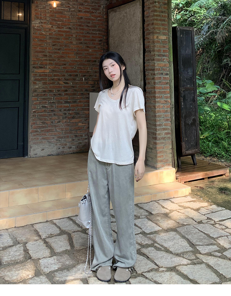 橘子樹在哪兒復古做舊垂感天絲牛仔褲女夏季薄款拖地直筒寬褲潮