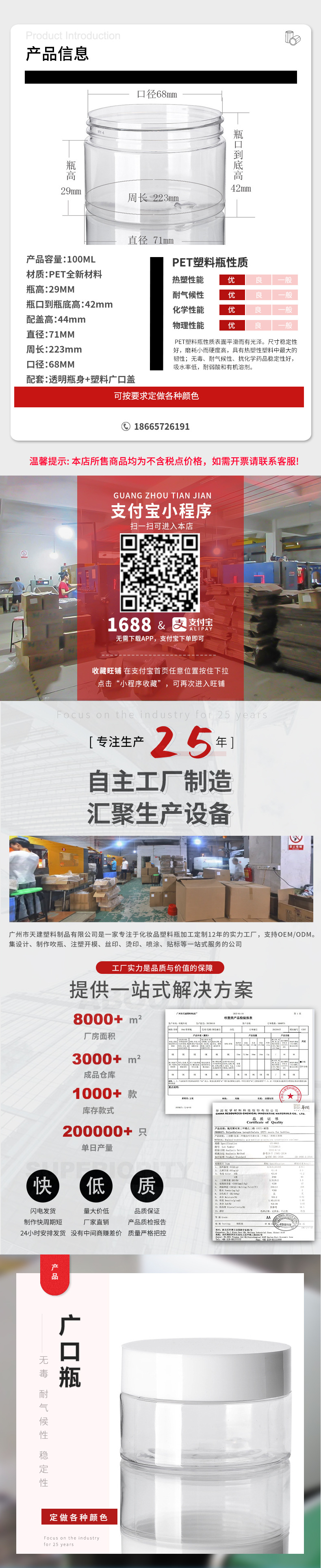 厂家现货供应100gPET膏霜瓶面霜瓶100ml广口透明塑料瓶分装空瓶