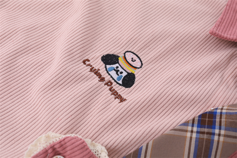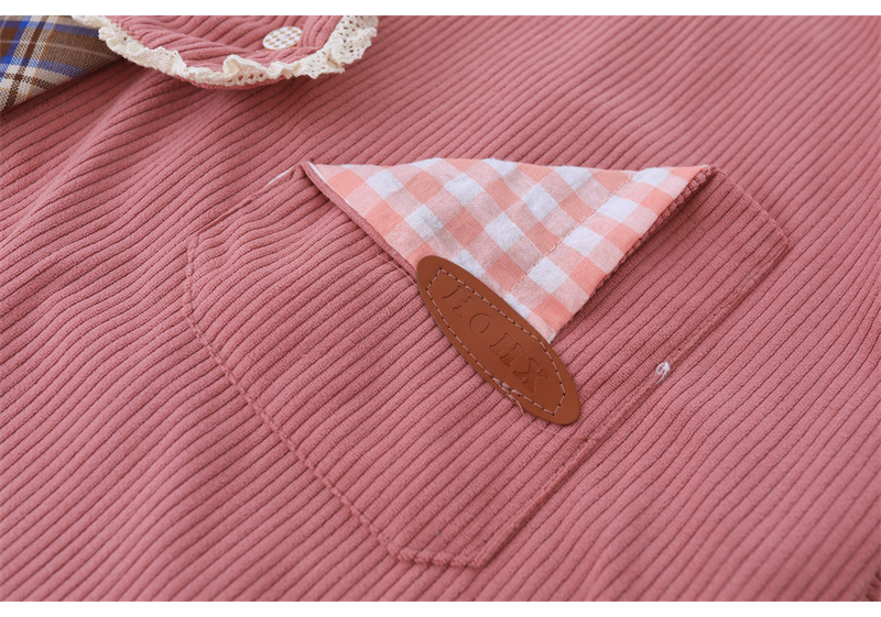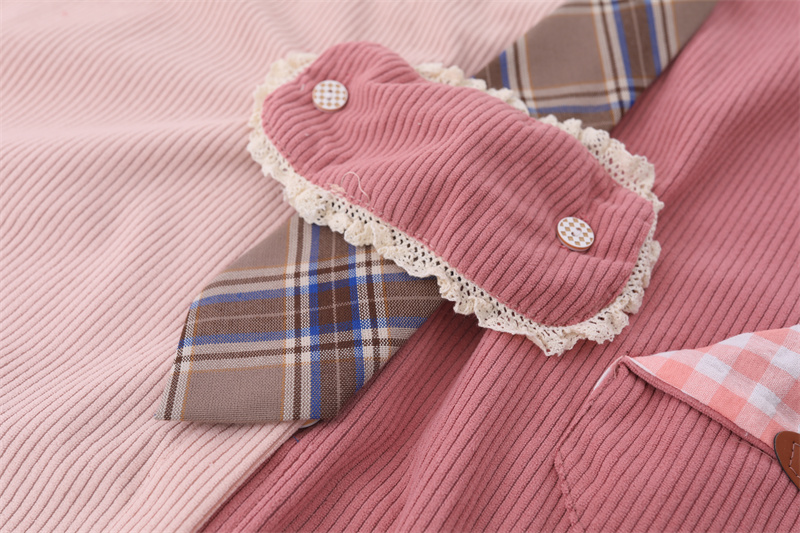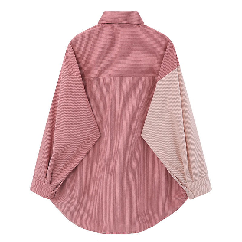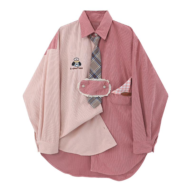 【現貨】2023年新款復古古著味格子拼接撞色燈芯絨襯衫送領帶別致