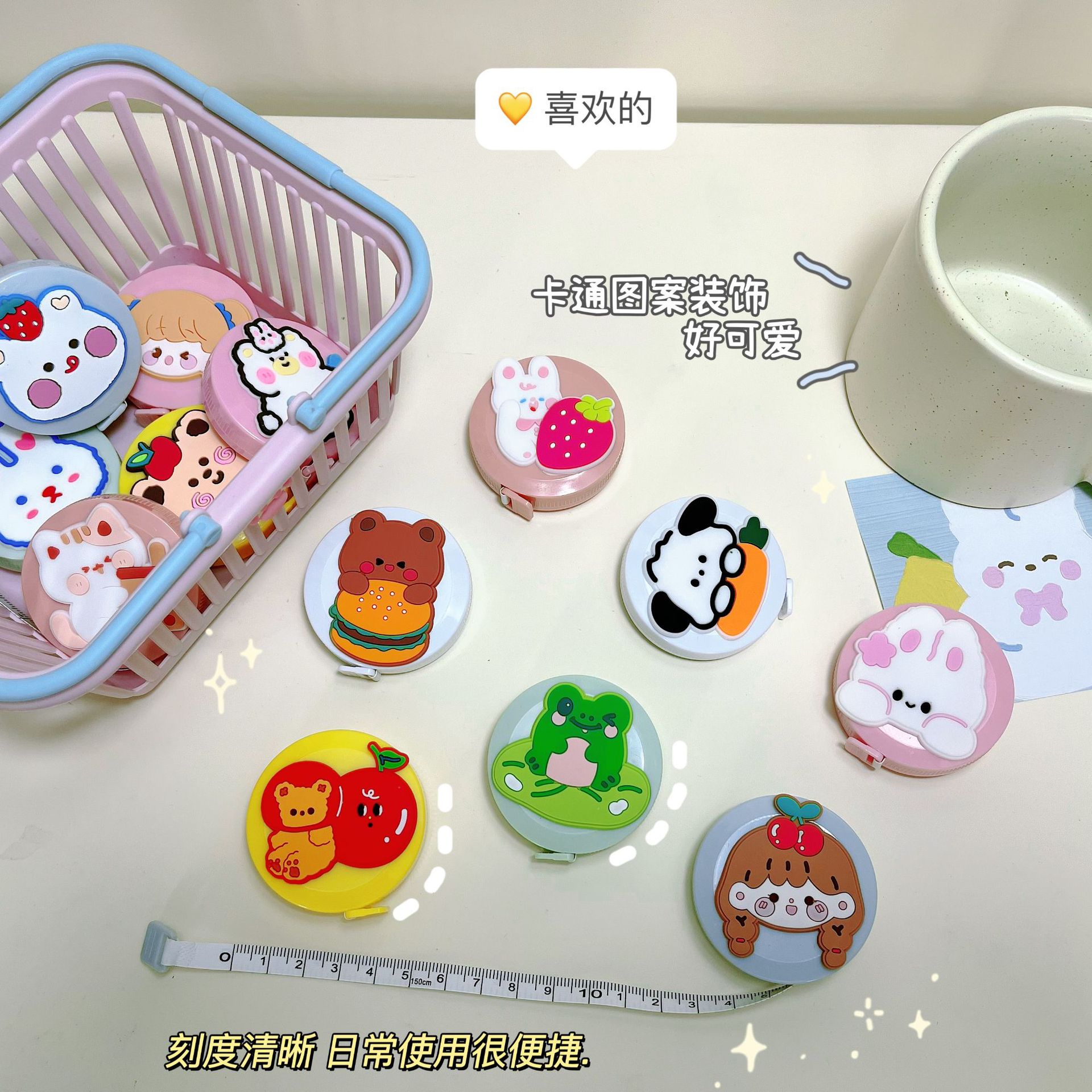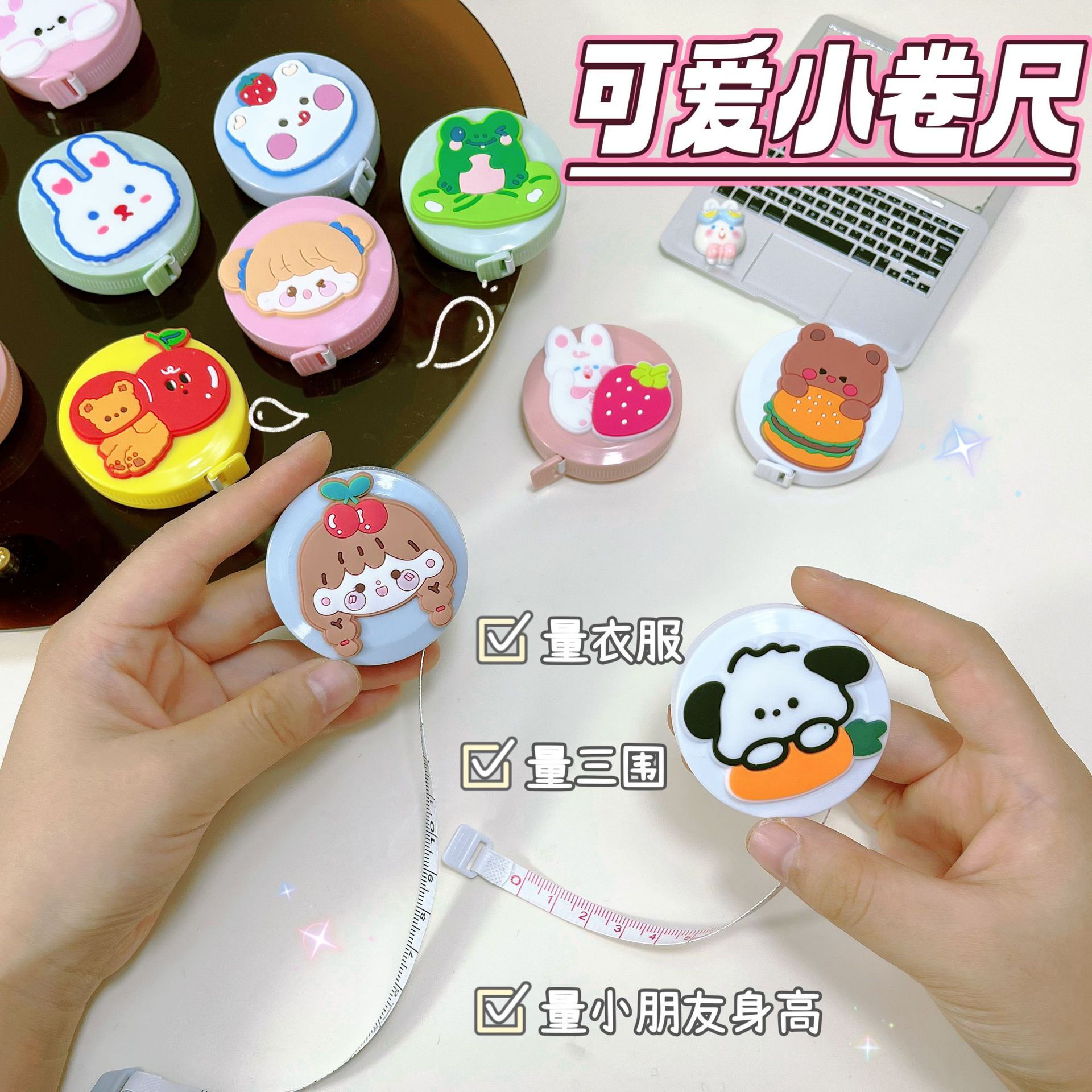 卡通可爱迷你卷尺1.5m自动伸缩随身携带小卷尺软尺量衣量三围尺子