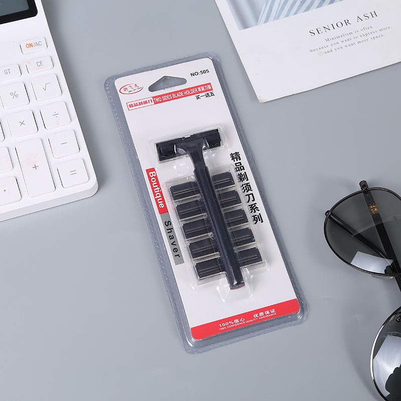厂家现货1+5刀架505手动剃须刀除毛刀1个刀架配6个刀片刮胡子刀套