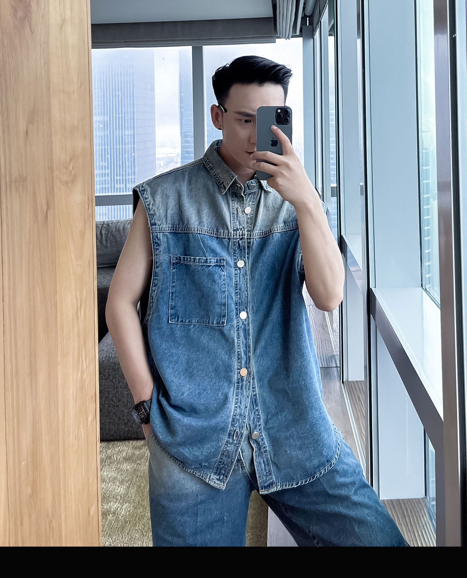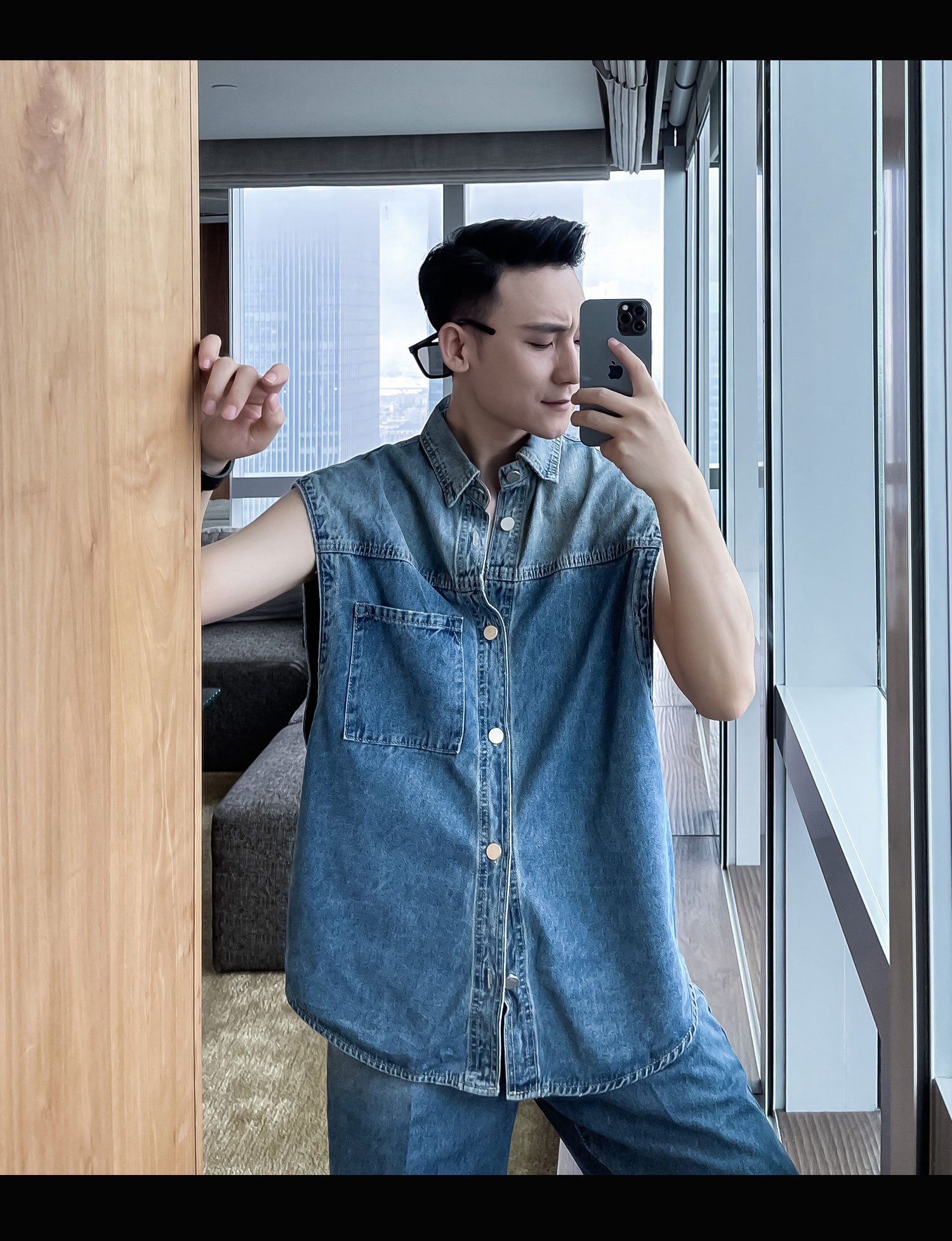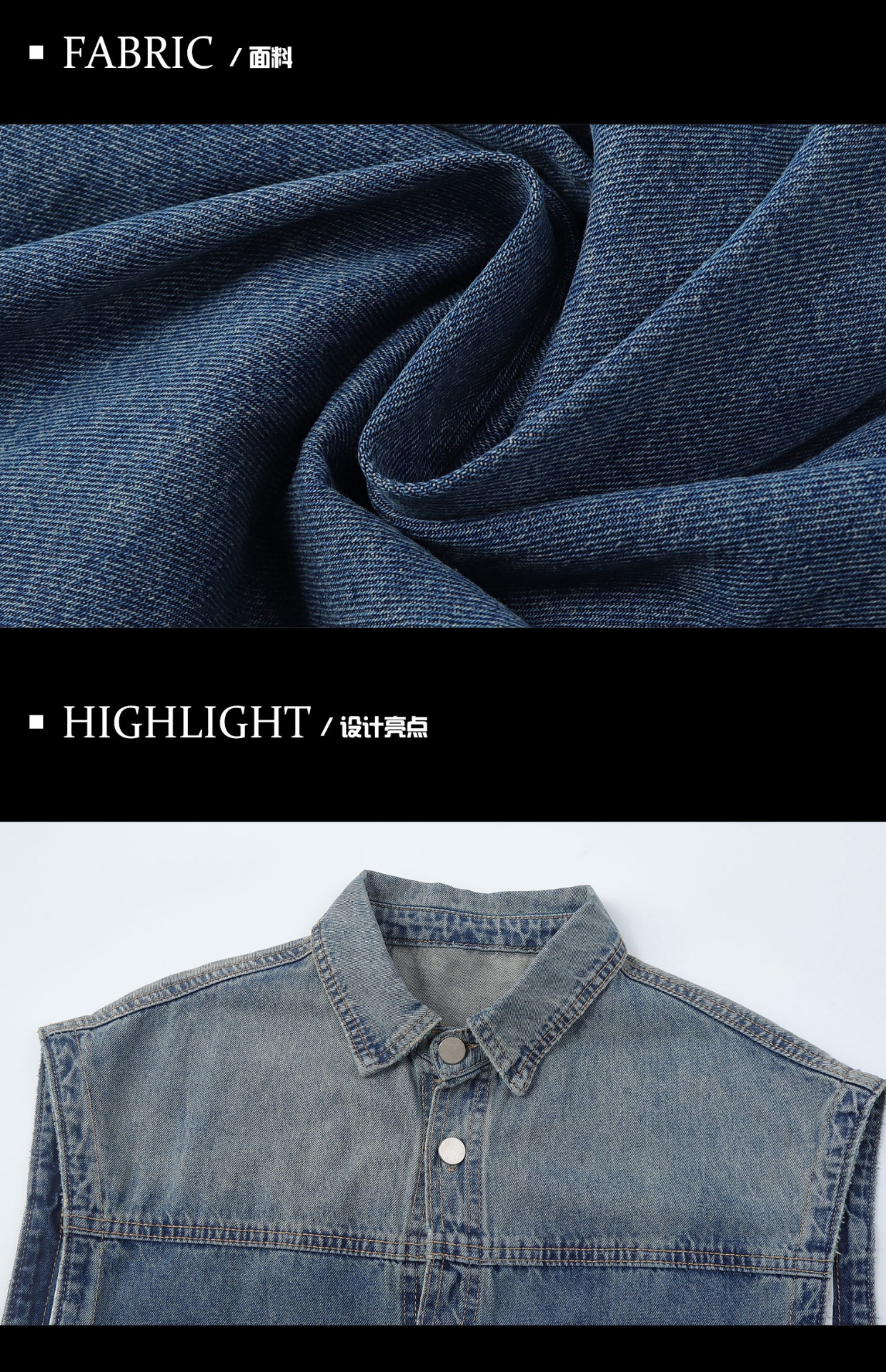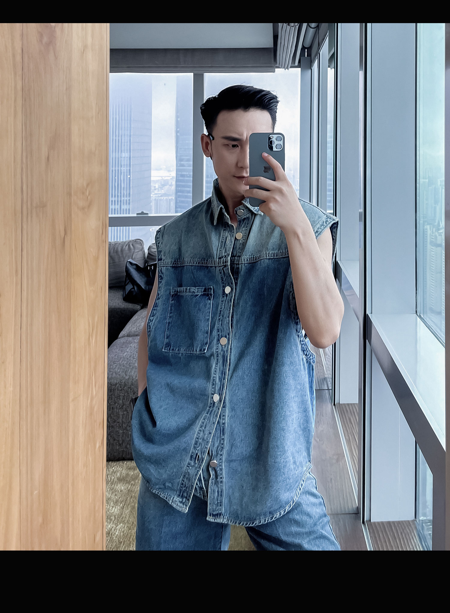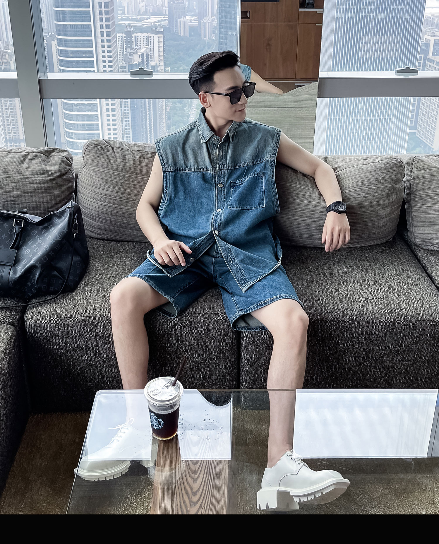 【DAIO ETHAN】原創設計洗水無袖短褲休閒牛仔套裝潮酷感男背心夏