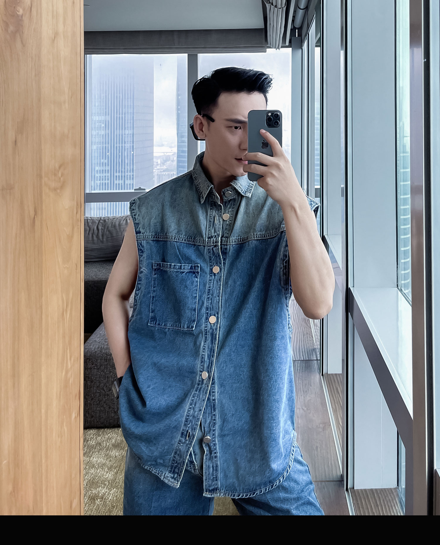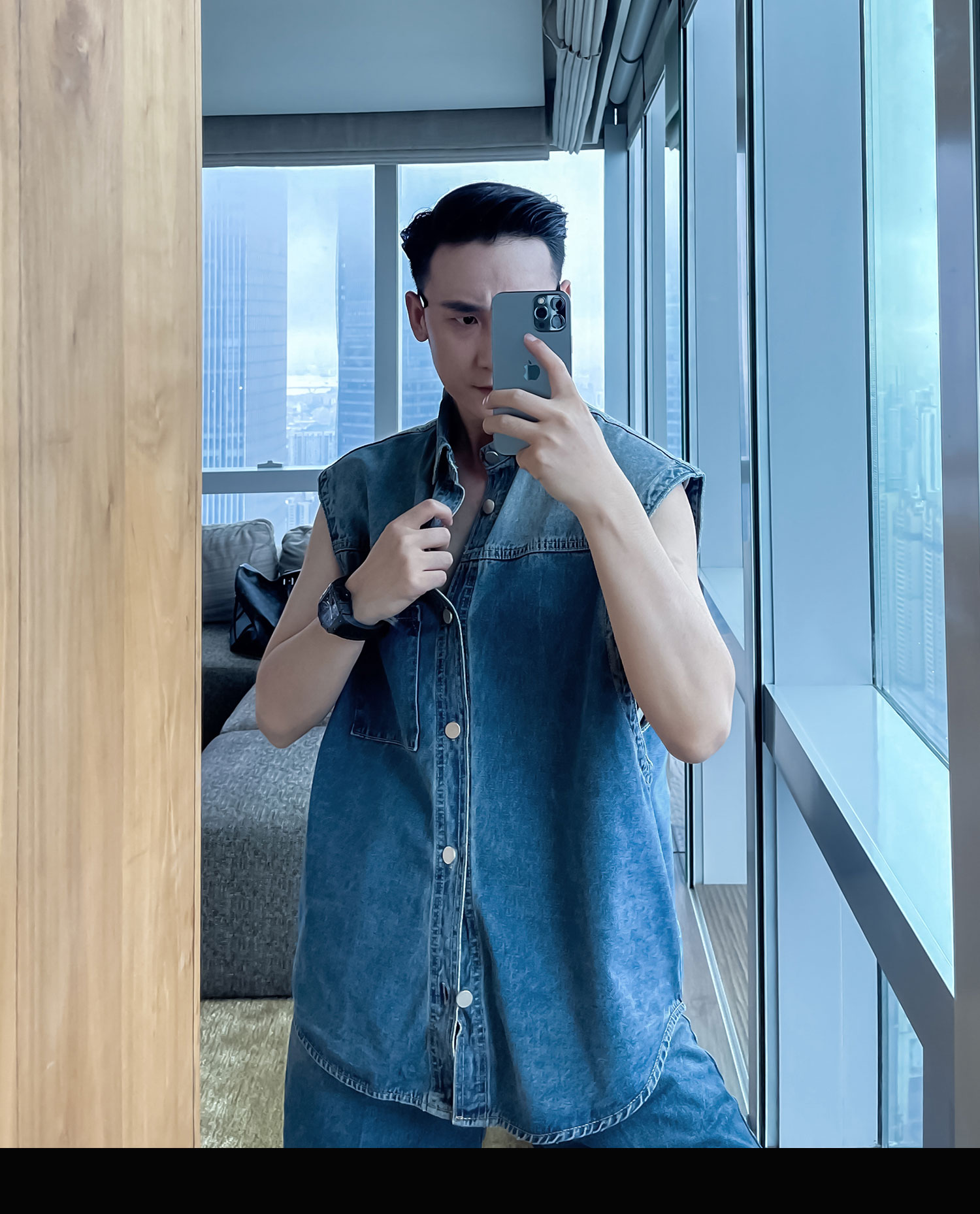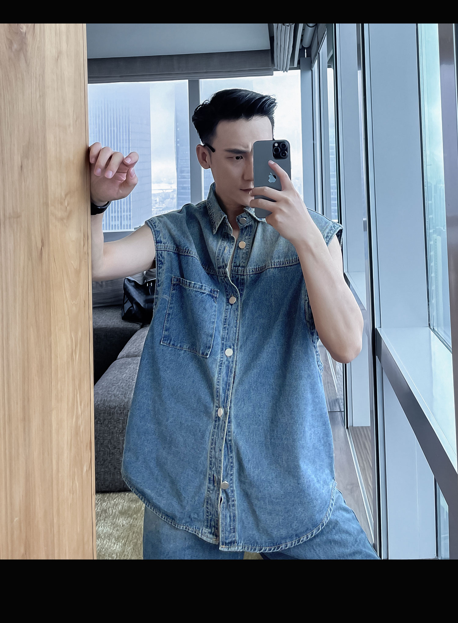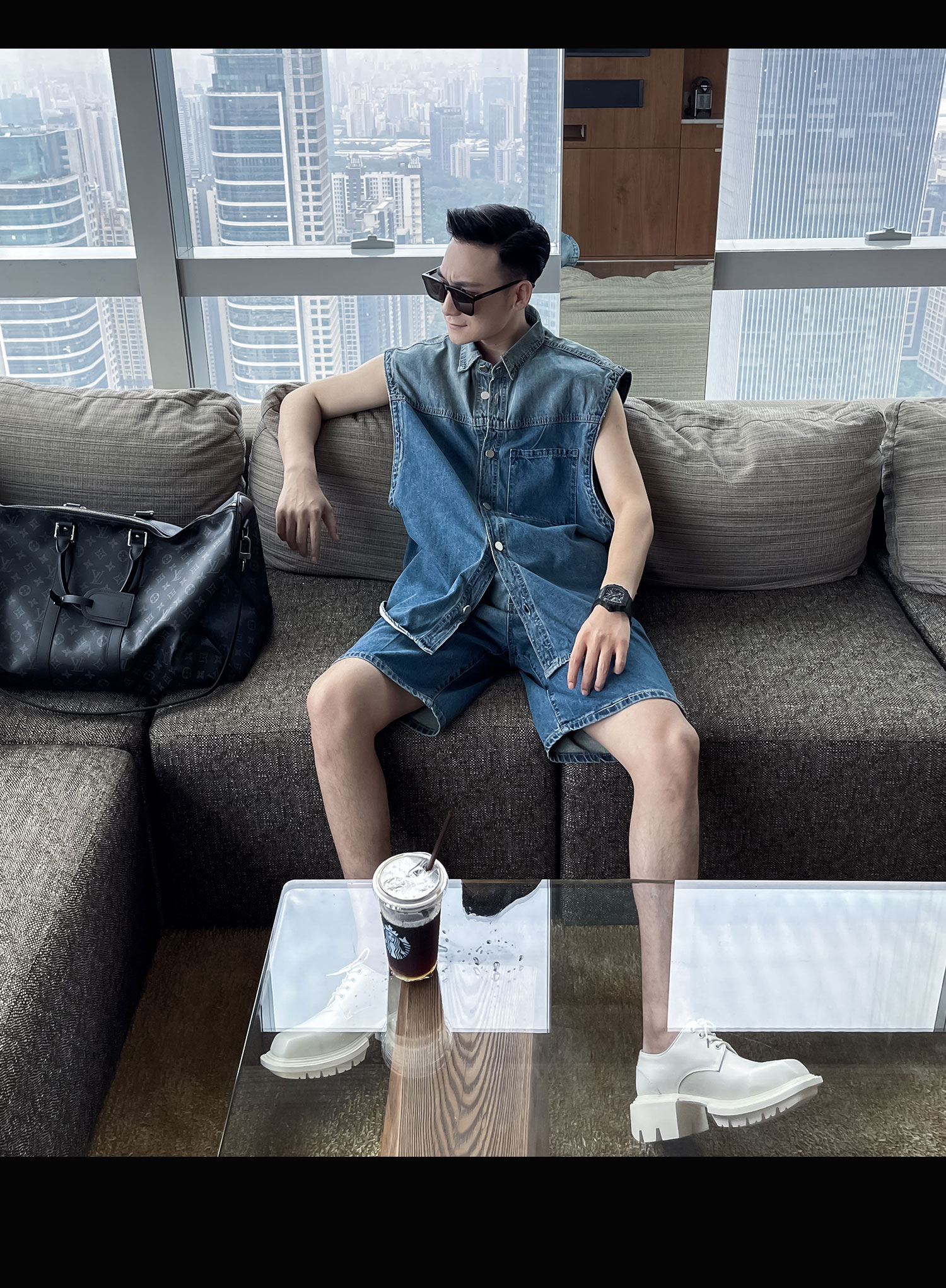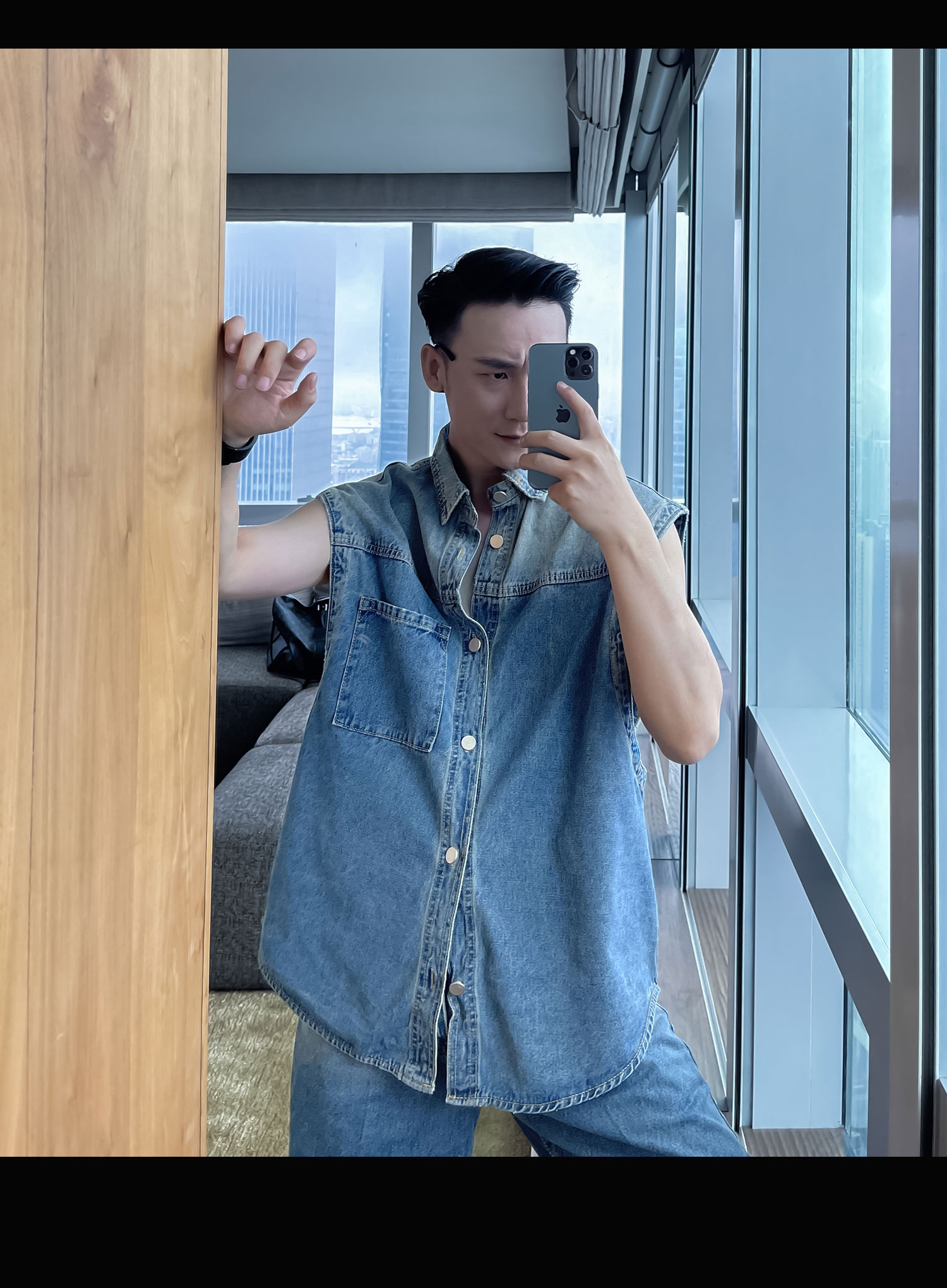 【DAIO ETHAN】原創設計洗水無袖短褲休閒牛仔套裝潮酷感男背心夏