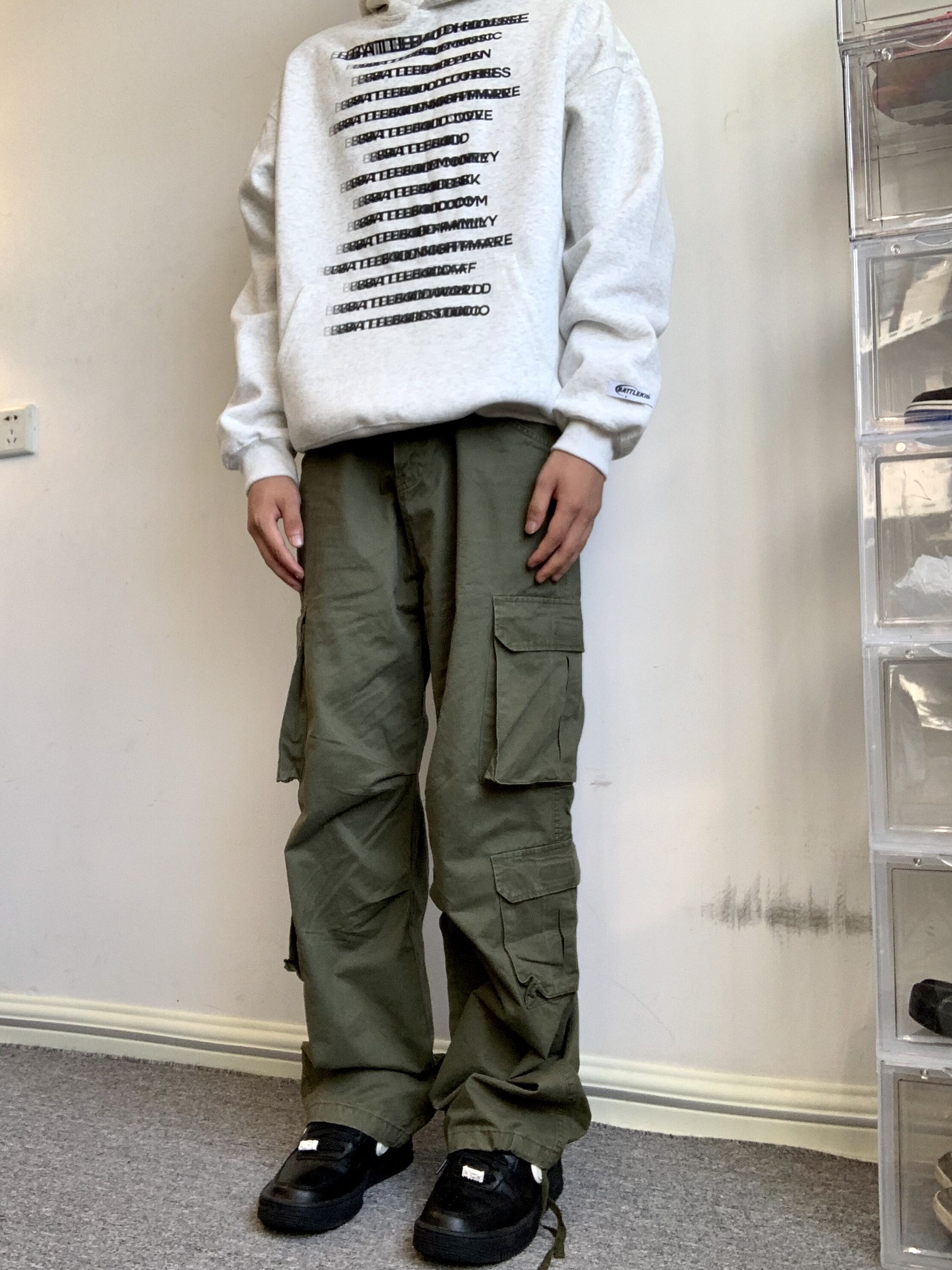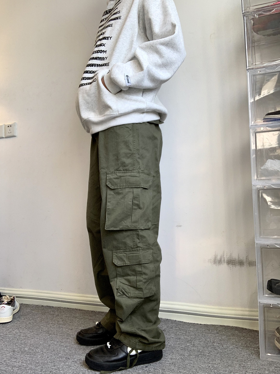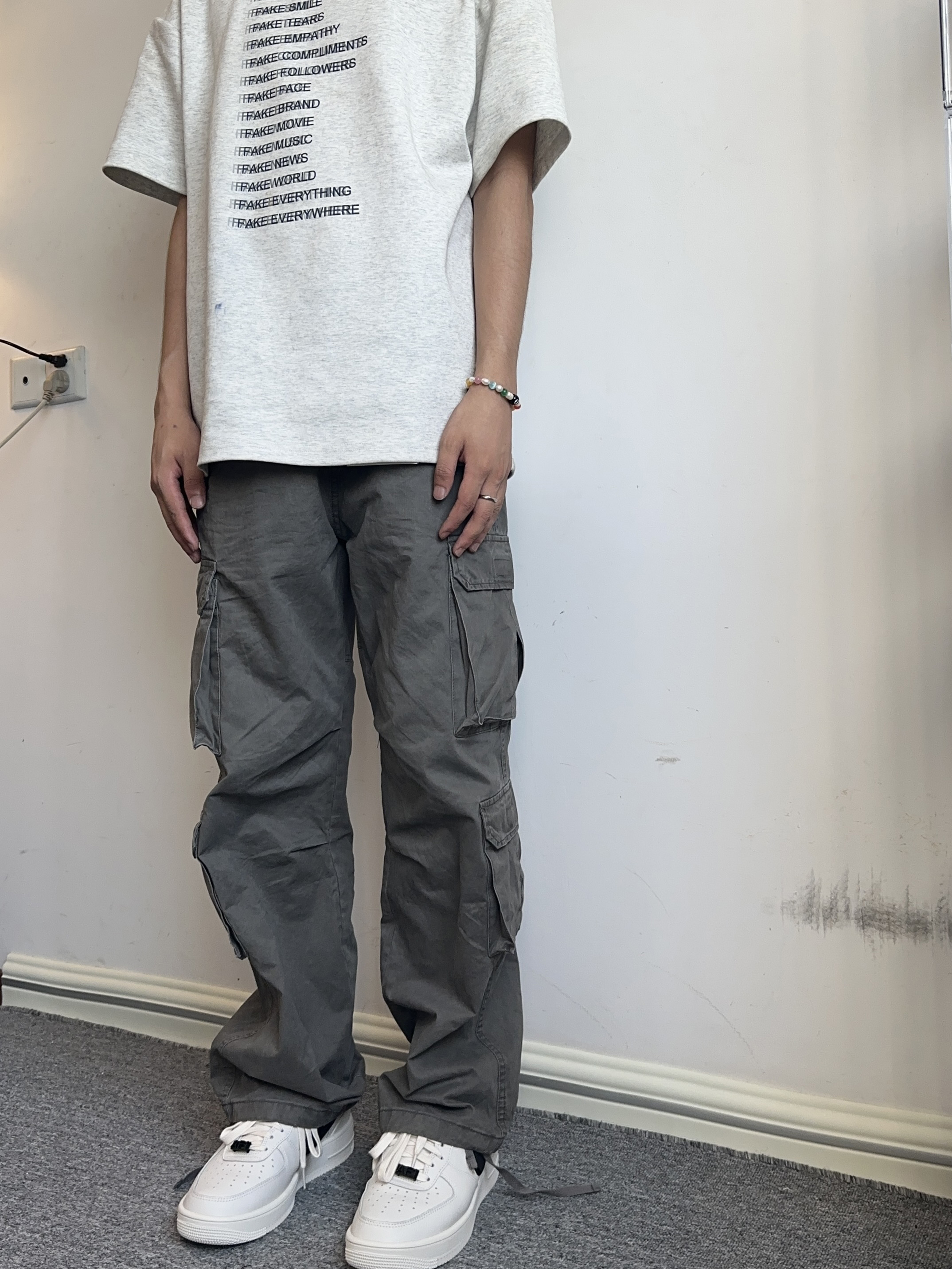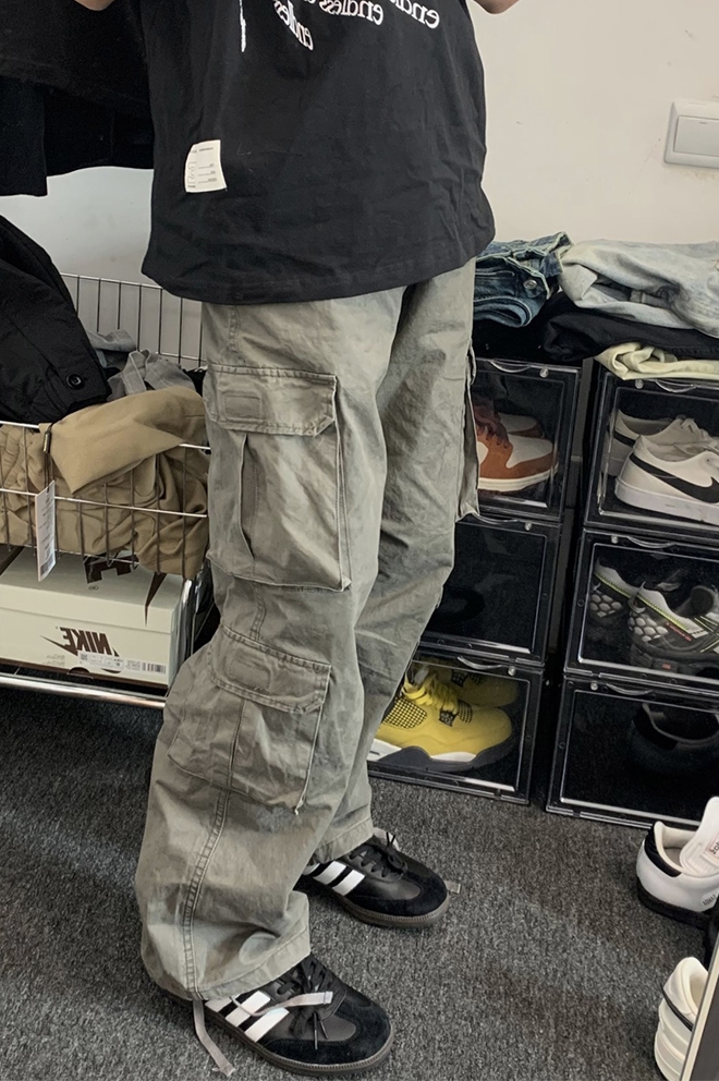 soxiox古著vintage美式工裝牛仔褲男女日系復古潮牌直筒口袋長褲