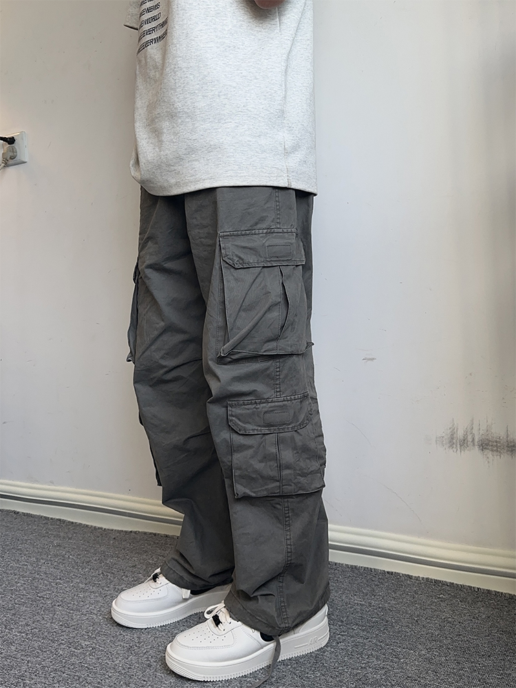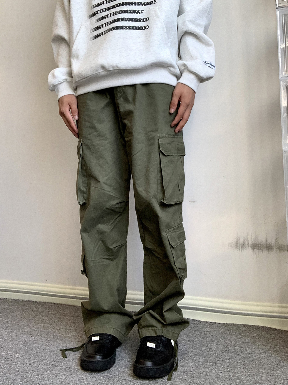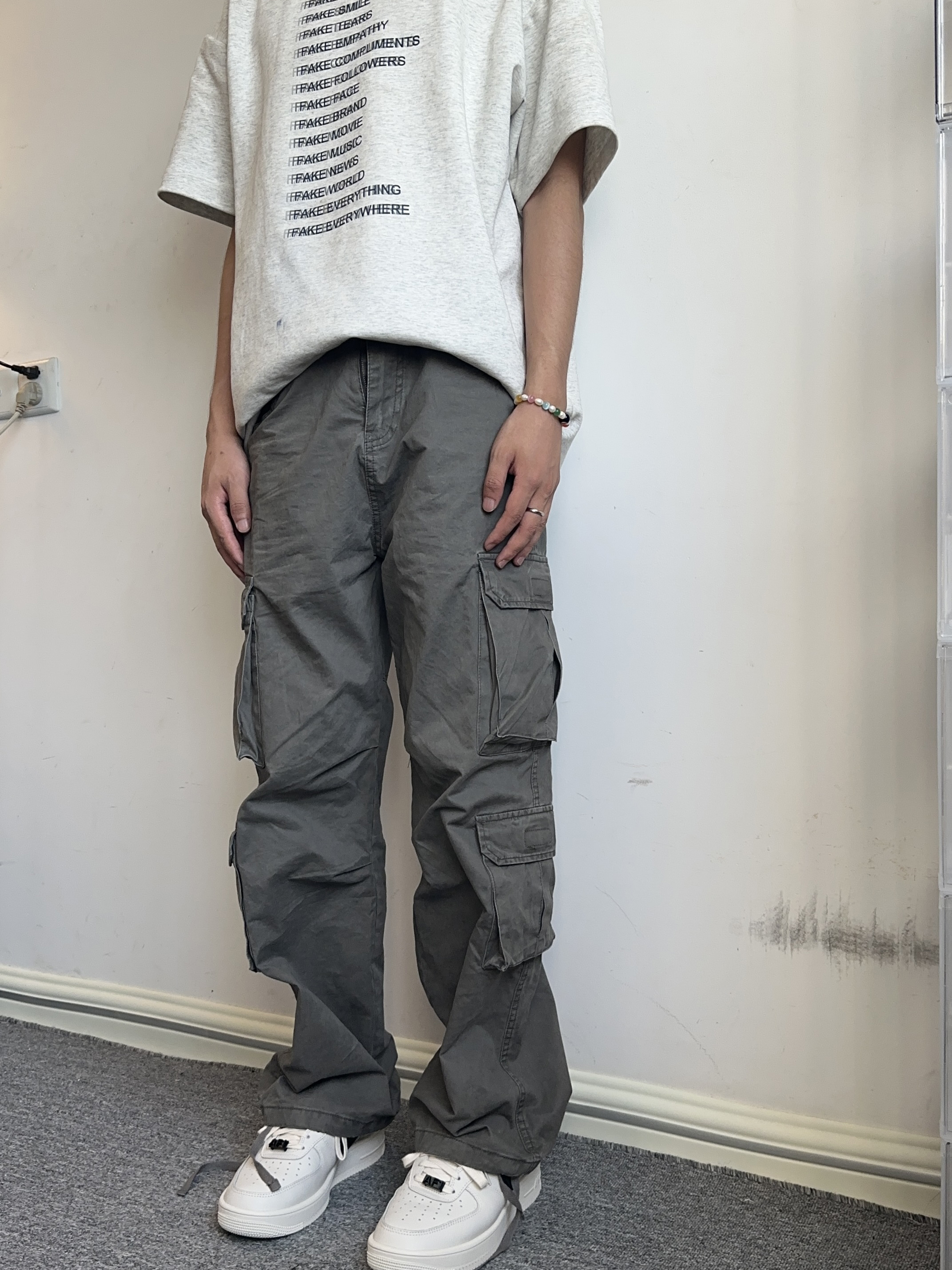 soxiox古著vintage美式工裝牛仔褲男女日系復古潮牌直筒口袋長褲