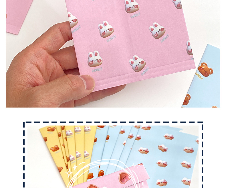 型号 淋膜袋立体图案款黄色小兔,淋膜袋立体图案款黄色小熊,淋膜袋立体图案款粉色爱心,淋膜袋立体图案款粉色小兔,淋膜袋立体图案款蓝色云朵,淋膜袋立体图案款蓝色小熊
