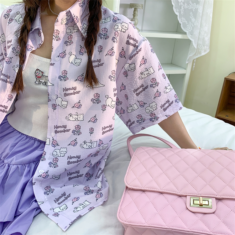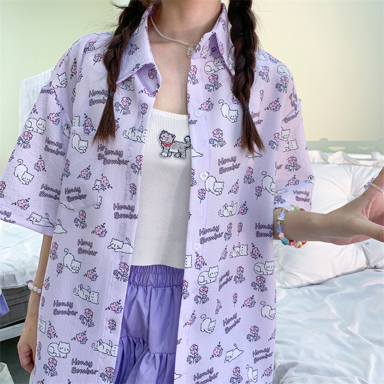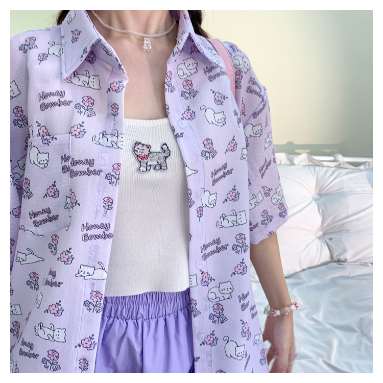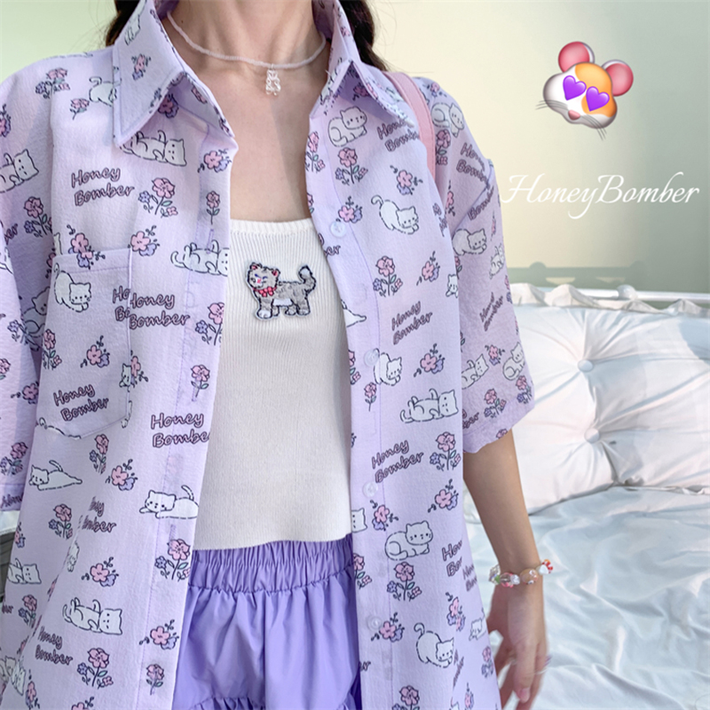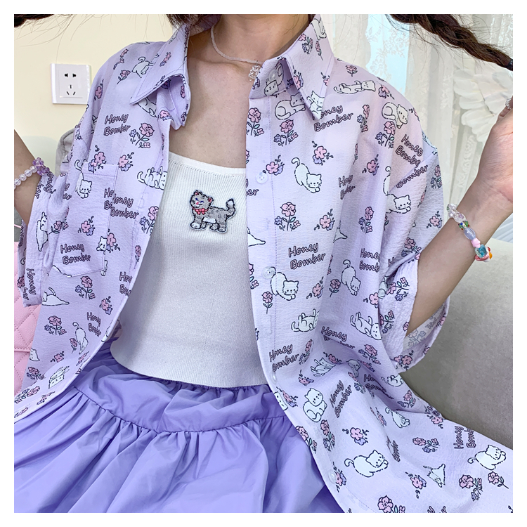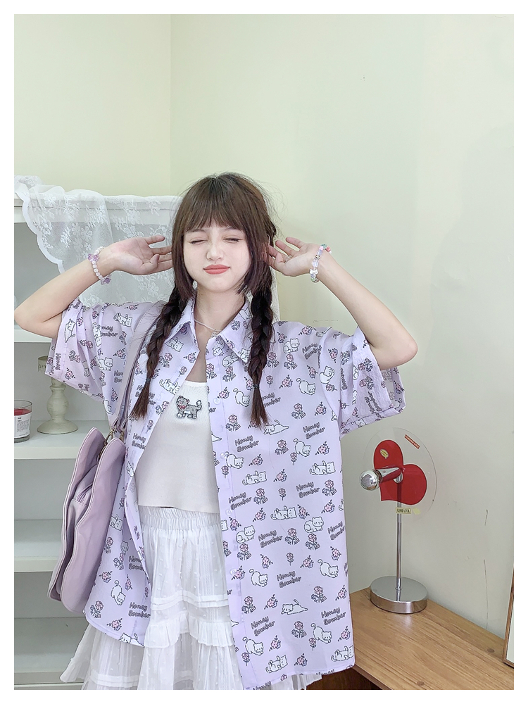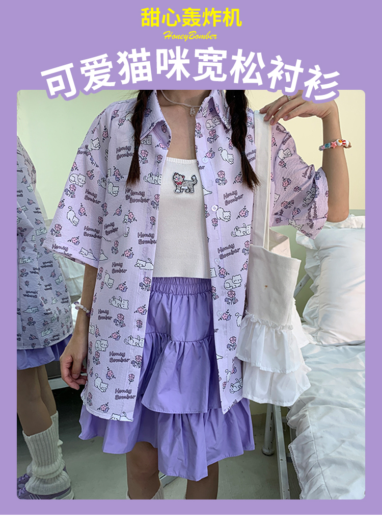 甜心轟炸機 日系甜美貓咪短袖JK制服翻領襯衫女夏原宿y2k中袖上衣