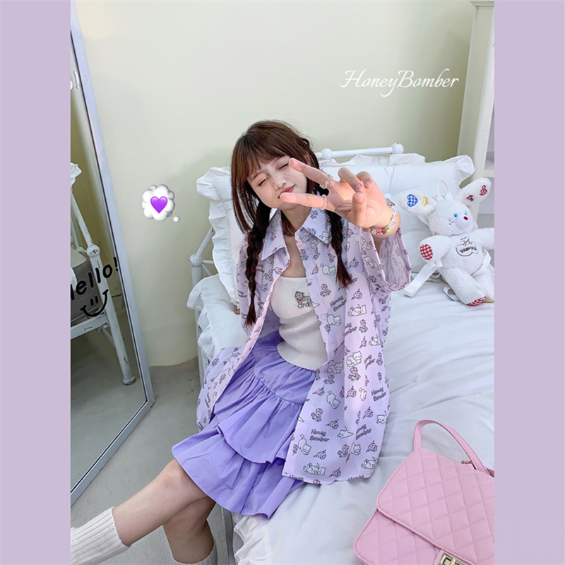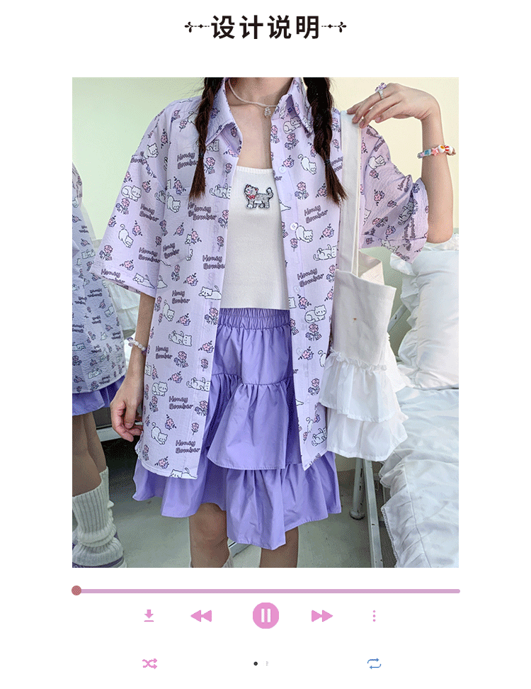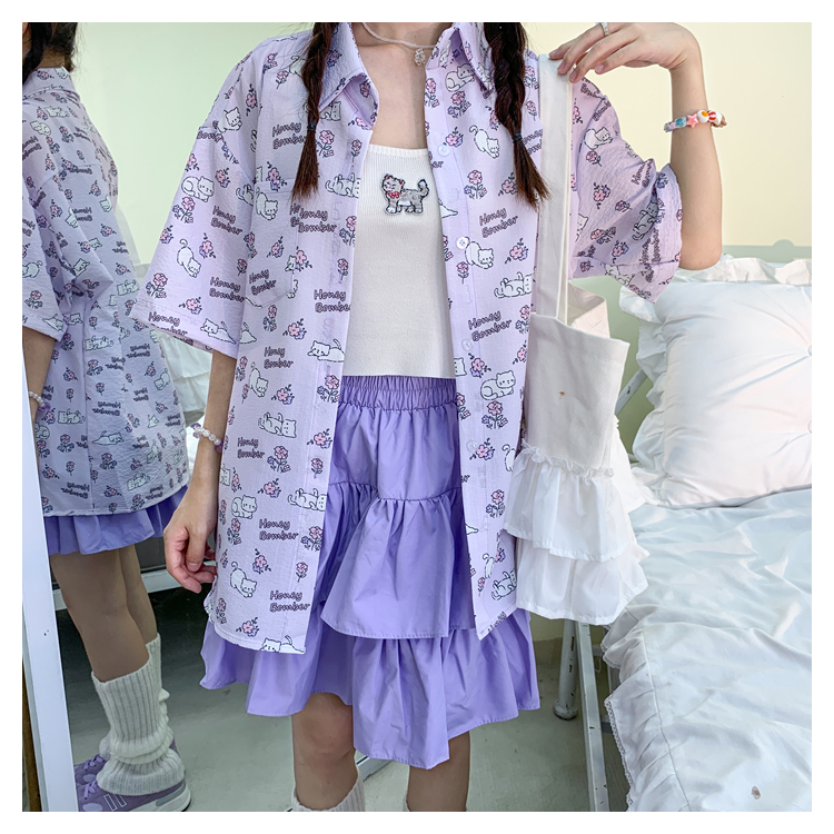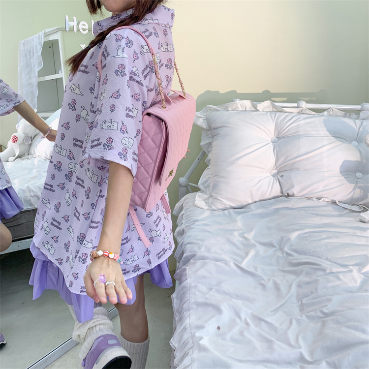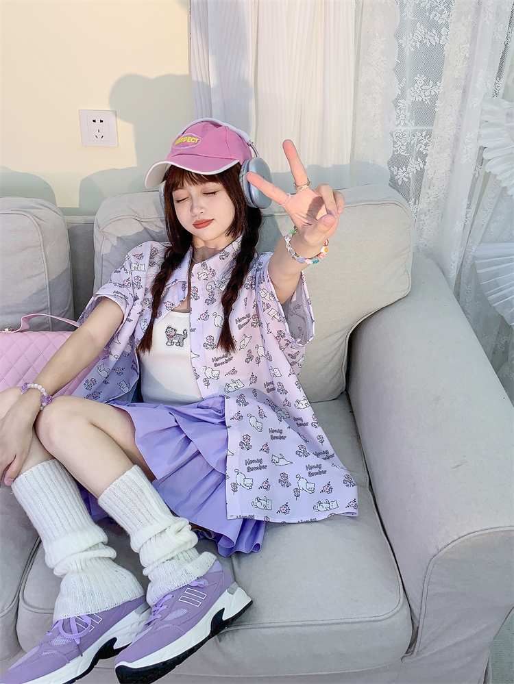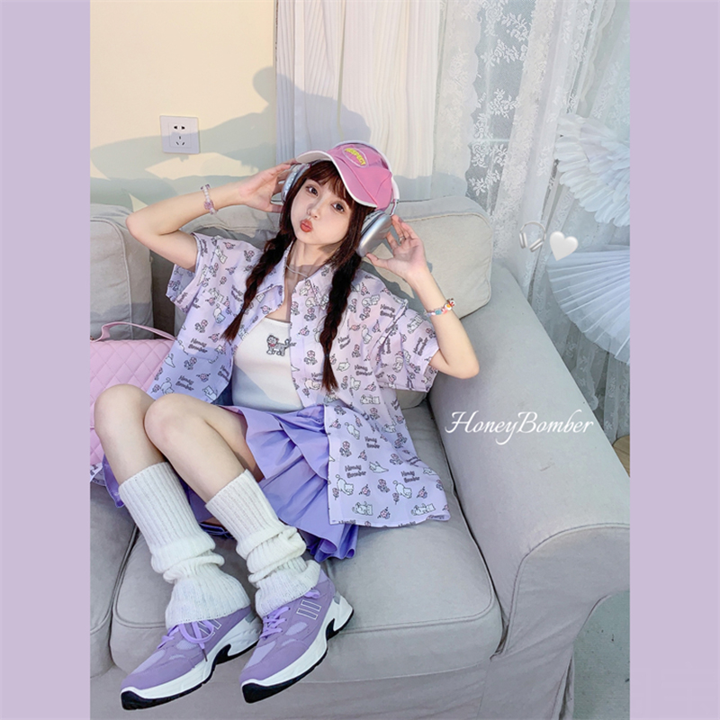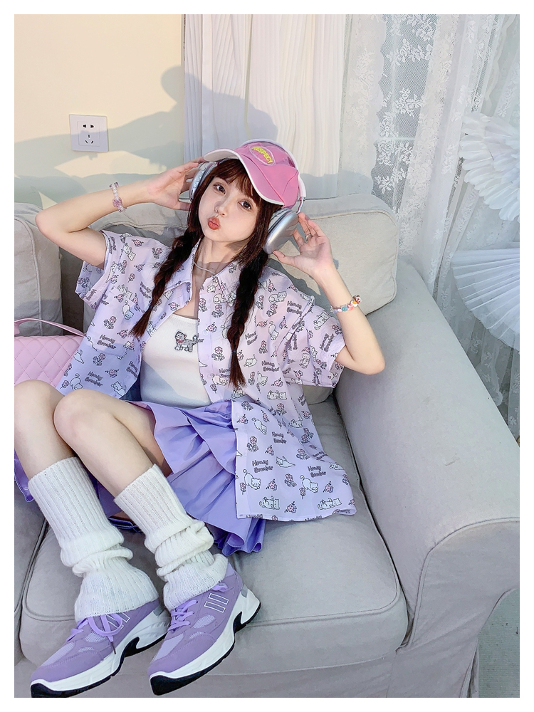 甜心轟炸機 日系甜美貓咪短袖JK制服翻領襯衫女夏原宿y2k中袖上衣