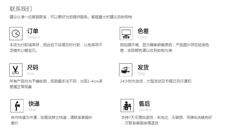 温馨提示:因测量方法不同,您收到的实物尺码与上表可能存在微小误差,并非质量问题,请您理解